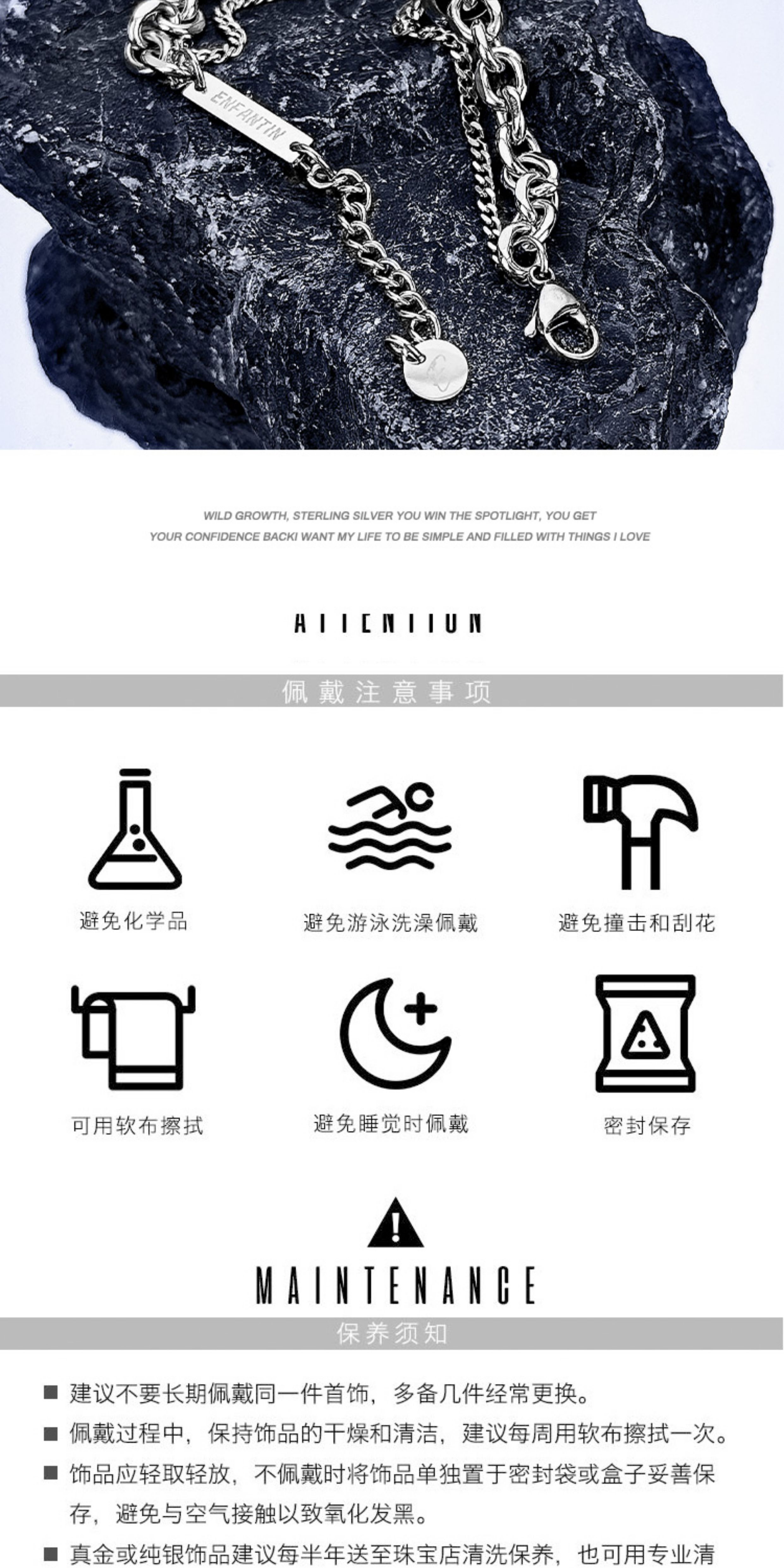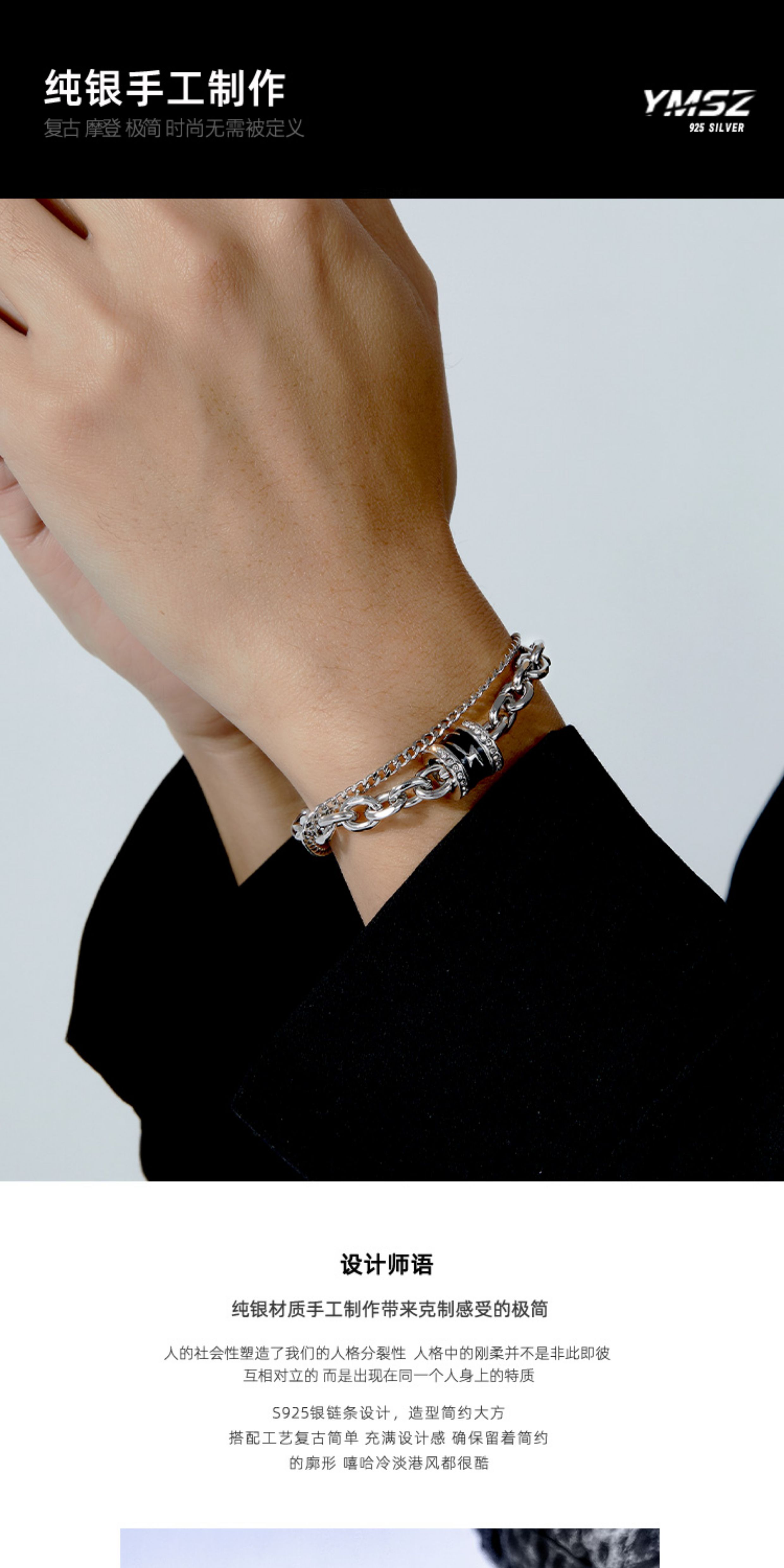 Rough Growth | Pure Silver S925 Double-Layered Black Lightning Waist Cuban Chain Hip-Hop Men's Bracelet