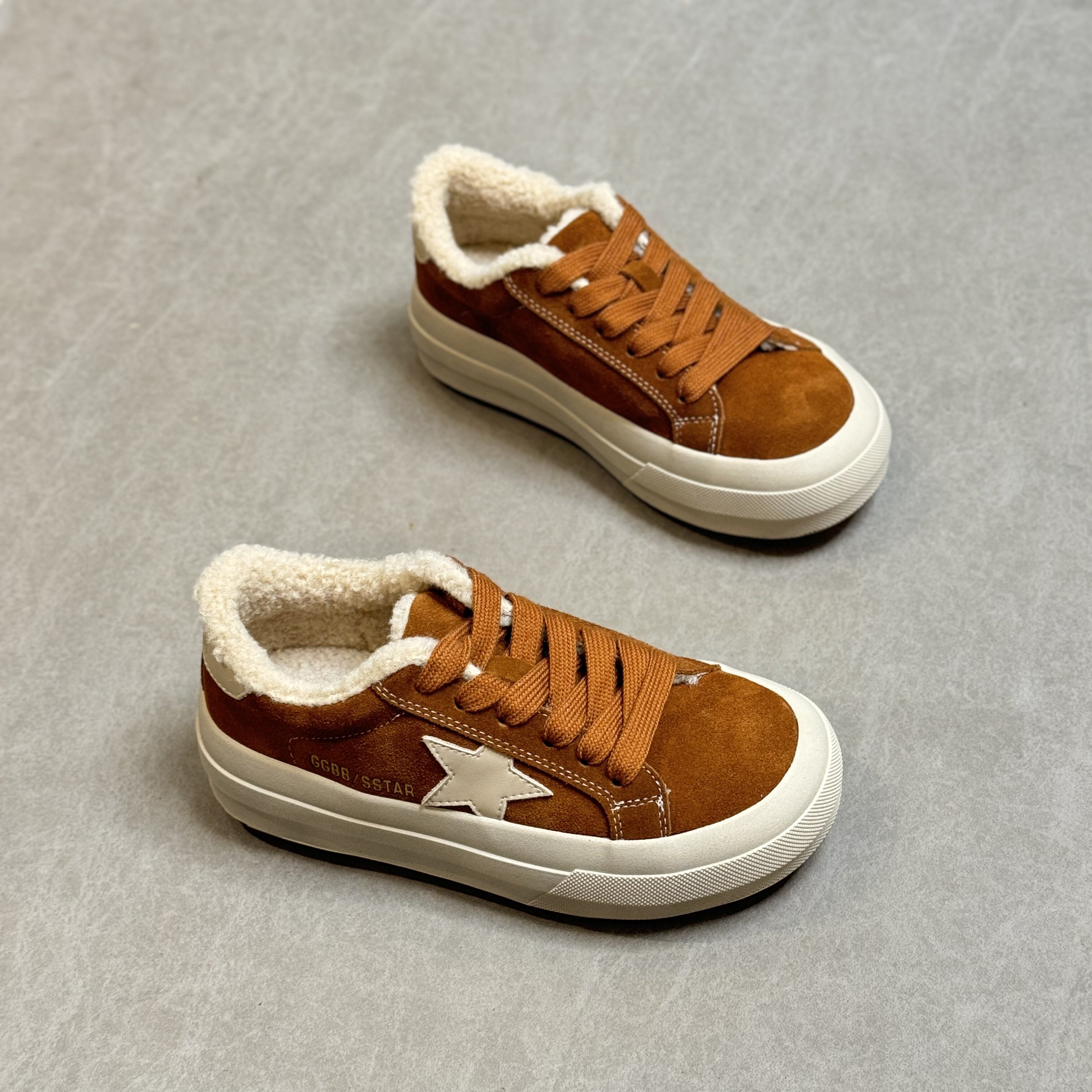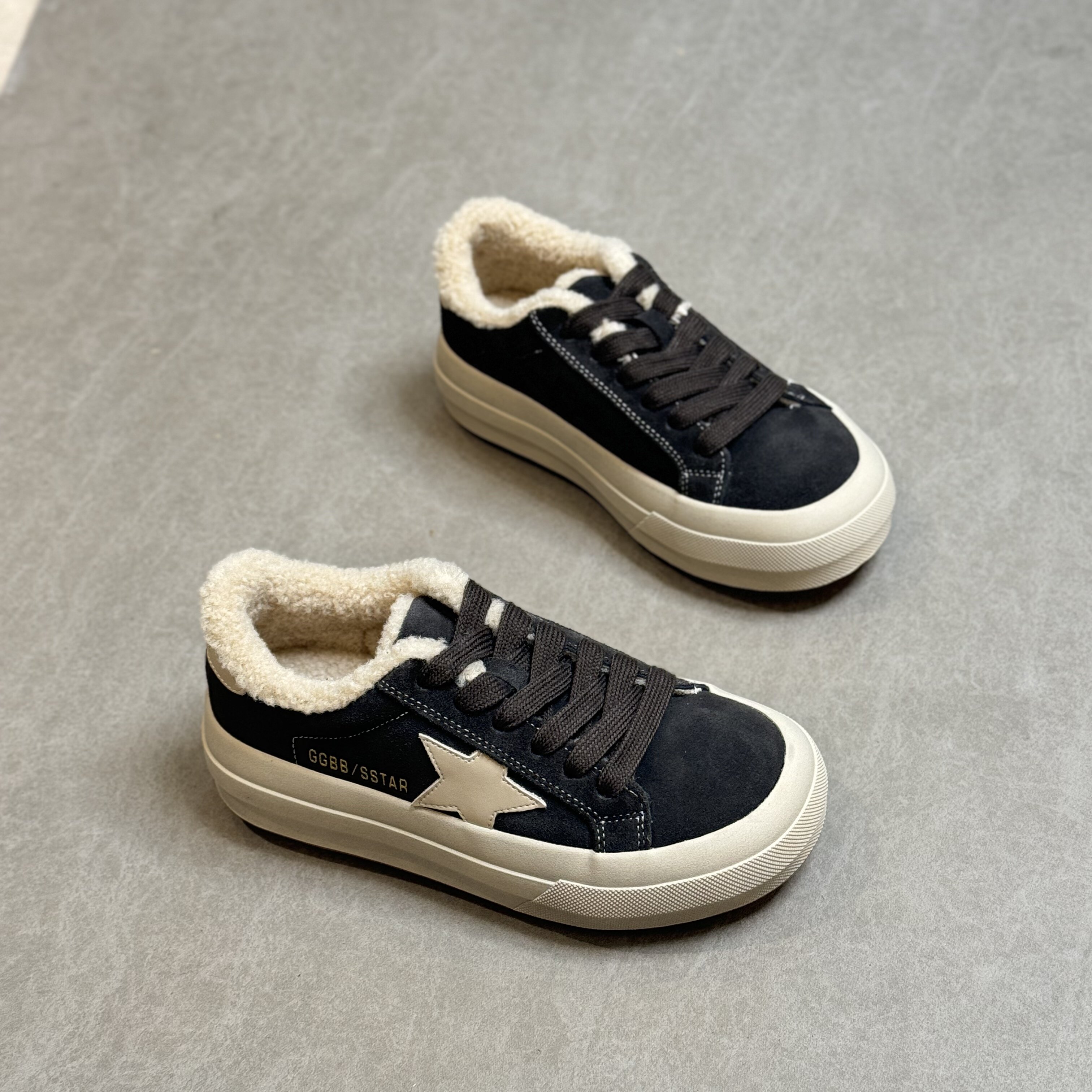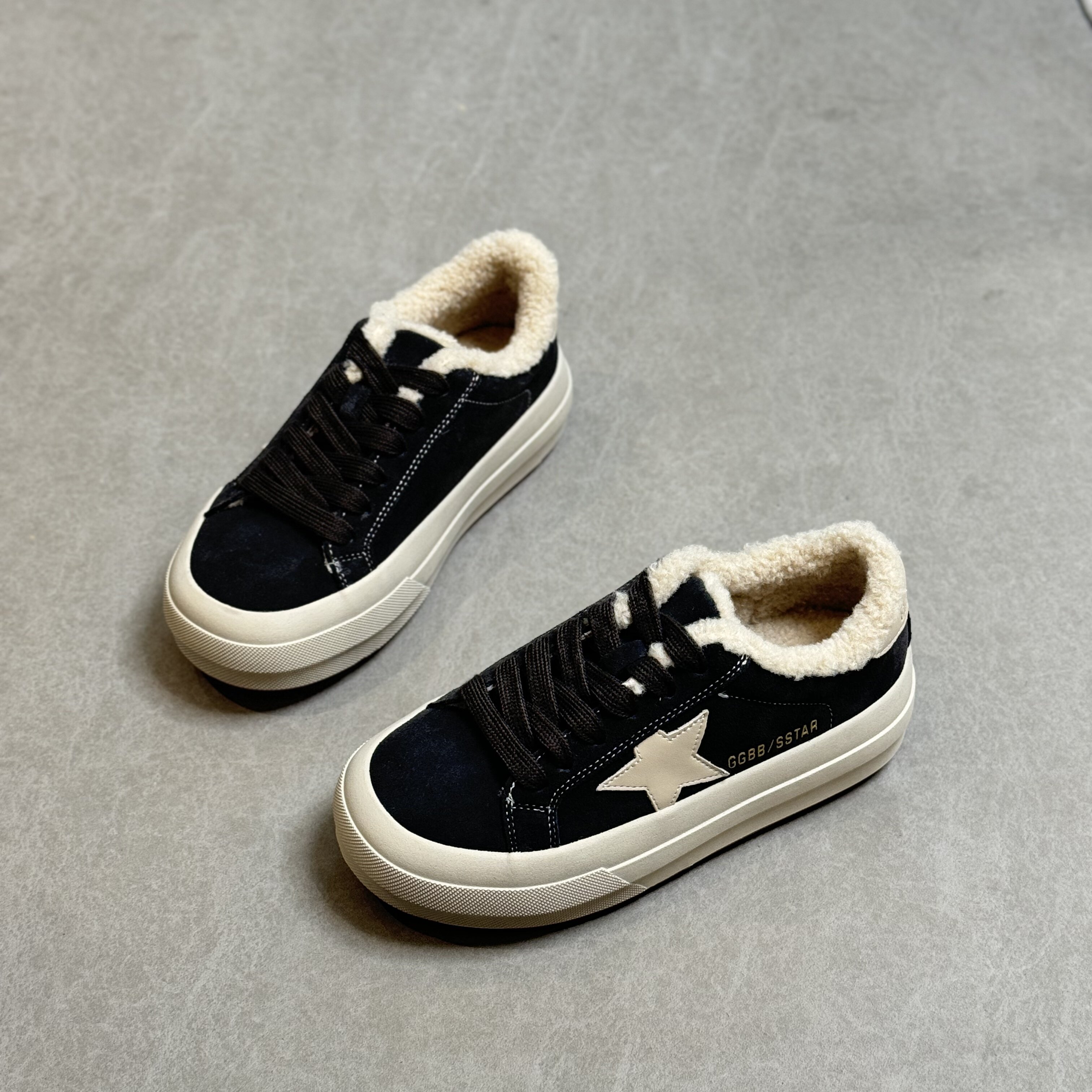 Hong Kong Retro Thick-Soled Sneakers for Women 2025 Autumn and Winter Korean Style Distressed German Training Shoes Versatile Lamb Wool Casual Cotton Shoes