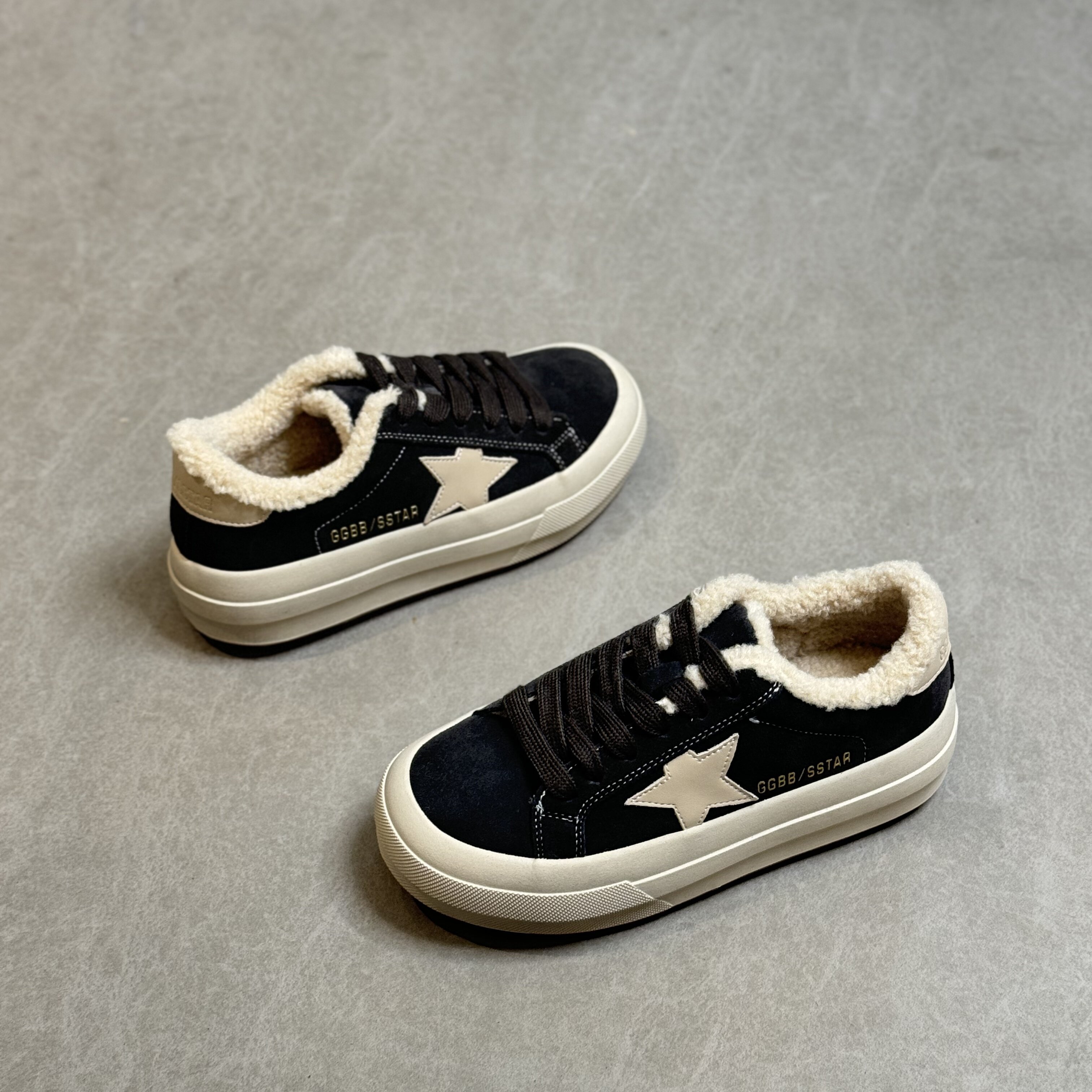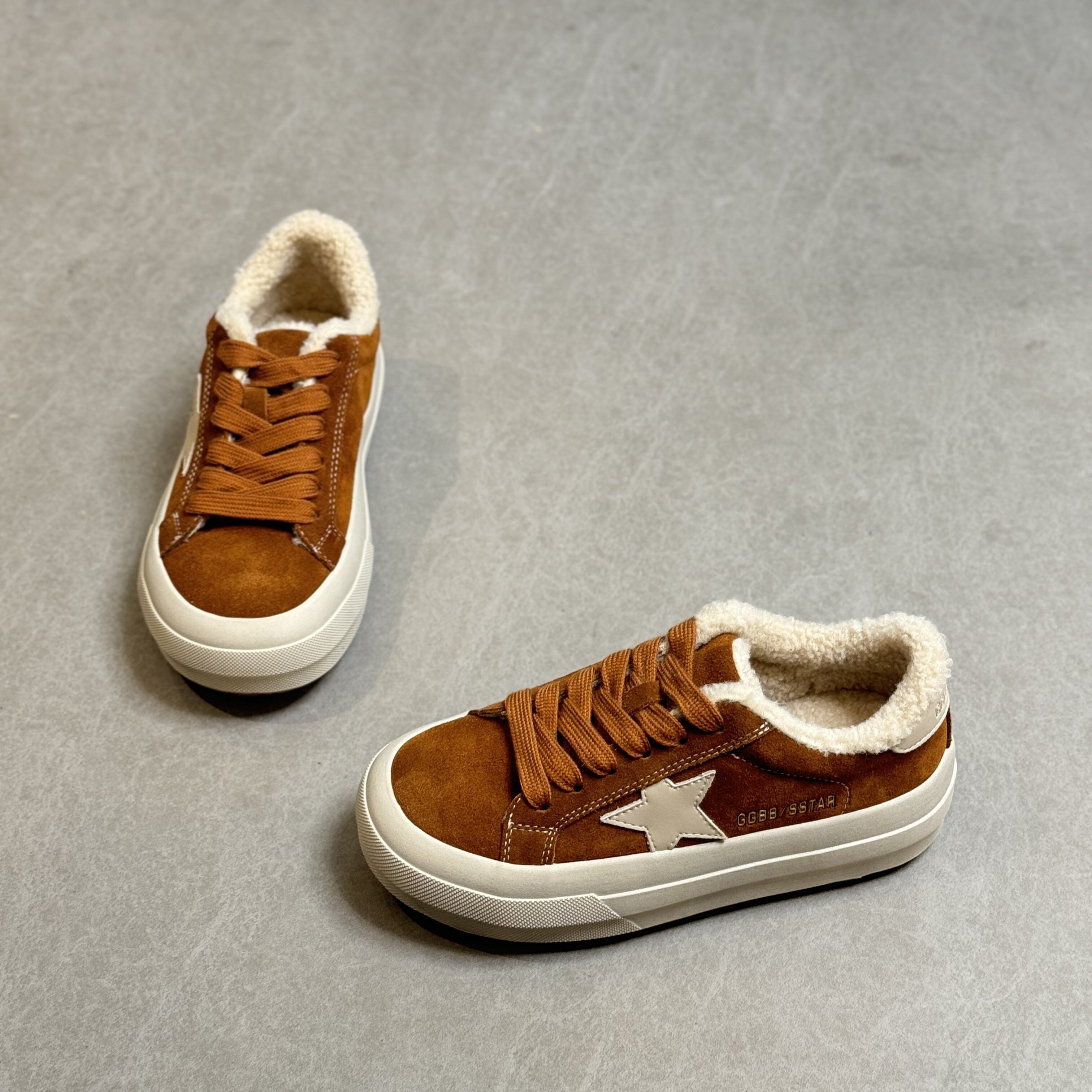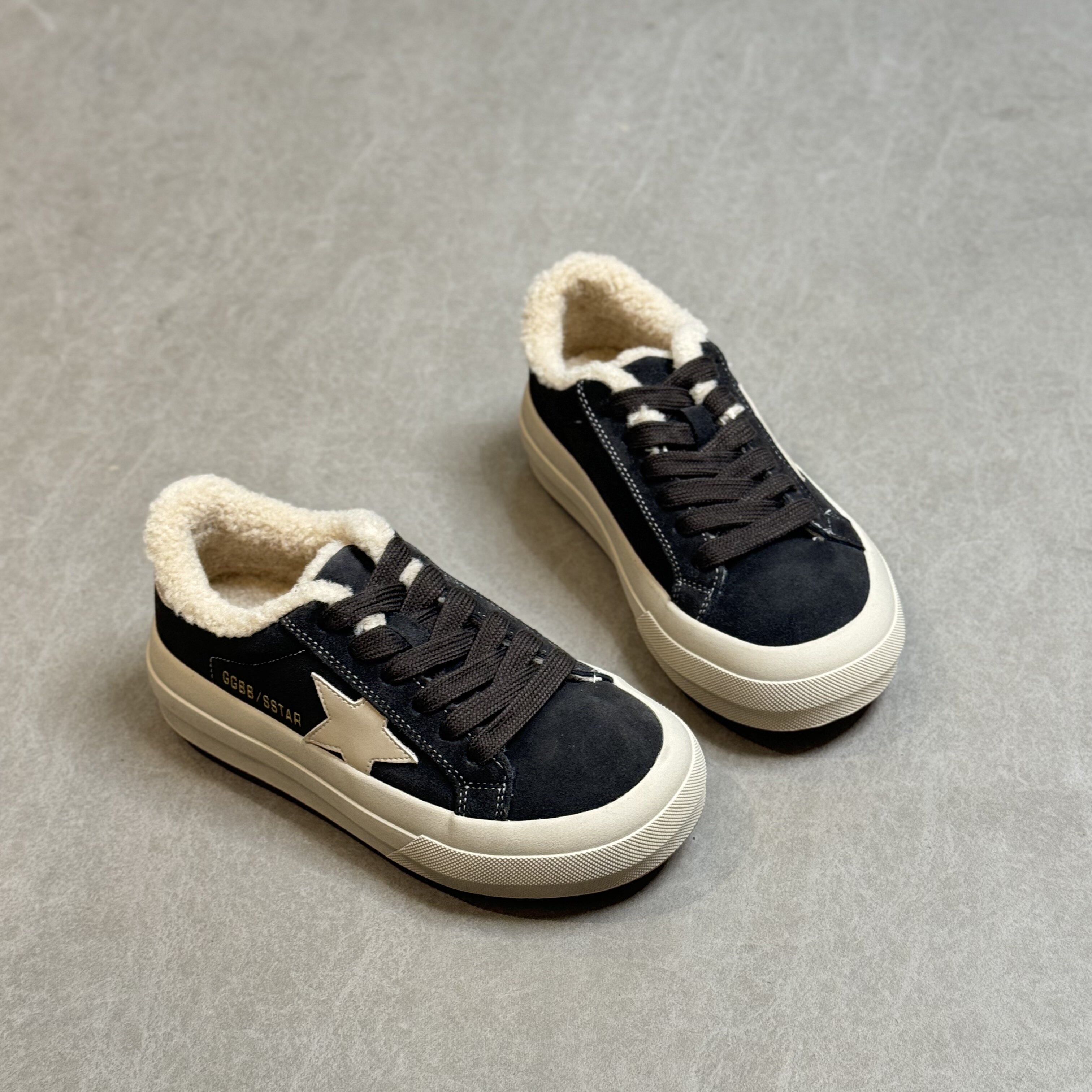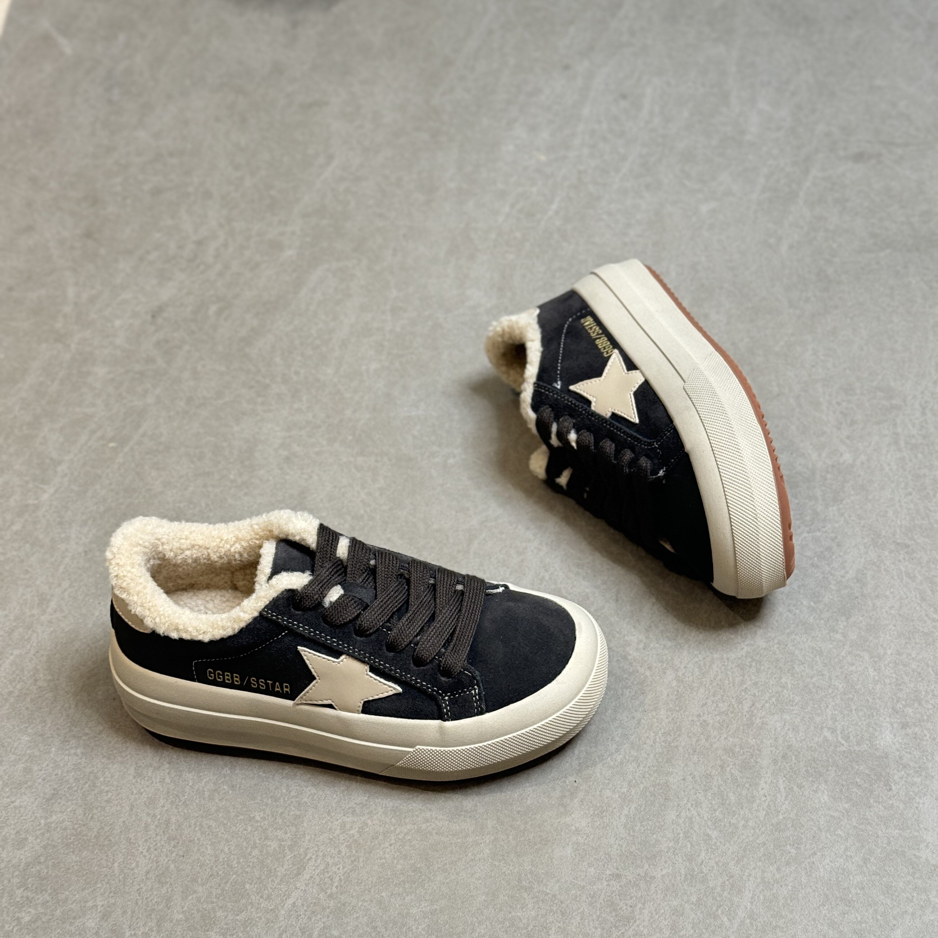 Hong Kong Retro Thick-Soled Sneakers for Women 2025 Autumn and Winter Korean Style Distressed German Training Shoes Versatile Lamb Wool Casual Cotton Shoes
