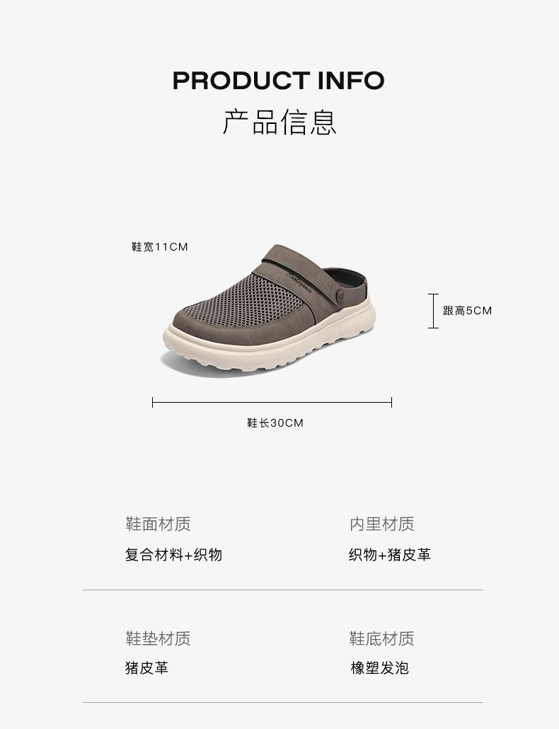 Belle Men's Shoes Mesh Breathable Clogs 25 Summer New Slip-On Lazy Shoes Thick-Soled Closed-Toe Sandals A1941Bh5