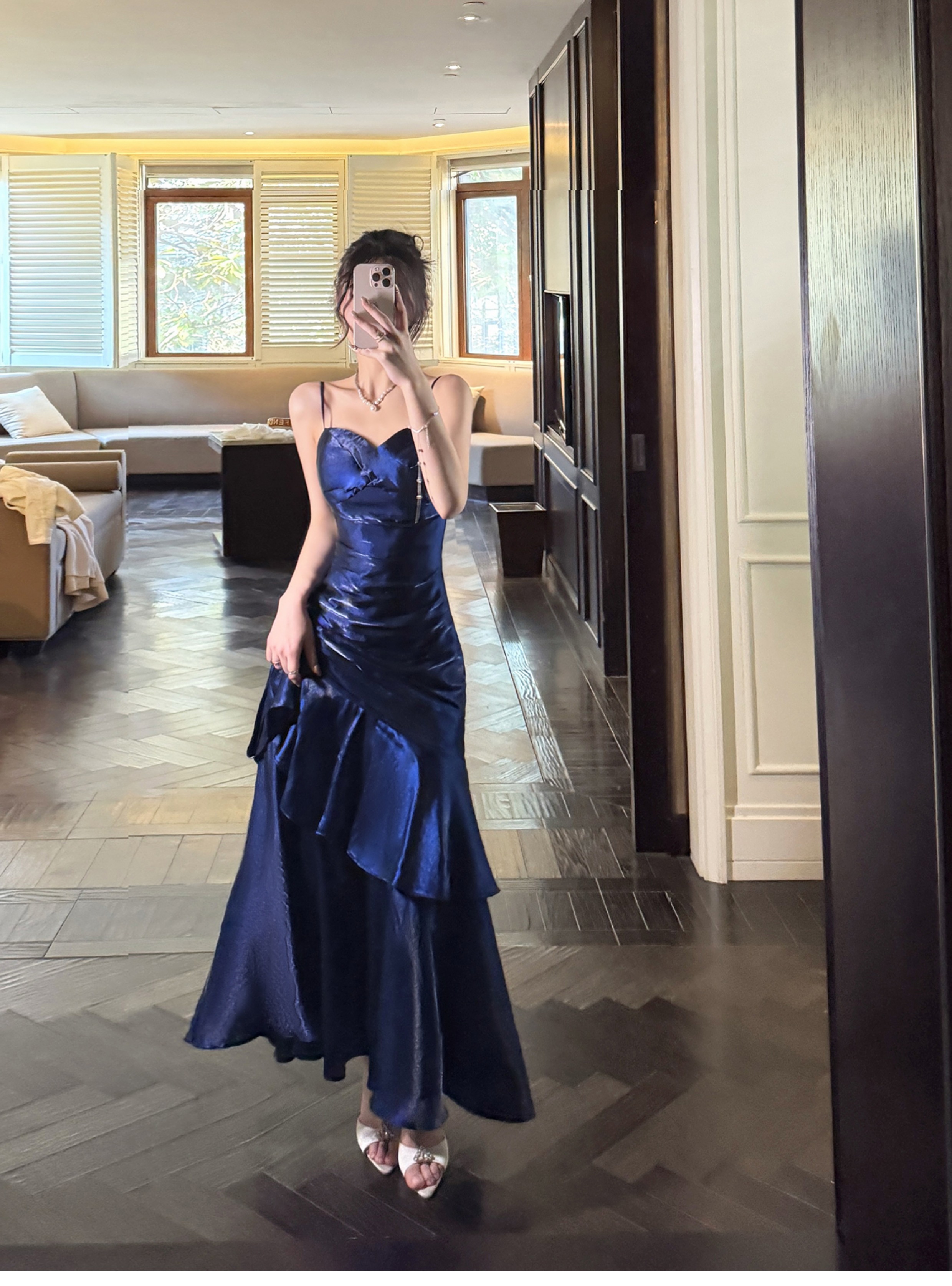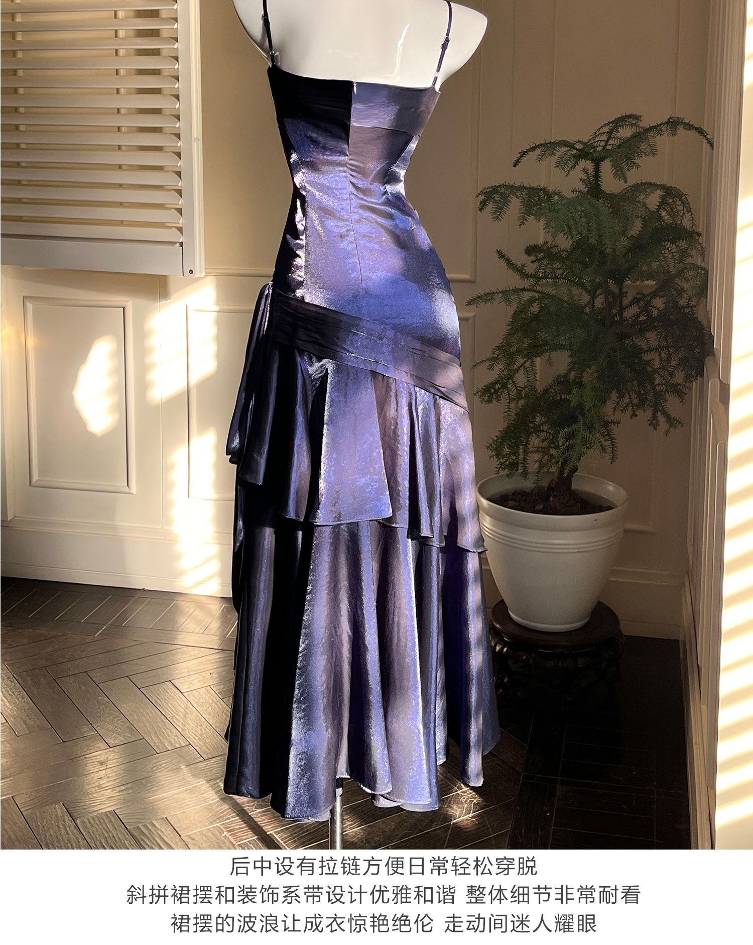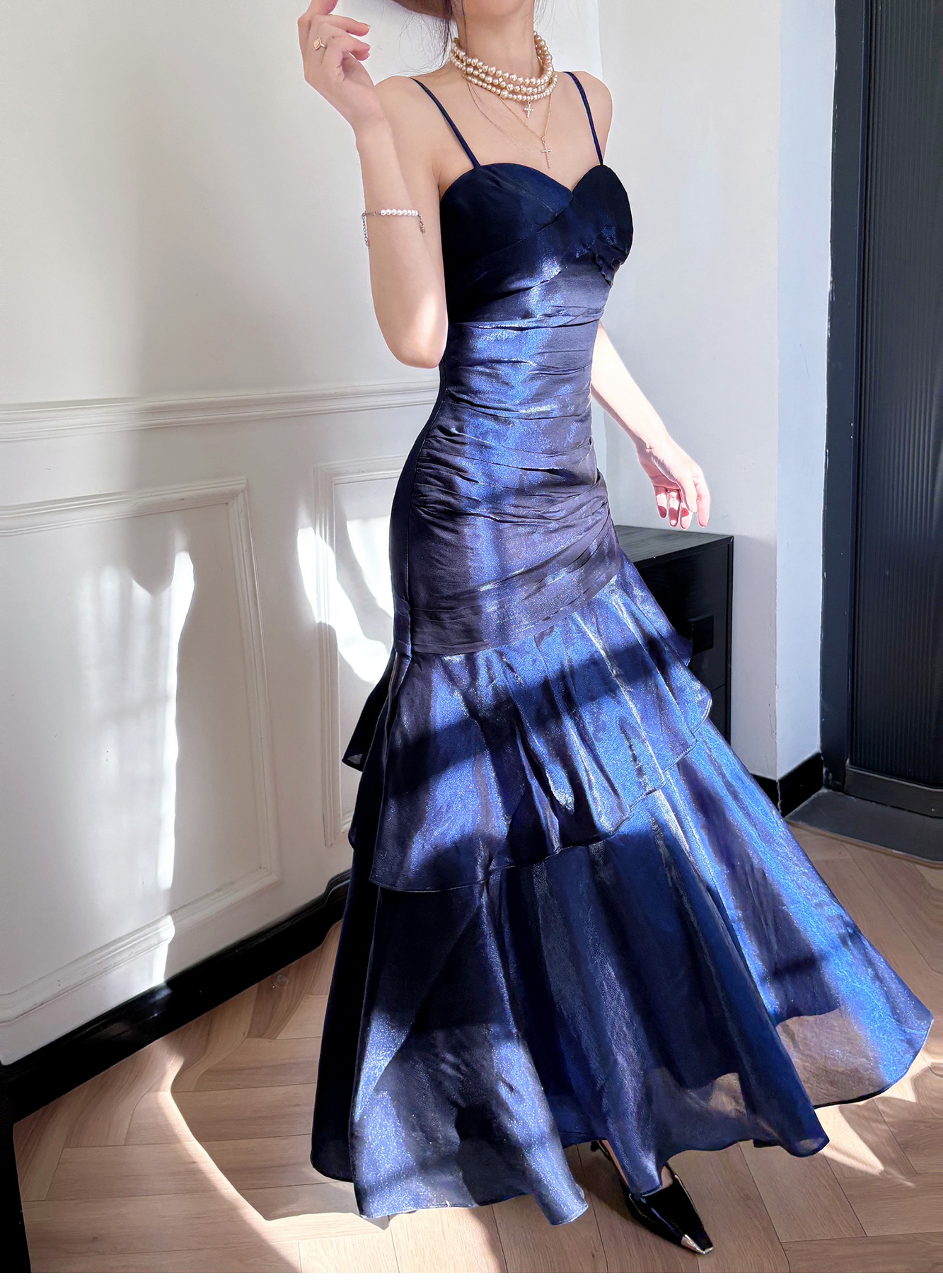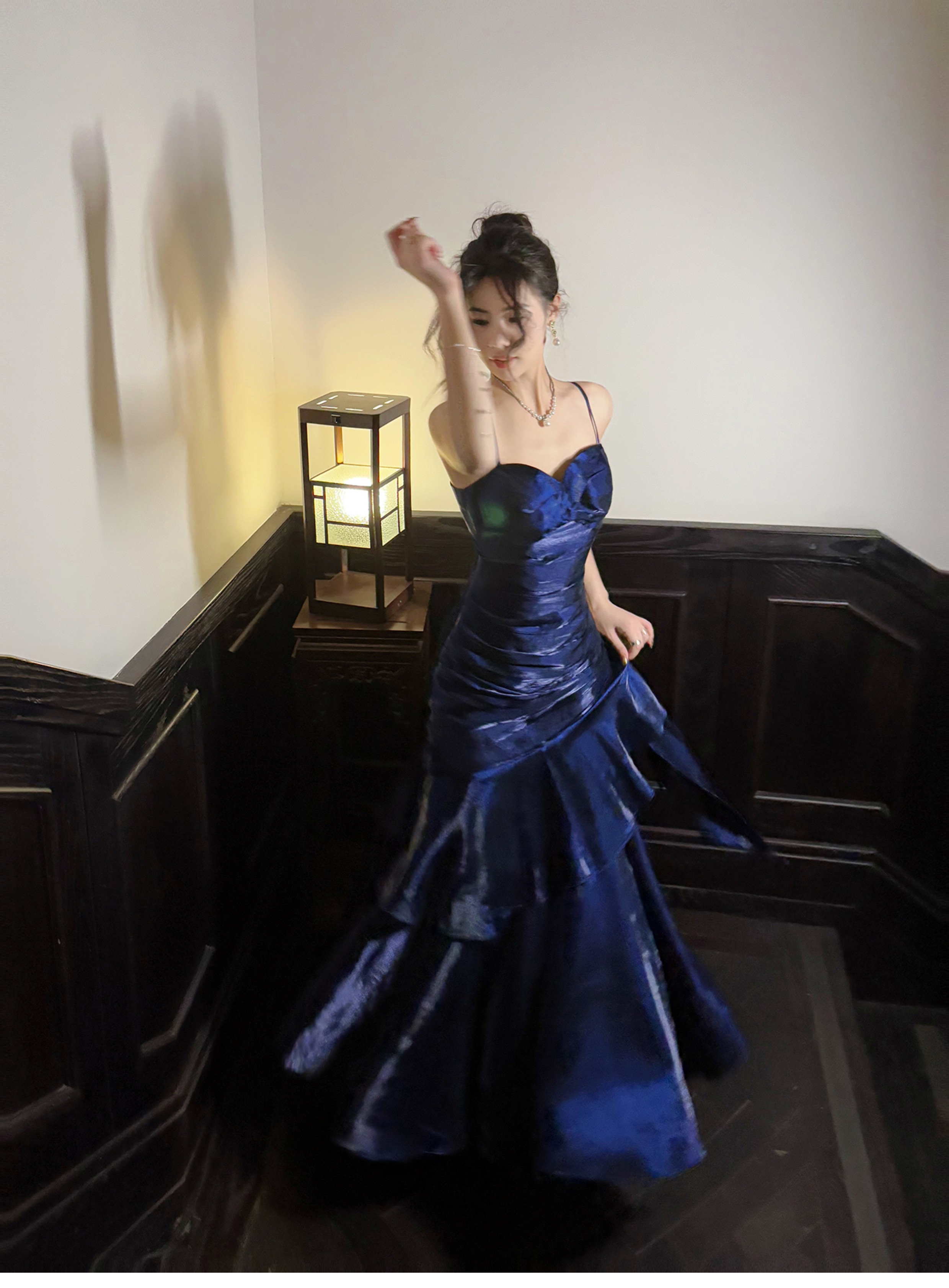 Gjfd【Blue Enchantress】Mermaid Princess Ruffled High-End Dress Light Luxury Niche Coming-Of-Age Ceremony Birthday Dress