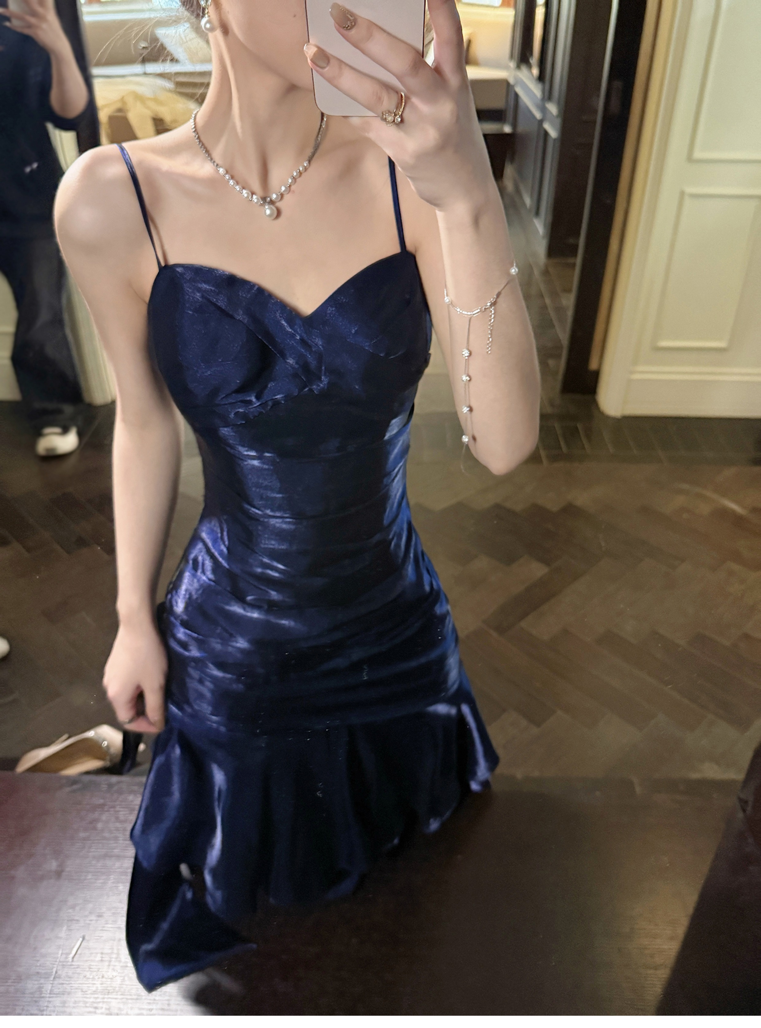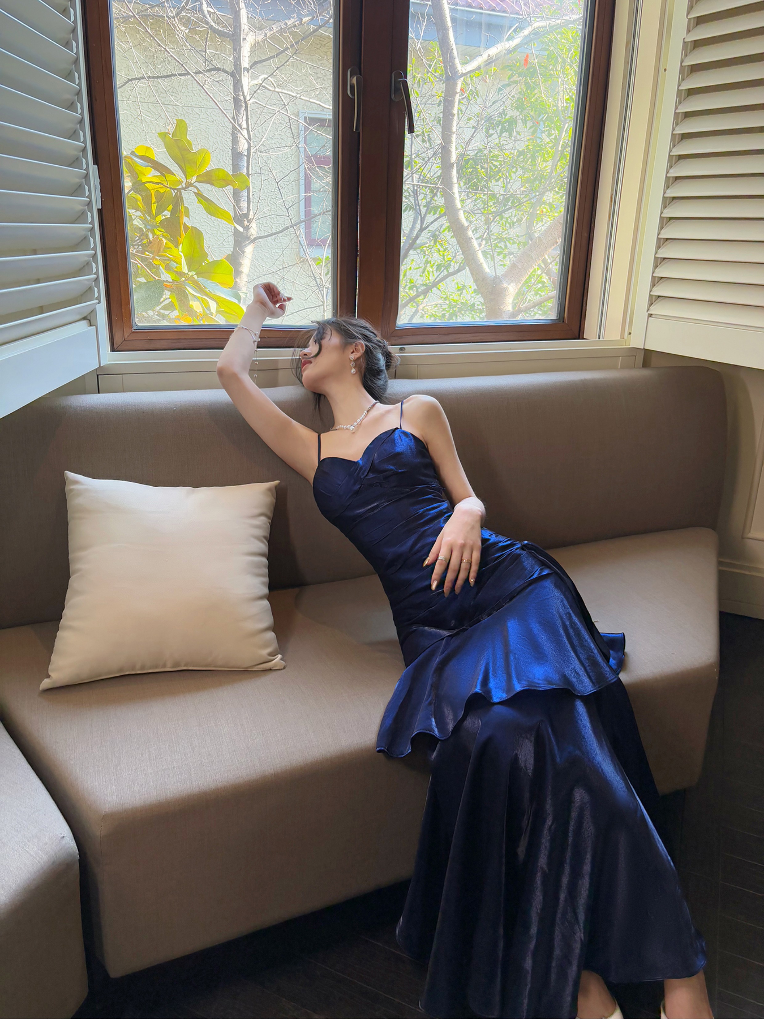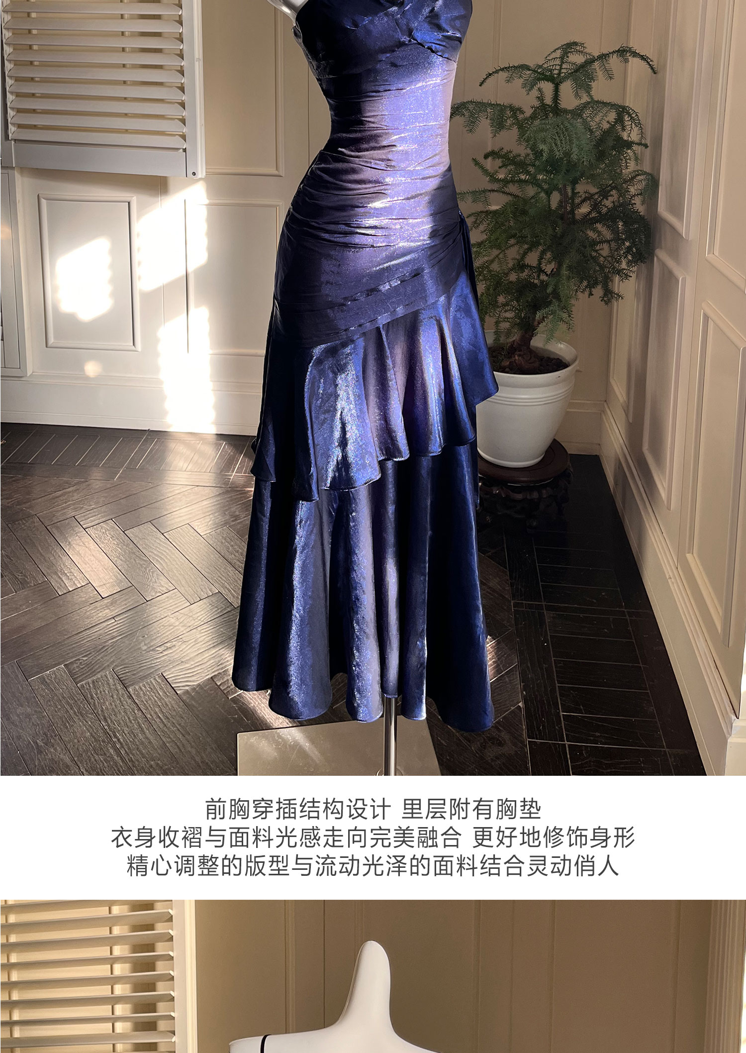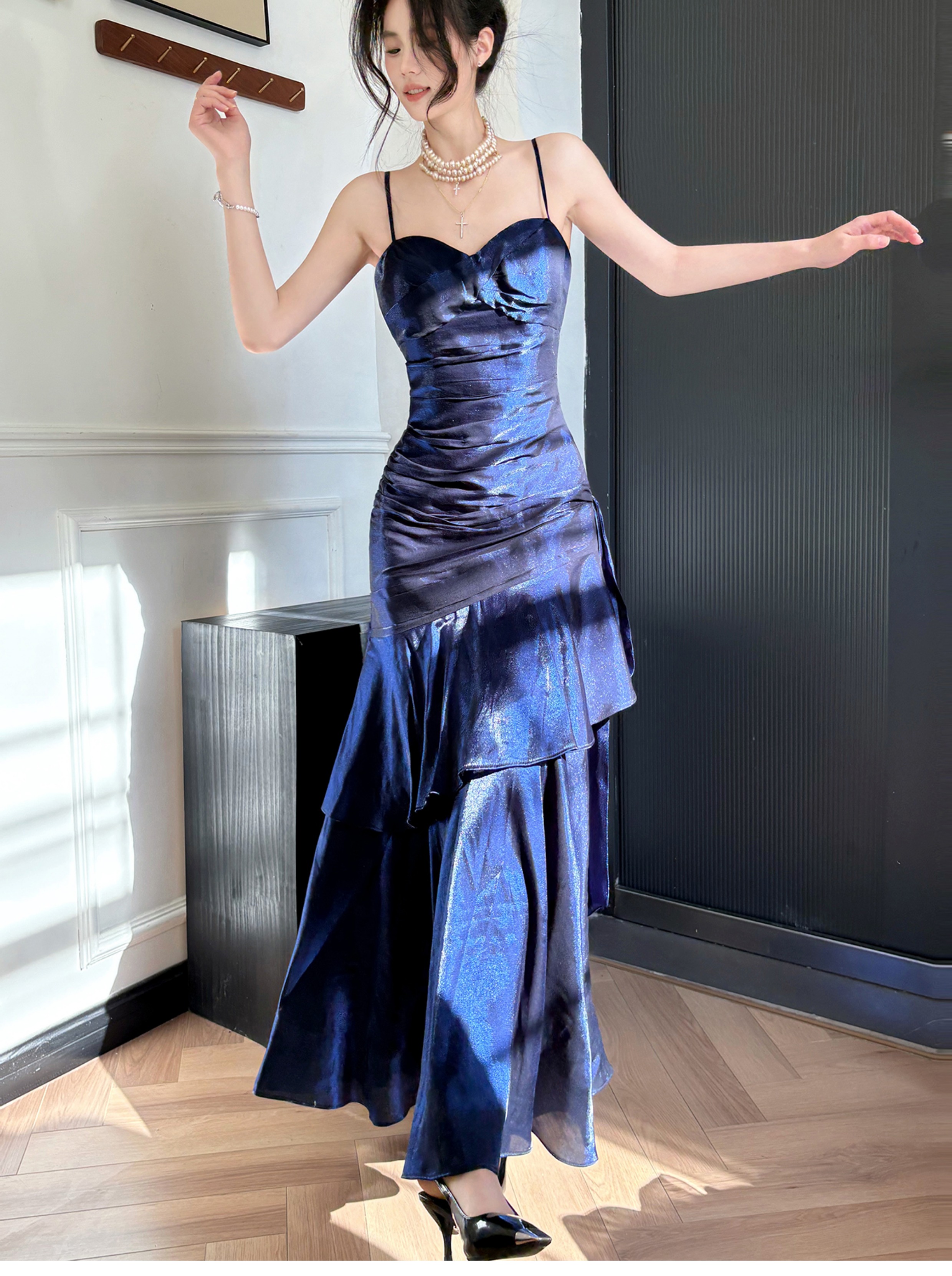 Gjfd【Blue Enchantress】Mermaid Princess Ruffled High-End Dress Light Luxury Niche Coming-Of-Age Ceremony Birthday Dress