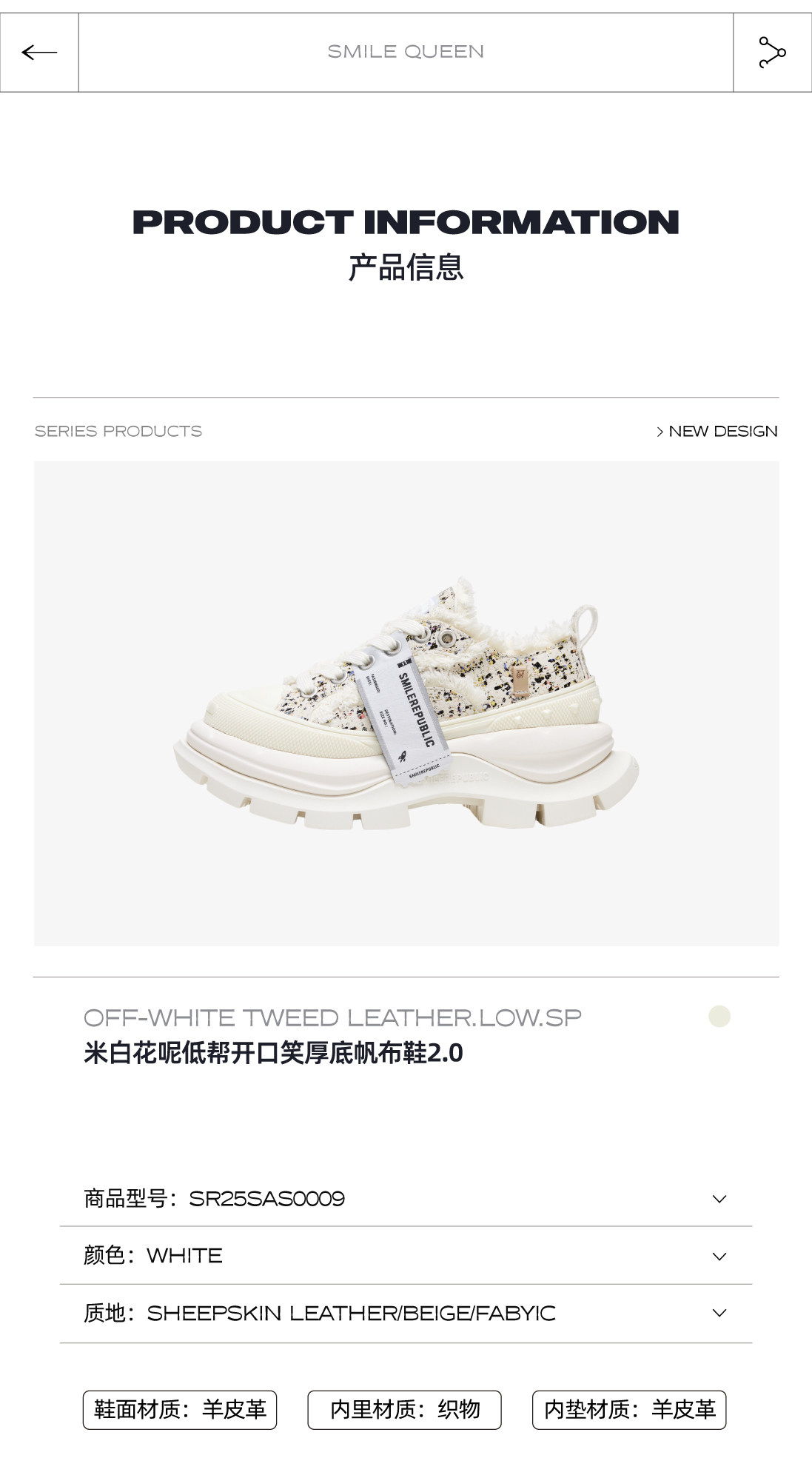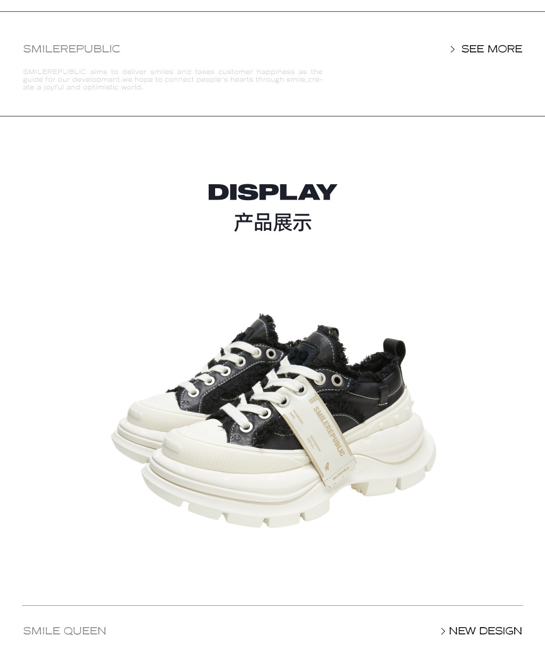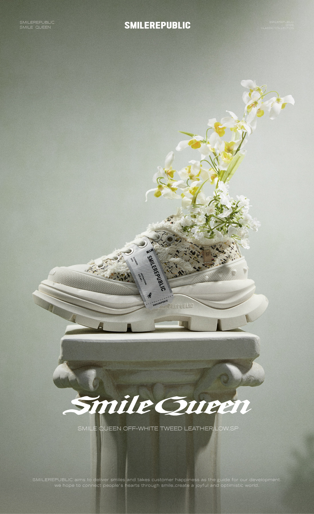 【Same Style as Bi Wenjun】Smilerepublic Classic Low-Top Open Smile 2.0 Thick-Soled Canvas Shoes Dad Shoes