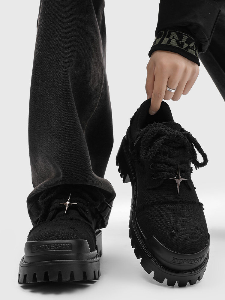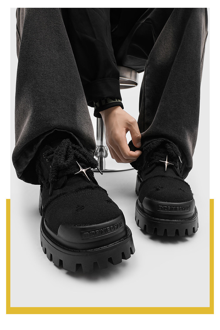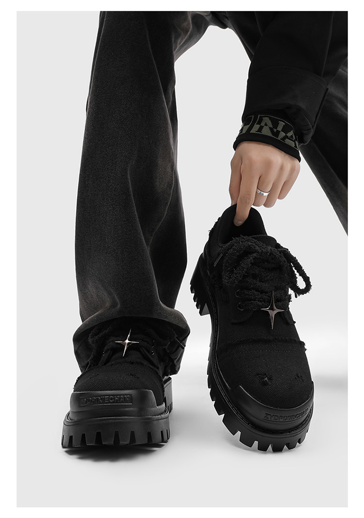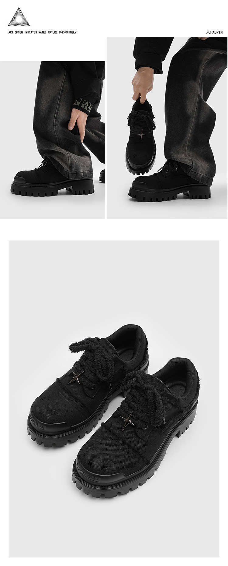 Four-Pointed Star Derby Shoes for Men, Invisible Height-Increasing Shoes, Boys' Cos American-Style High-End Workwear Thick-Soled Casual Leather Shoes