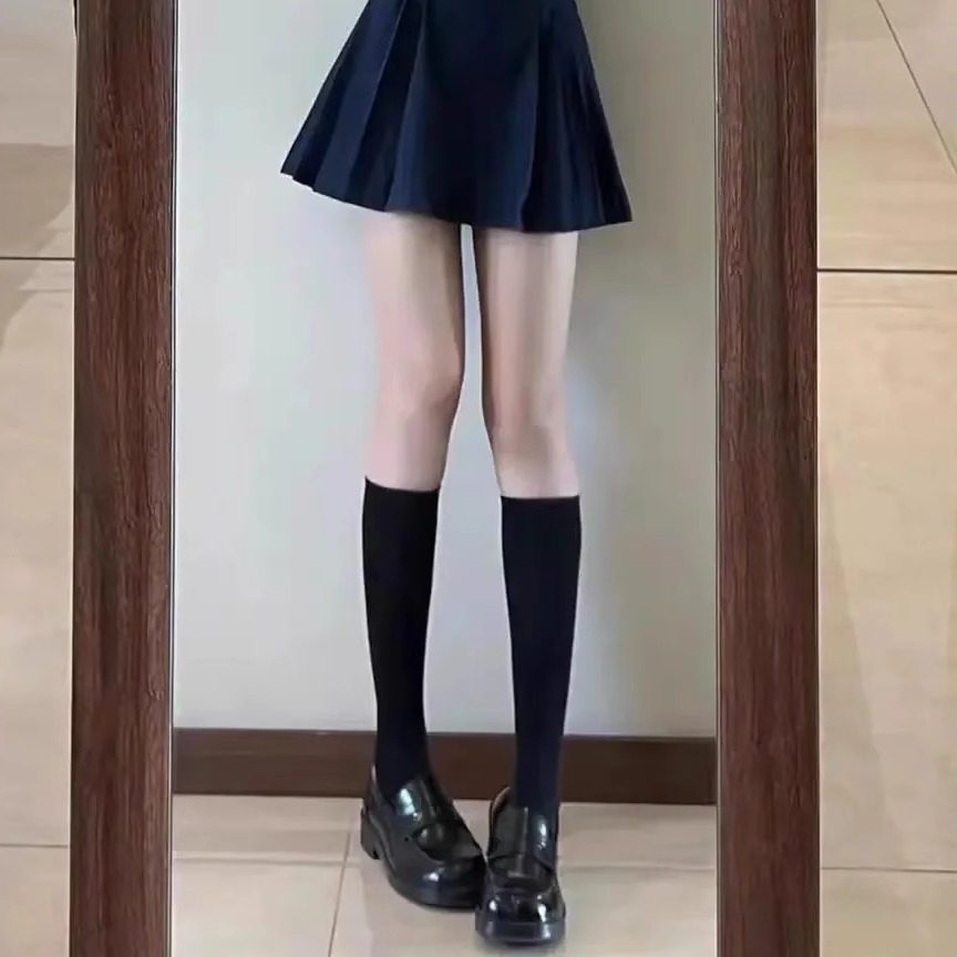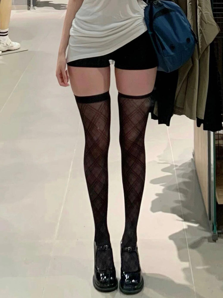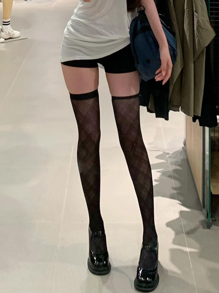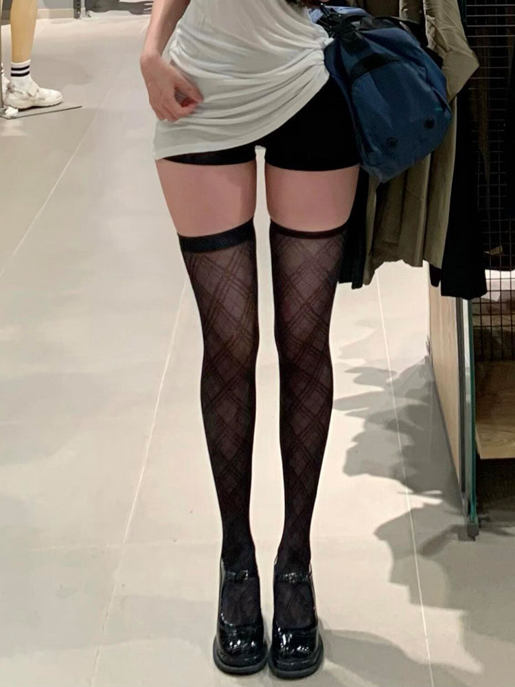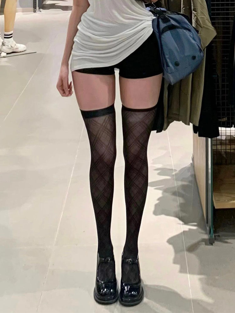 Flgg【Ling】Lattice-Patterned High-Tube Black Stockings, Sexy Black Stockings over the Knee, Jk Style Stockings for Women, Abstinence Style