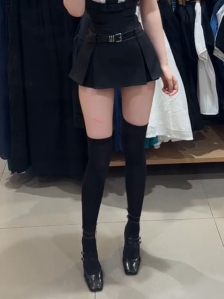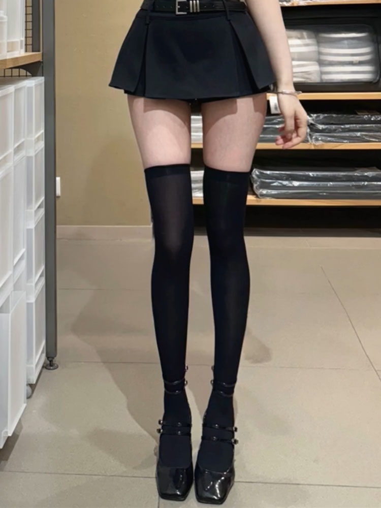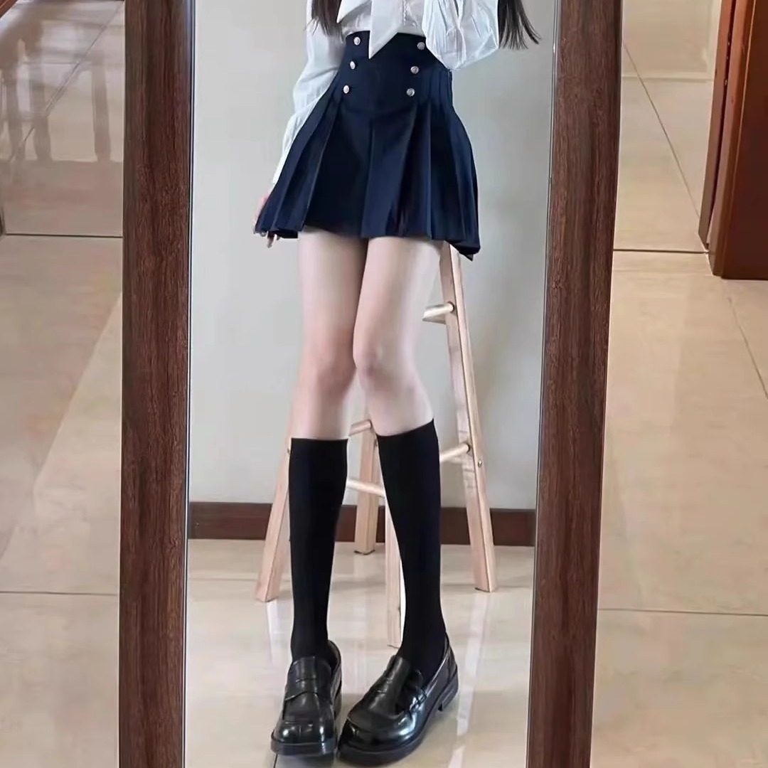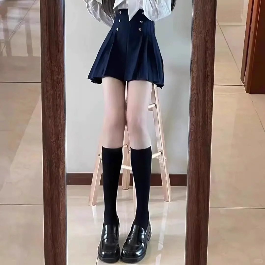 Flgg【Ling】Lattice-Patterned High-Tube Black Stockings, Sexy Black Stockings over the Knee, Jk Style Stockings for Women, Abstinence Style