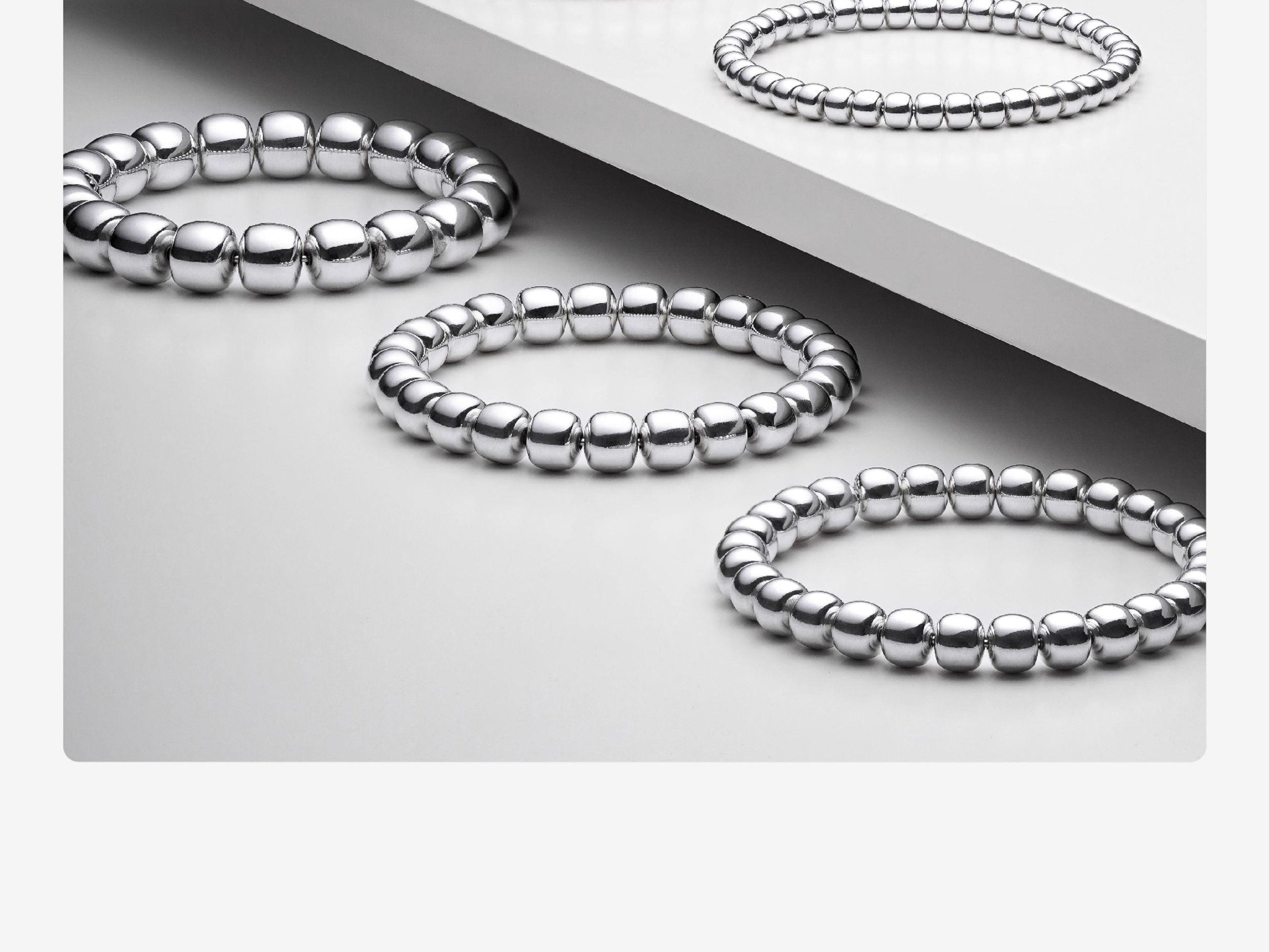 Pure Silver Solid Silver Bracelet, High-End Round Bead Enamel Bracelet, Silver Bead Bracelet, Bangle