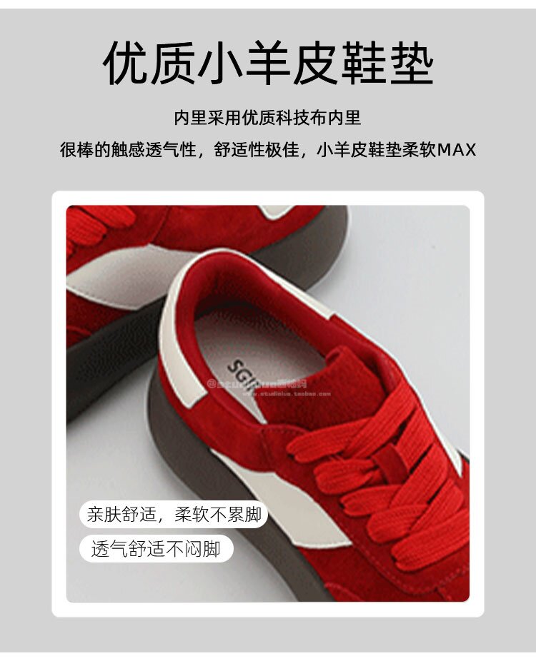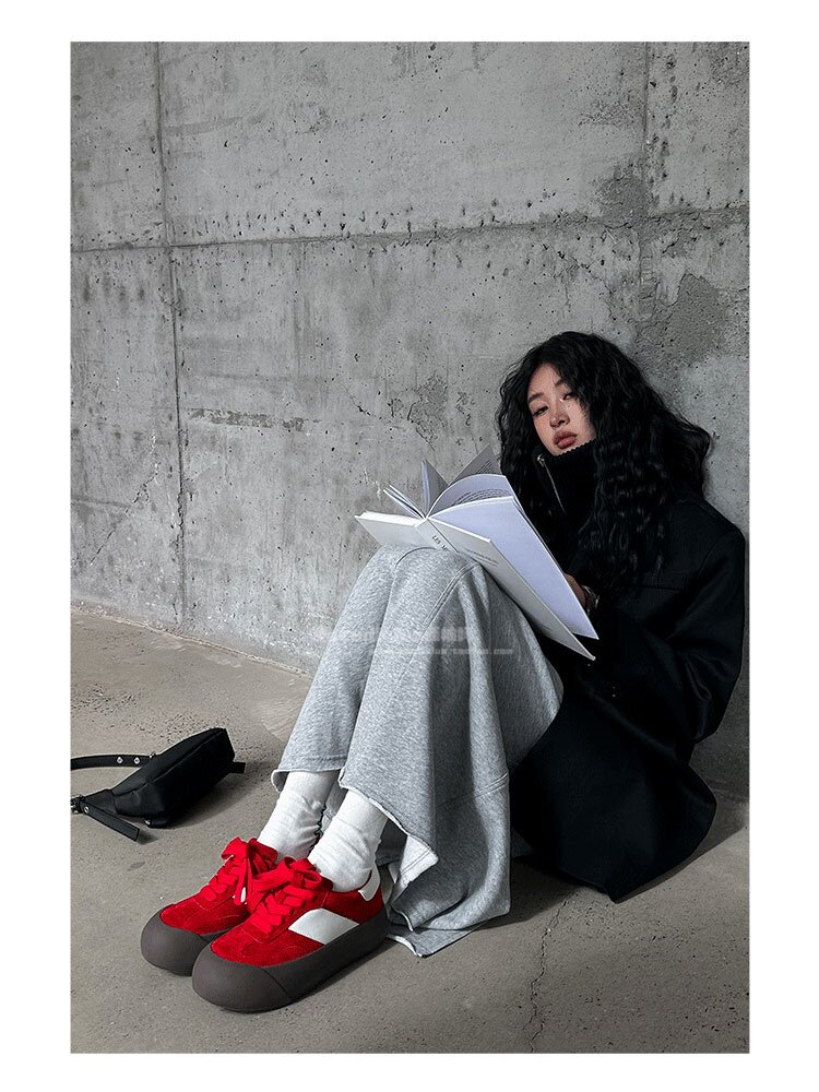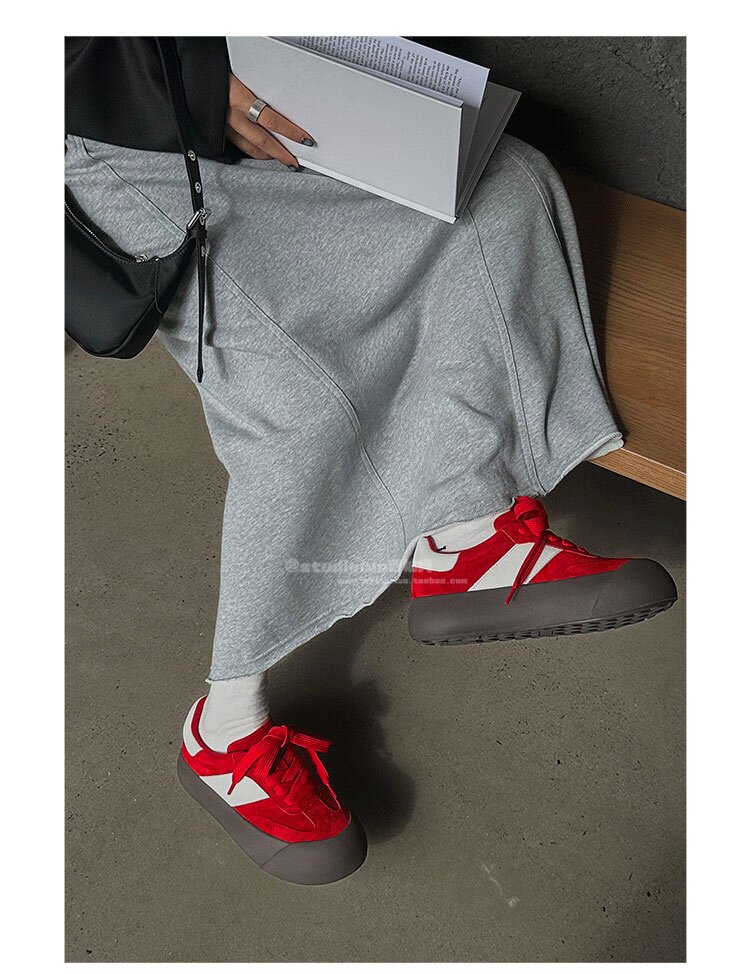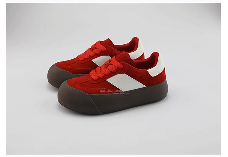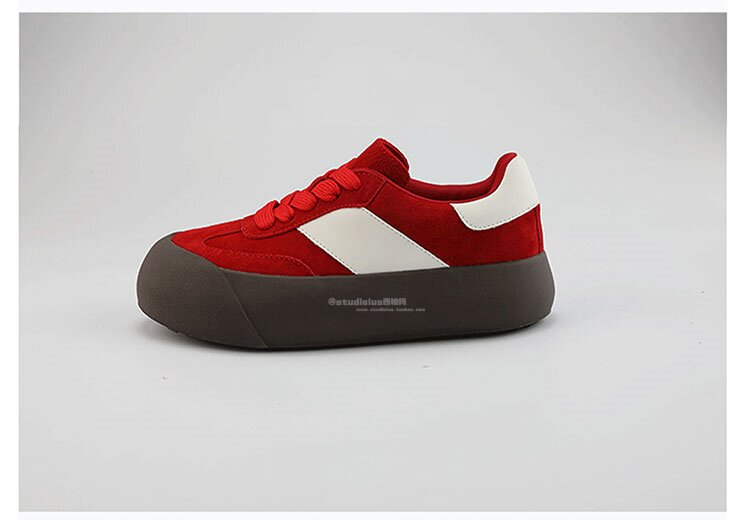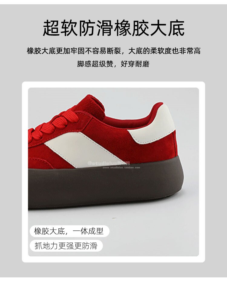 Hong Kong Retro Low-Top Casual Red Sneakers for Women 2026 Spring and Autumn New Fashion Versatile Thick-Soled Height-Increasing German Training Shoes