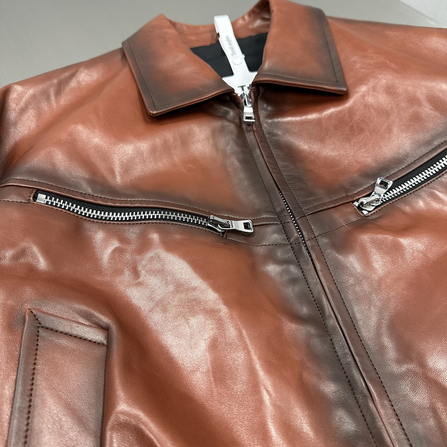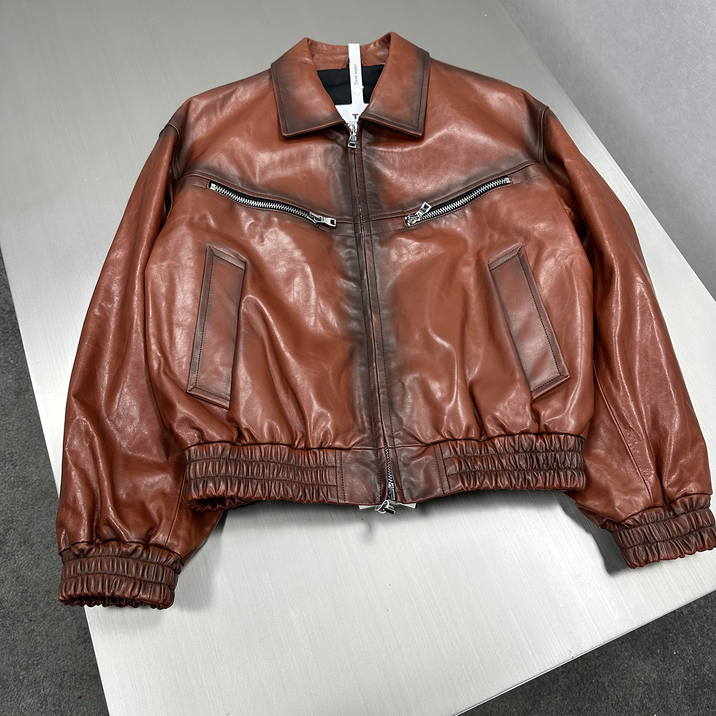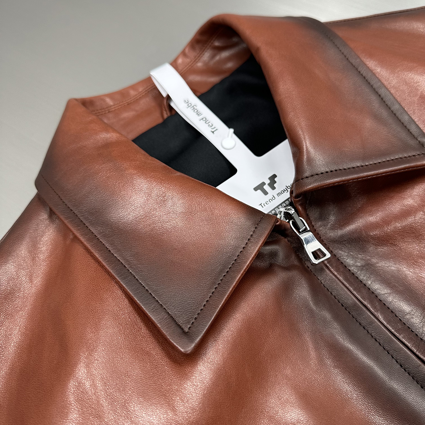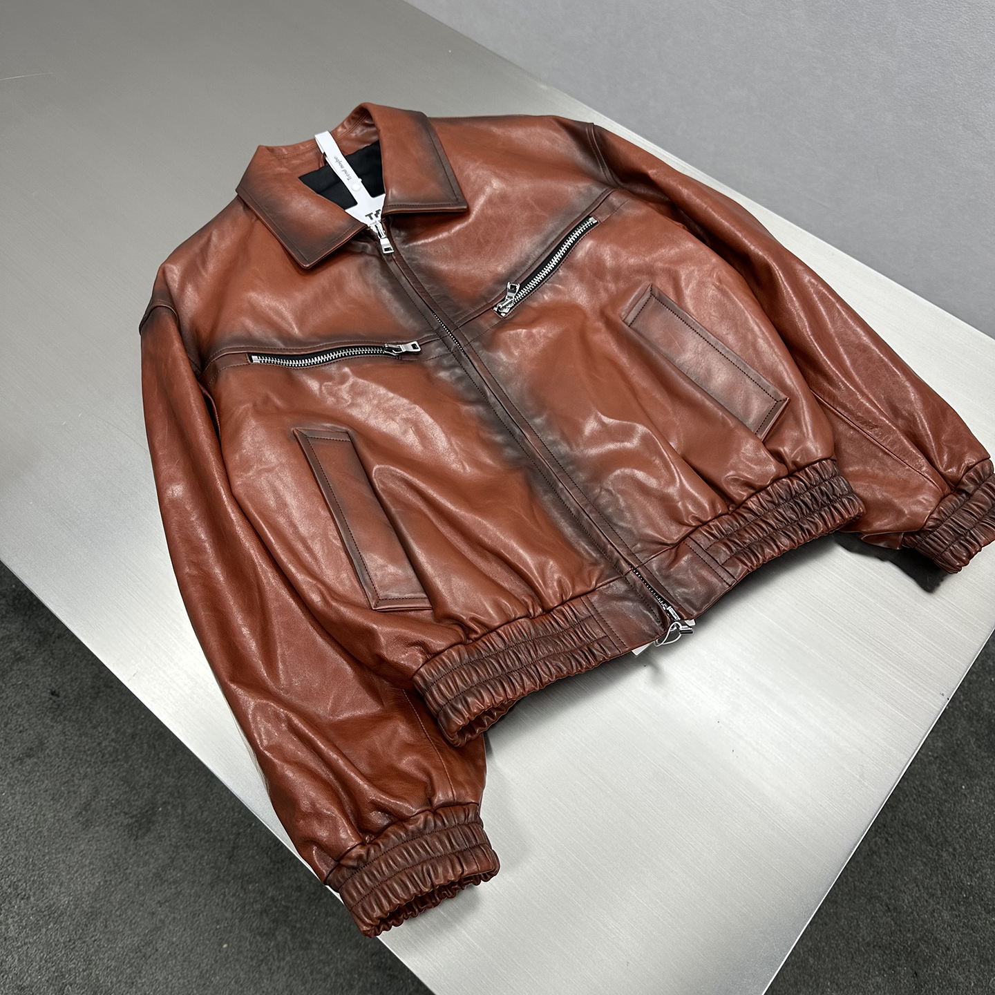 Trendmaybe's Cool and Stylish Short Wide-Fit Sheepskin Bomber Jacket Flight Suit Gradient Leather Jacket