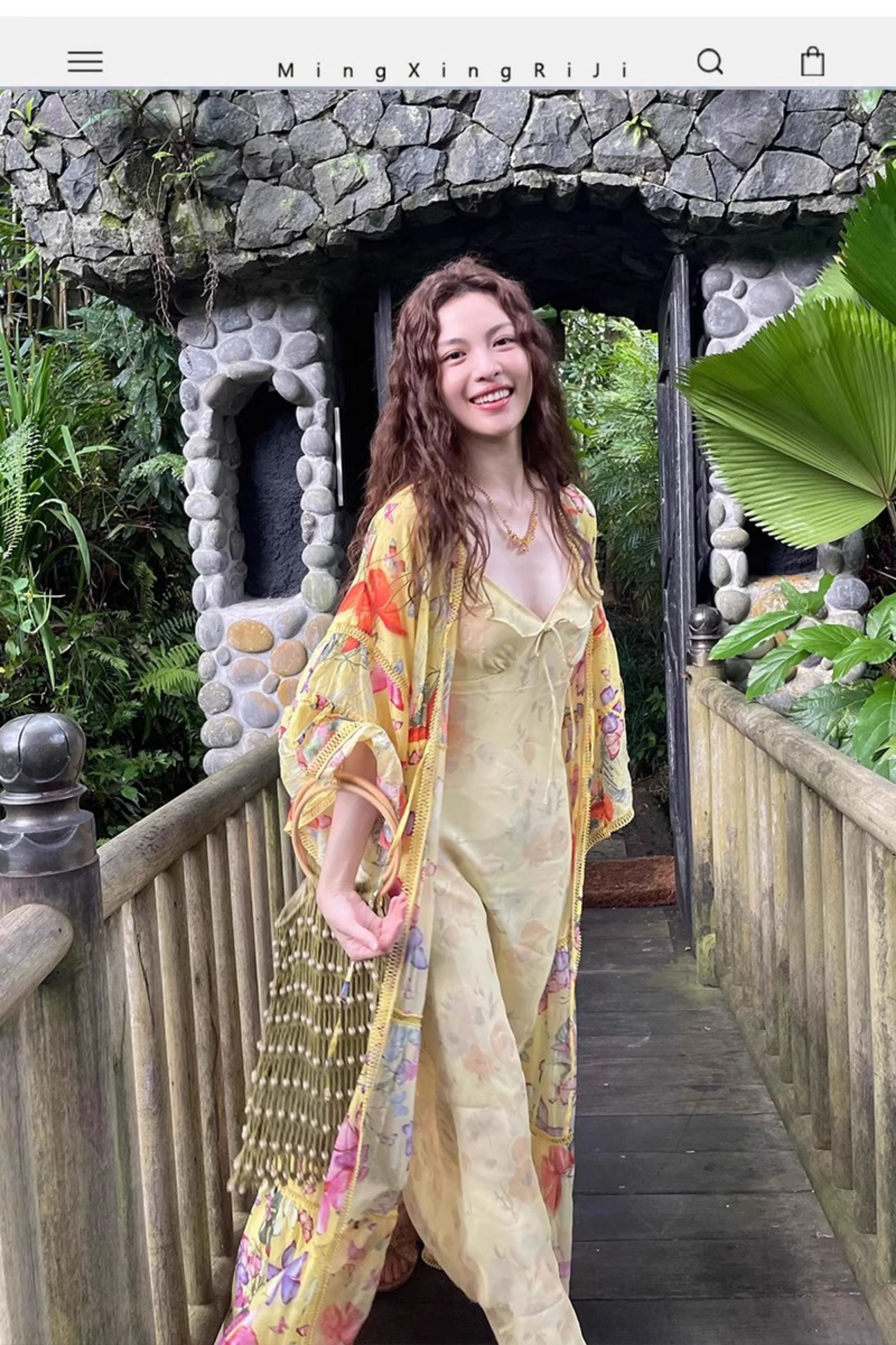 Zhong Chuxi's Same Style French Resort-Style Forest-Themed Butterfly Print Jacket and Ruffled Strap Dress Set for Women