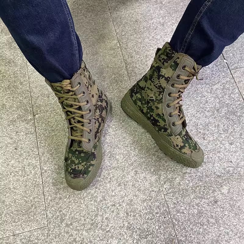 Snow King Genuine High-Top Military Training Shoes, Non-Slip and Wear-Resistant, Men's and Women's Labor Protection Yellow Rubber Shoes, Outdoor Hiking Shoes