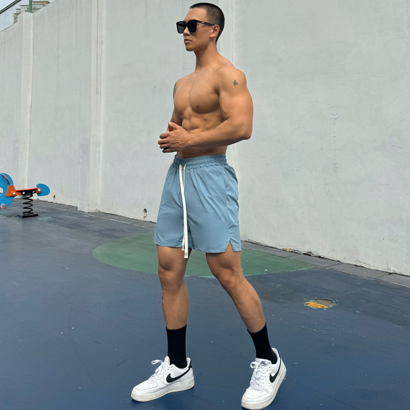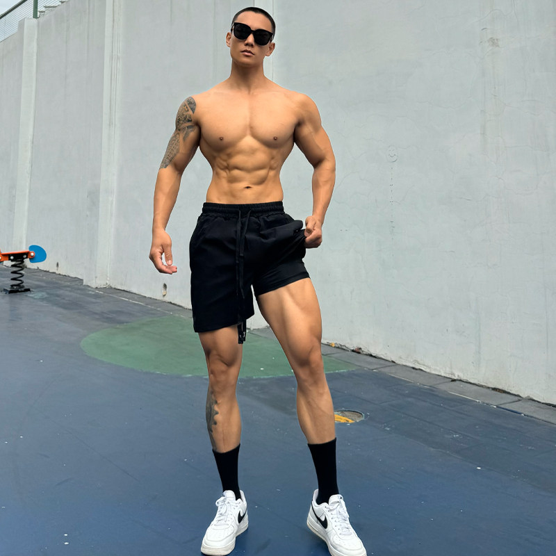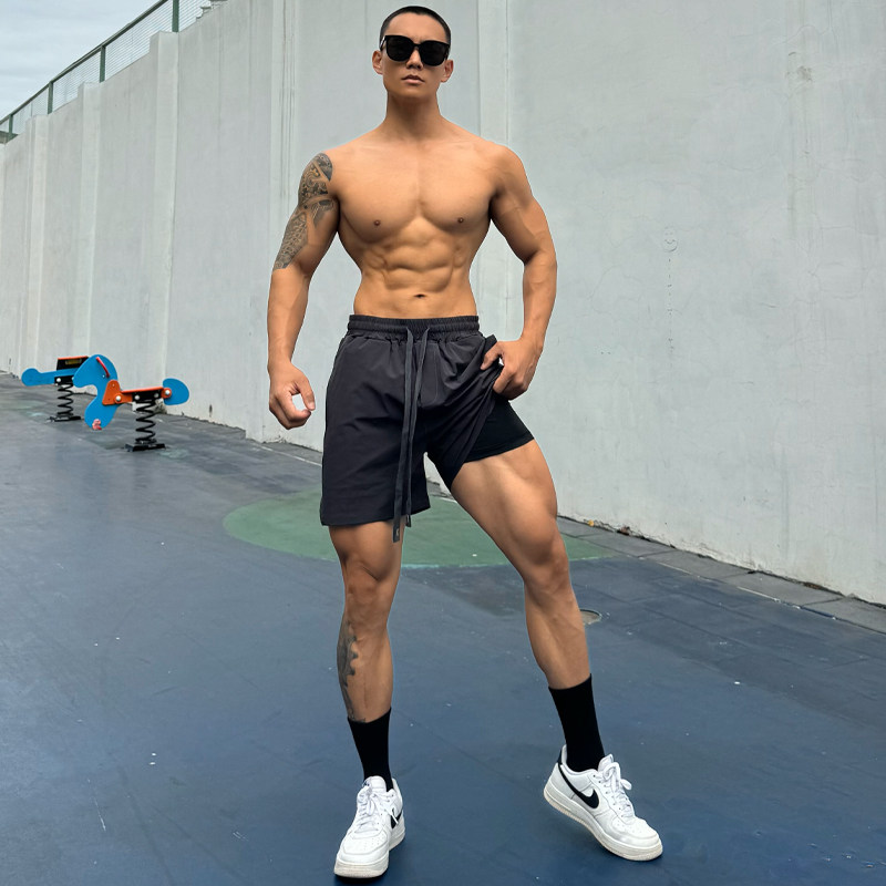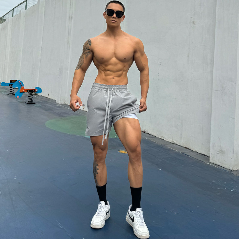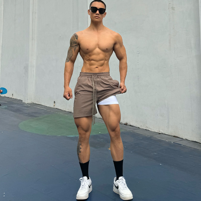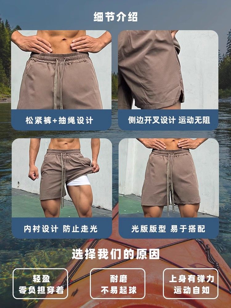 Men's Athletic Shorts, Double-Layered with Lining, Summer Quick-Drying, Running Training, Squatting, Breathable, Fitness Quarter-Length Shorts, Stretchy