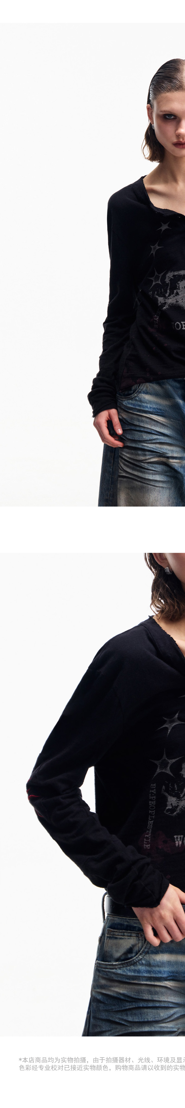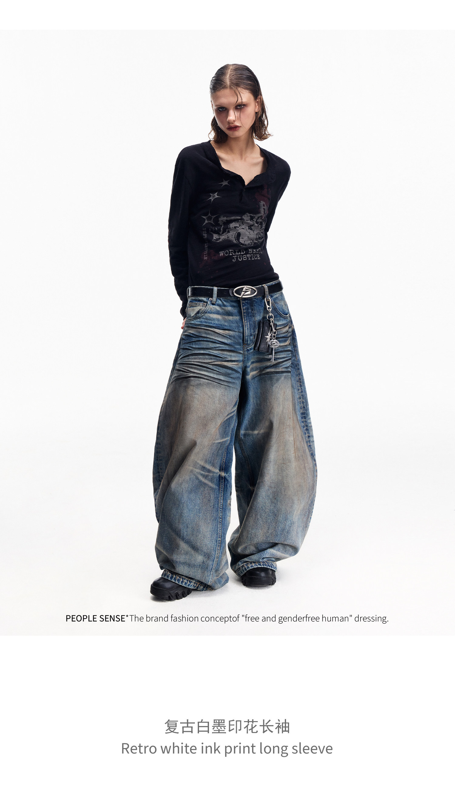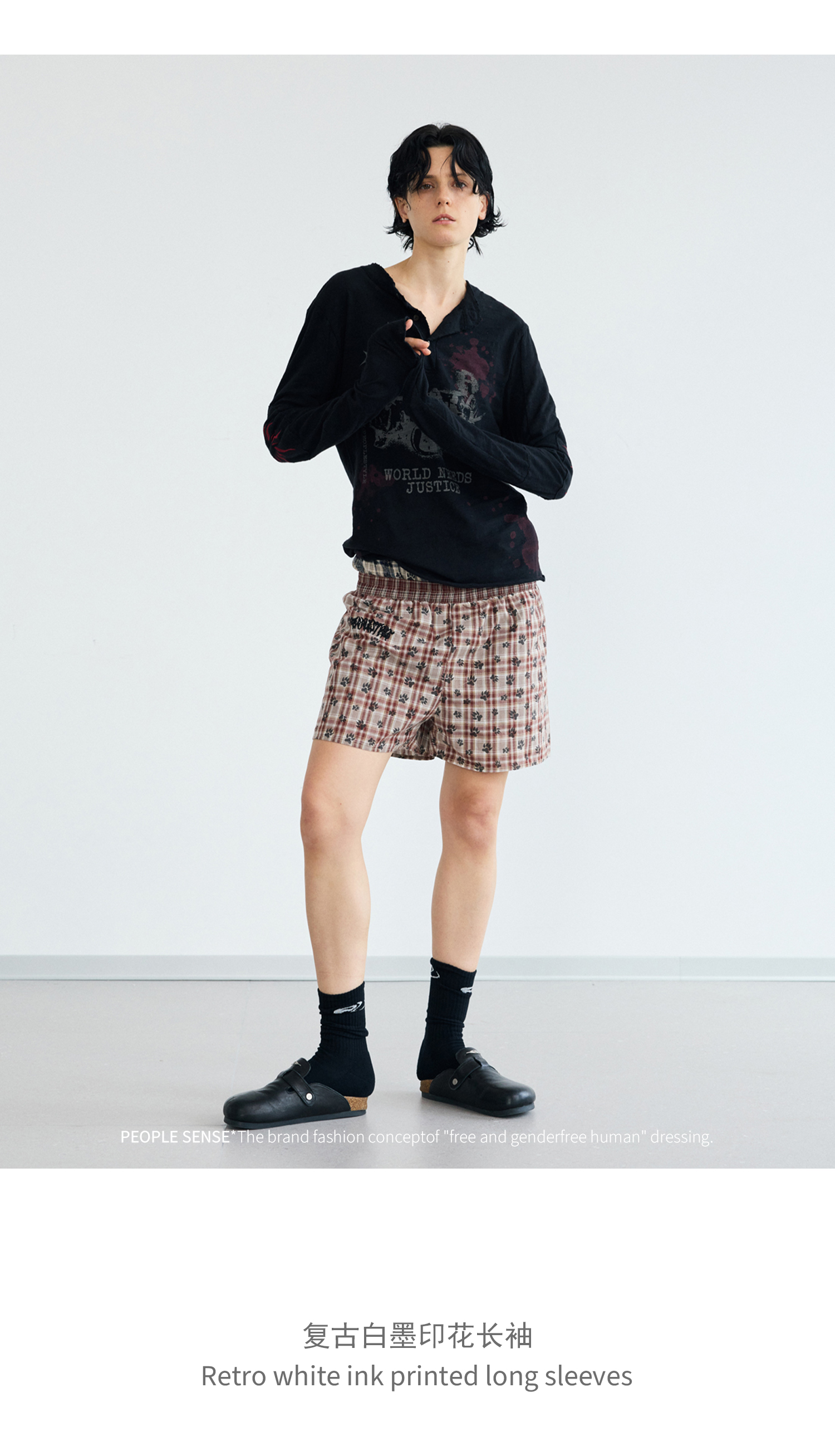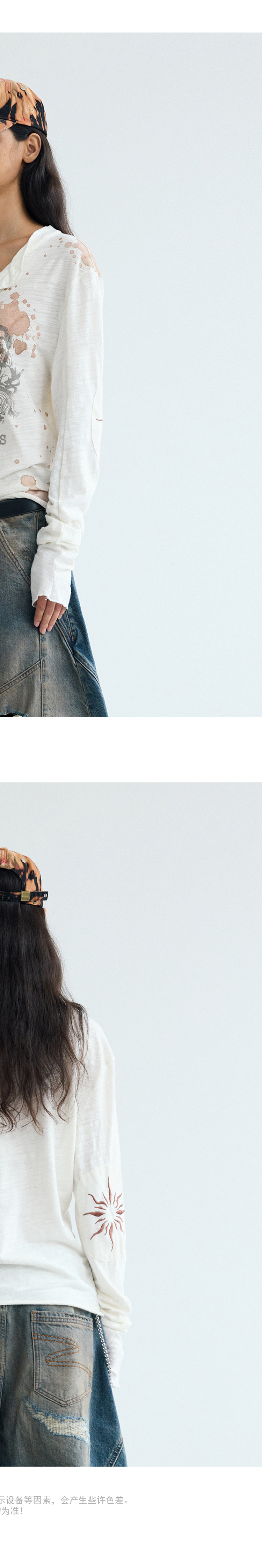 Peoplesense Retro White Ink Direct-Printed Washed Long-Sleeve T-Shirt with Vintage Feel, Cool and Breathable Loose Top