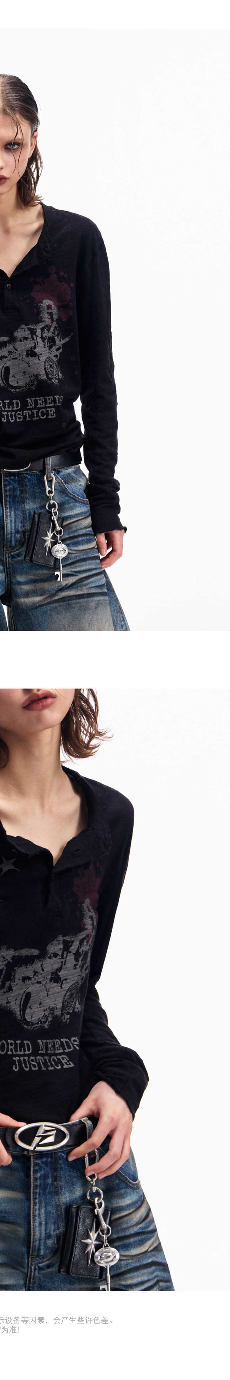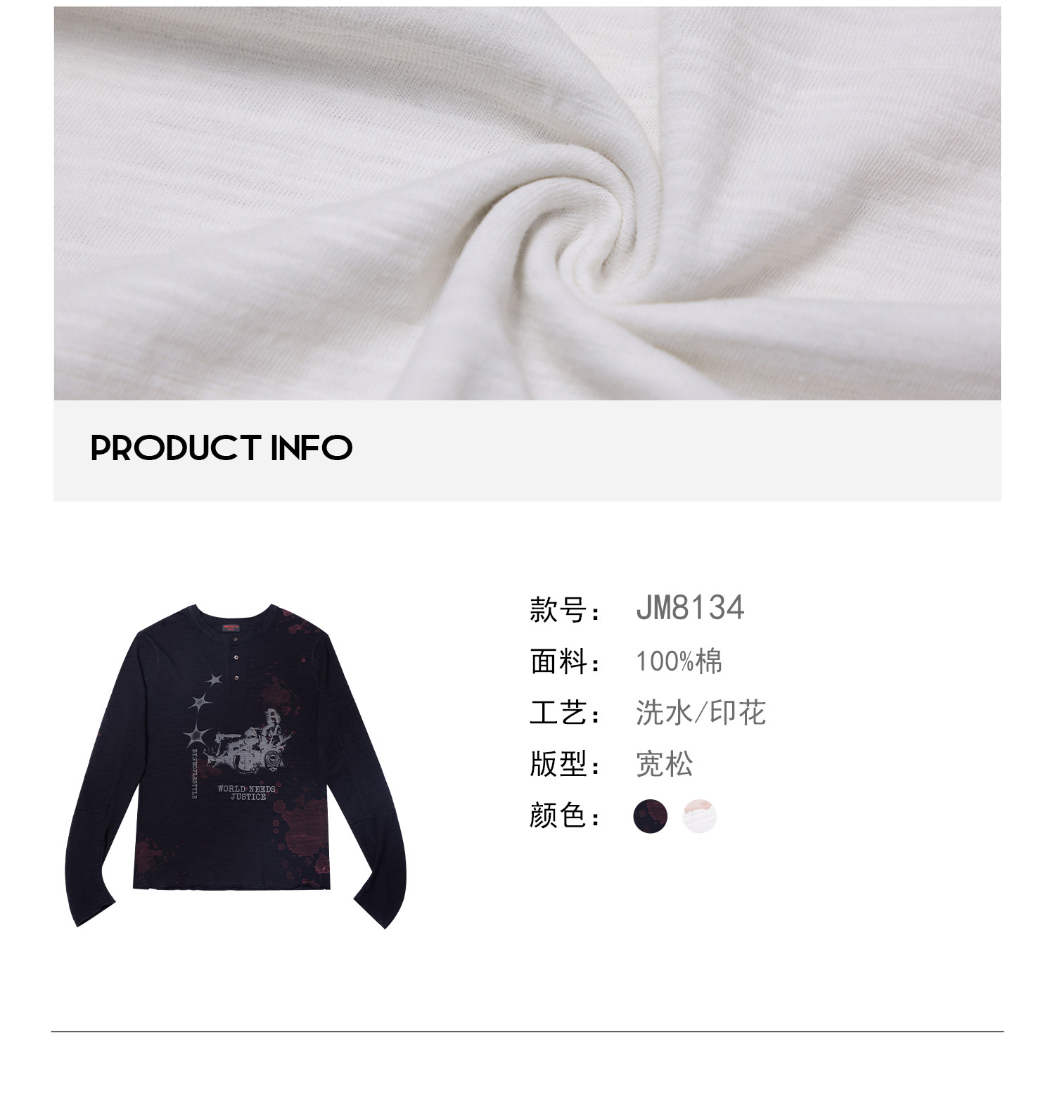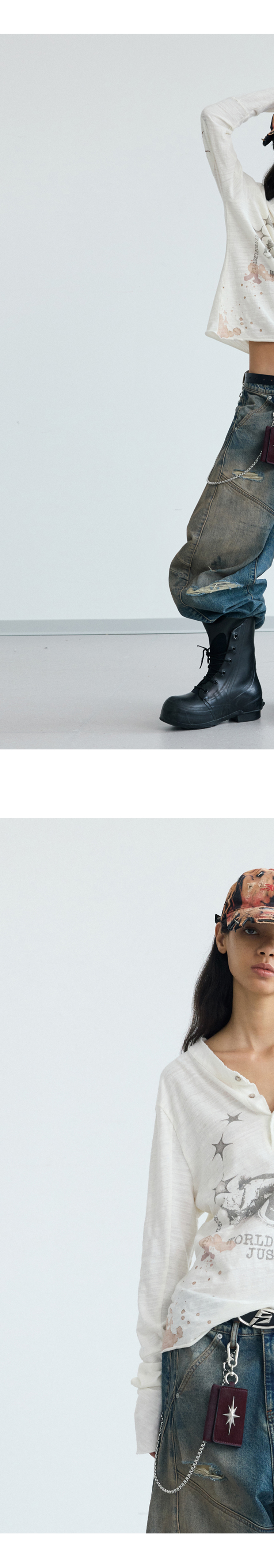 Peoplesense Retro White Ink Direct-Printed Washed Long-Sleeve T-Shirt with Vintage Feel, Cool and Breathable Loose Top