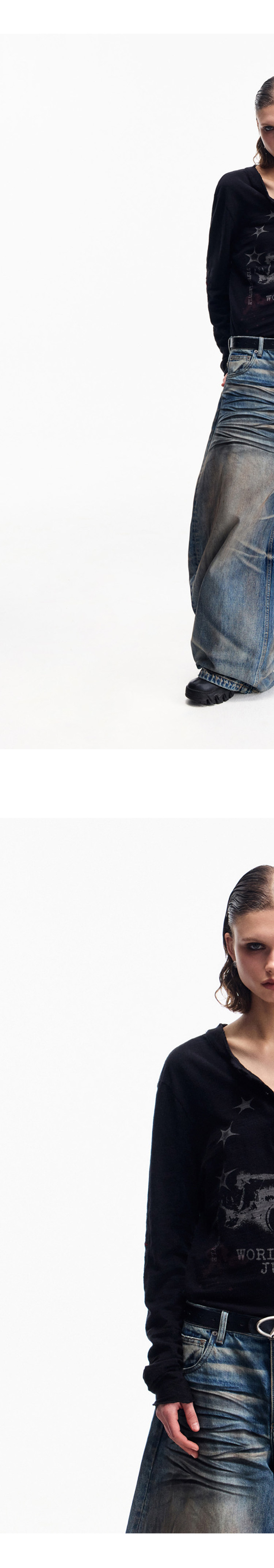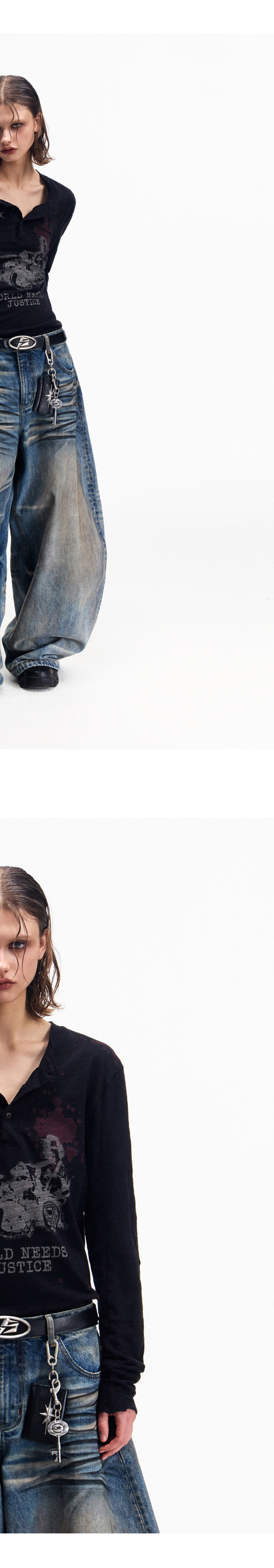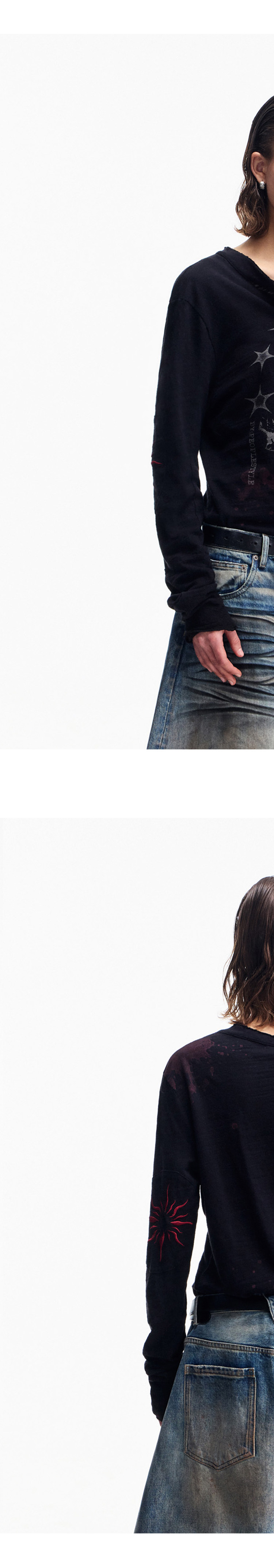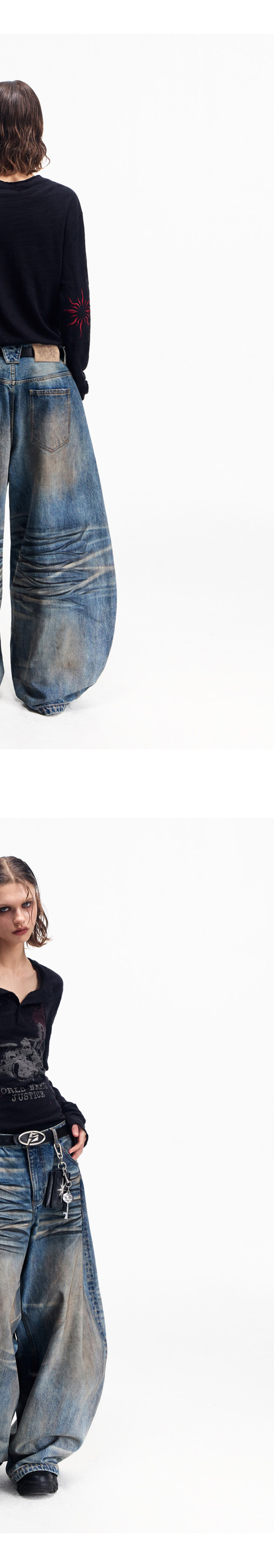 Peoplesense Retro White Ink Direct-Printed Washed Long-Sleeve T-Shirt with Vintage Feel, Cool and Breathable Loose Top