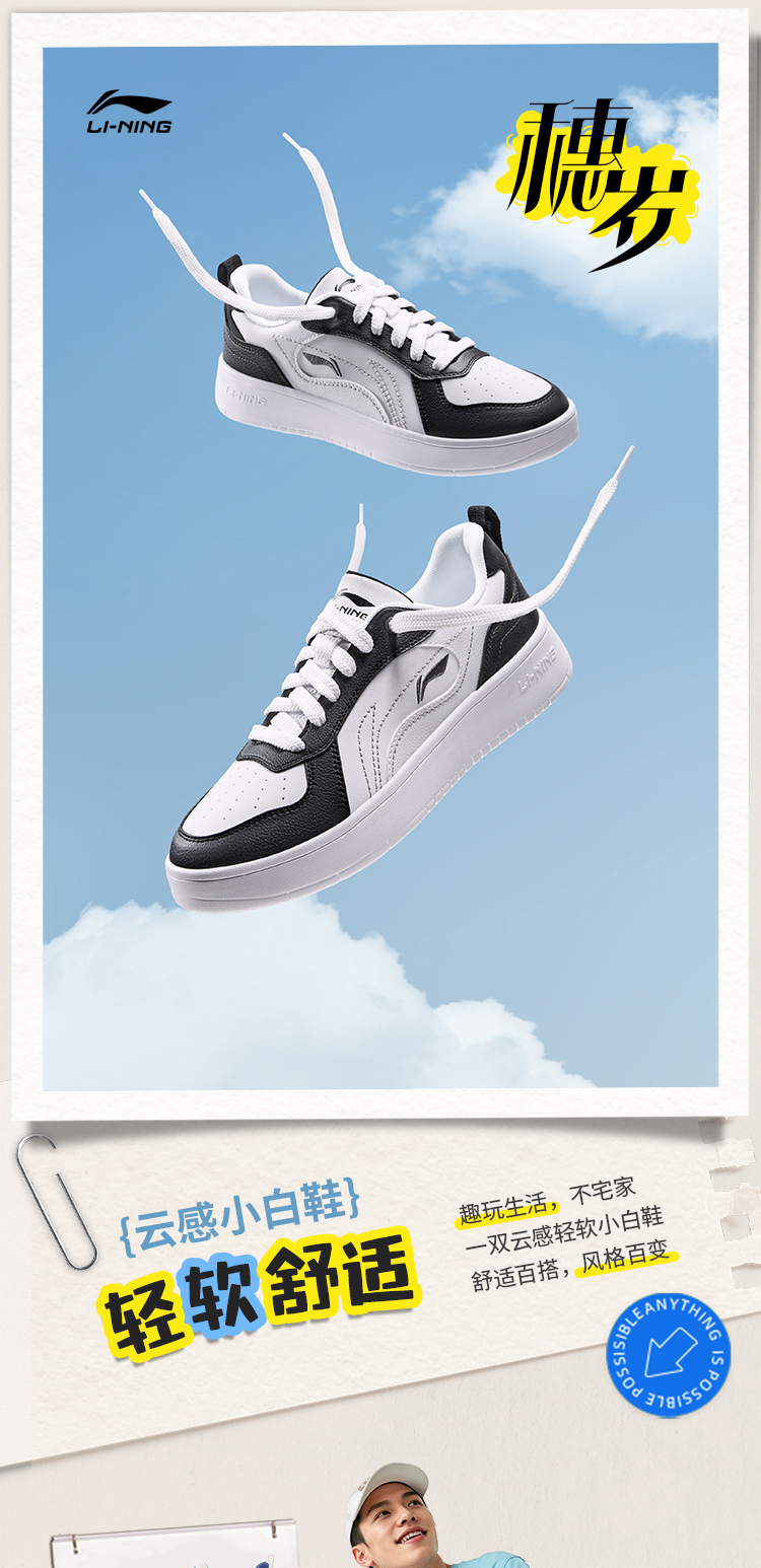 Li Ning Sui Sui | Men's Sneakers, New Autumn Style, White Shoes, Classic Black Casual Shoes, Low-Top Sports Shoes