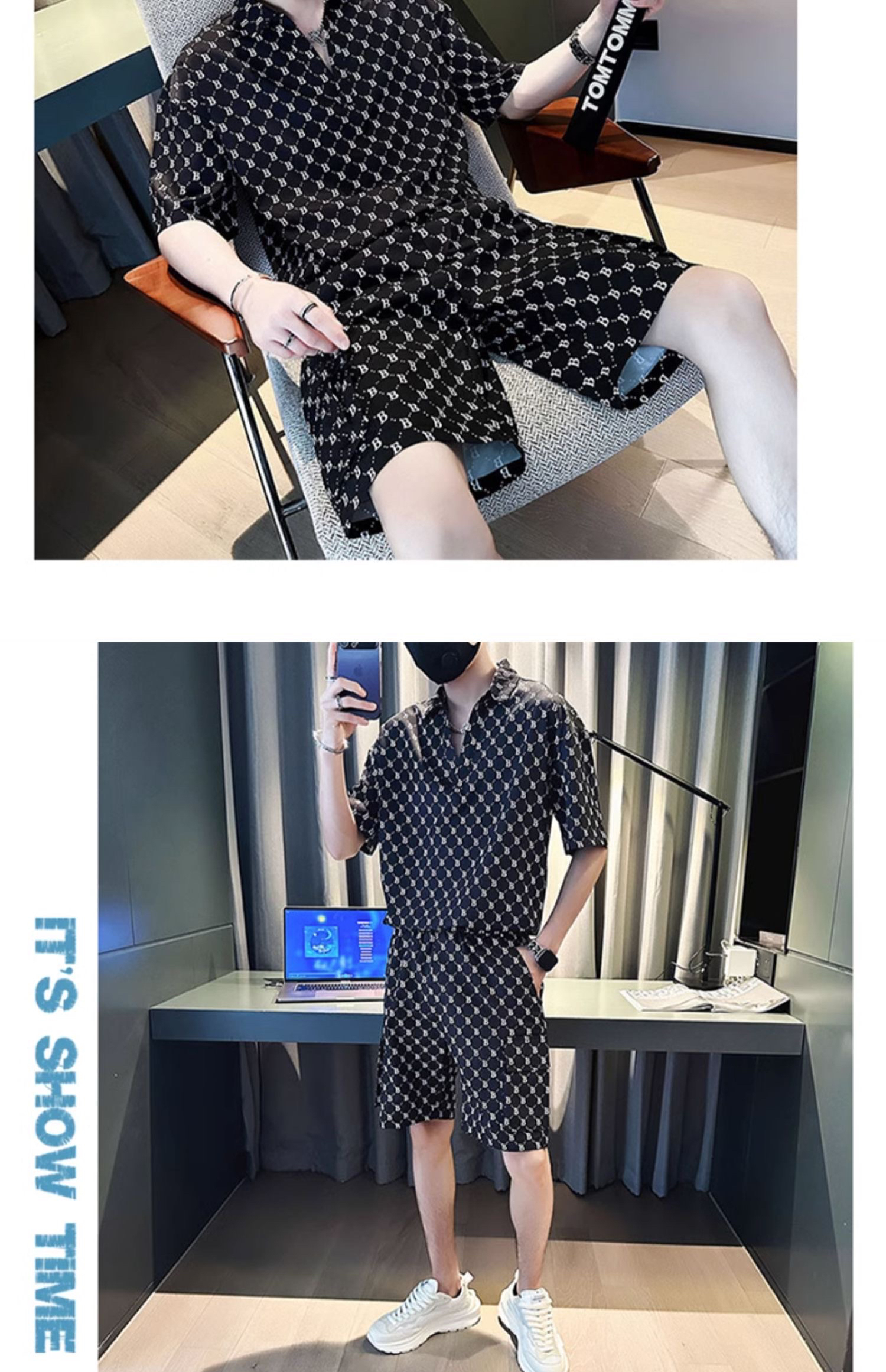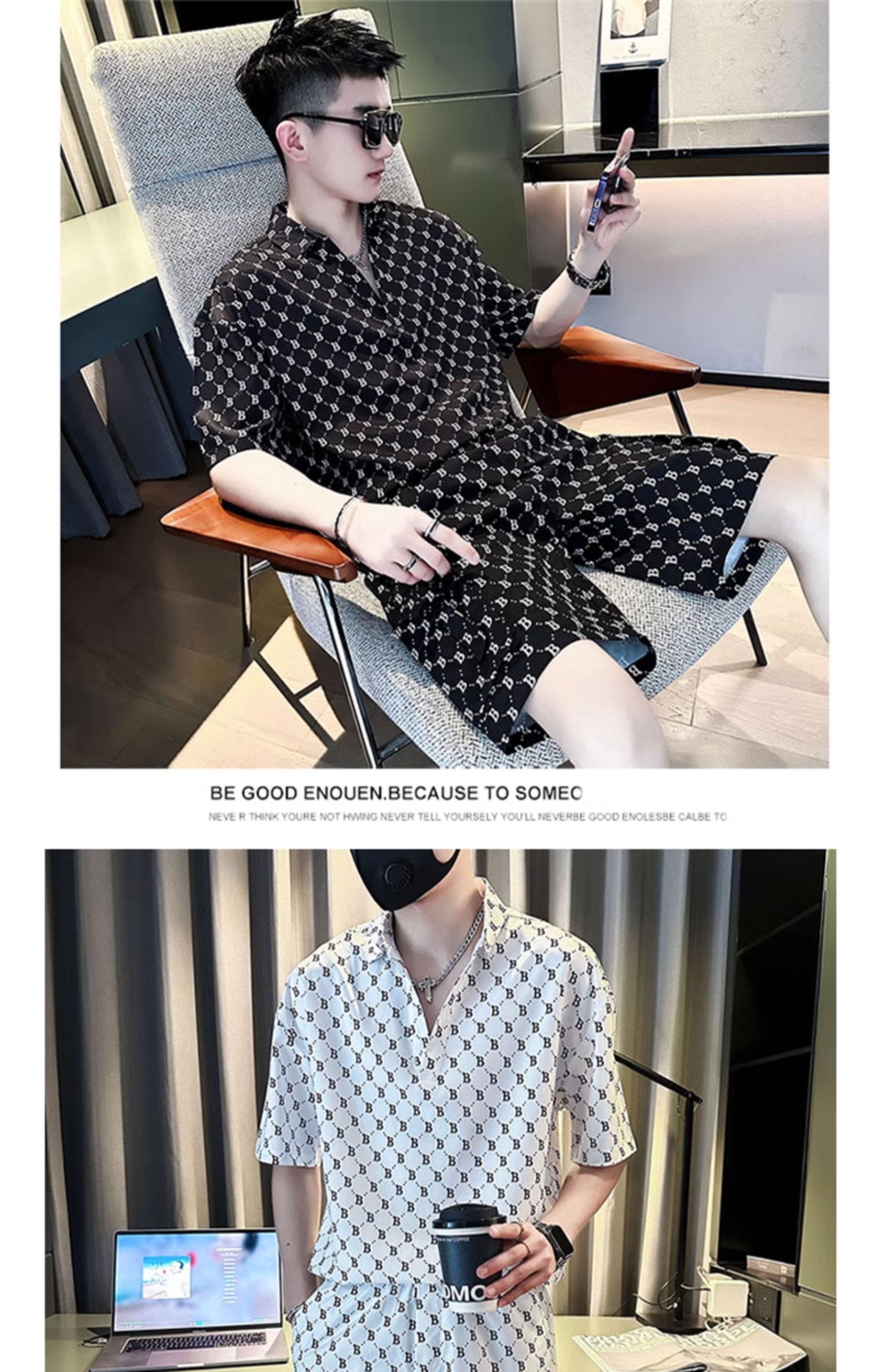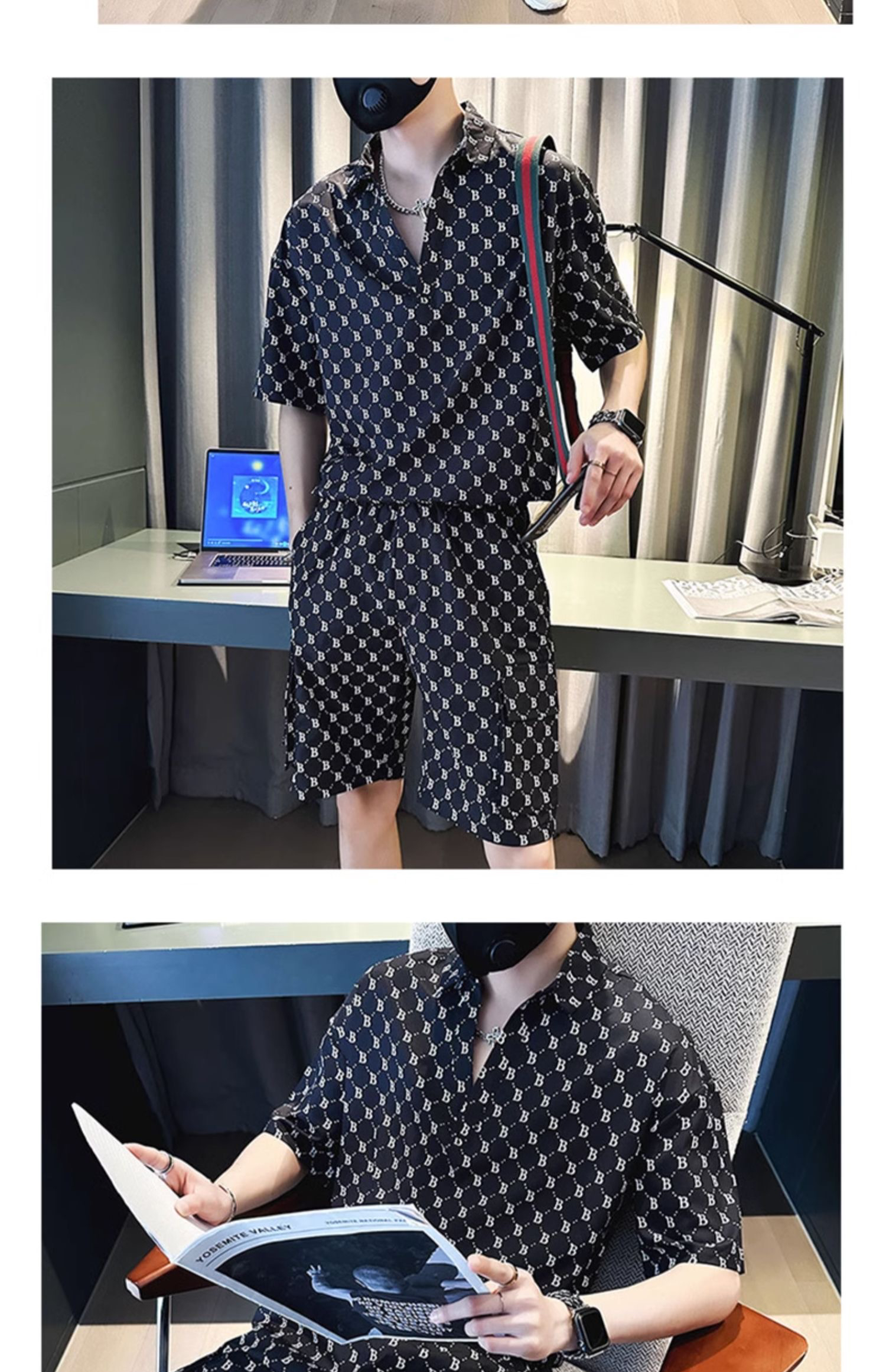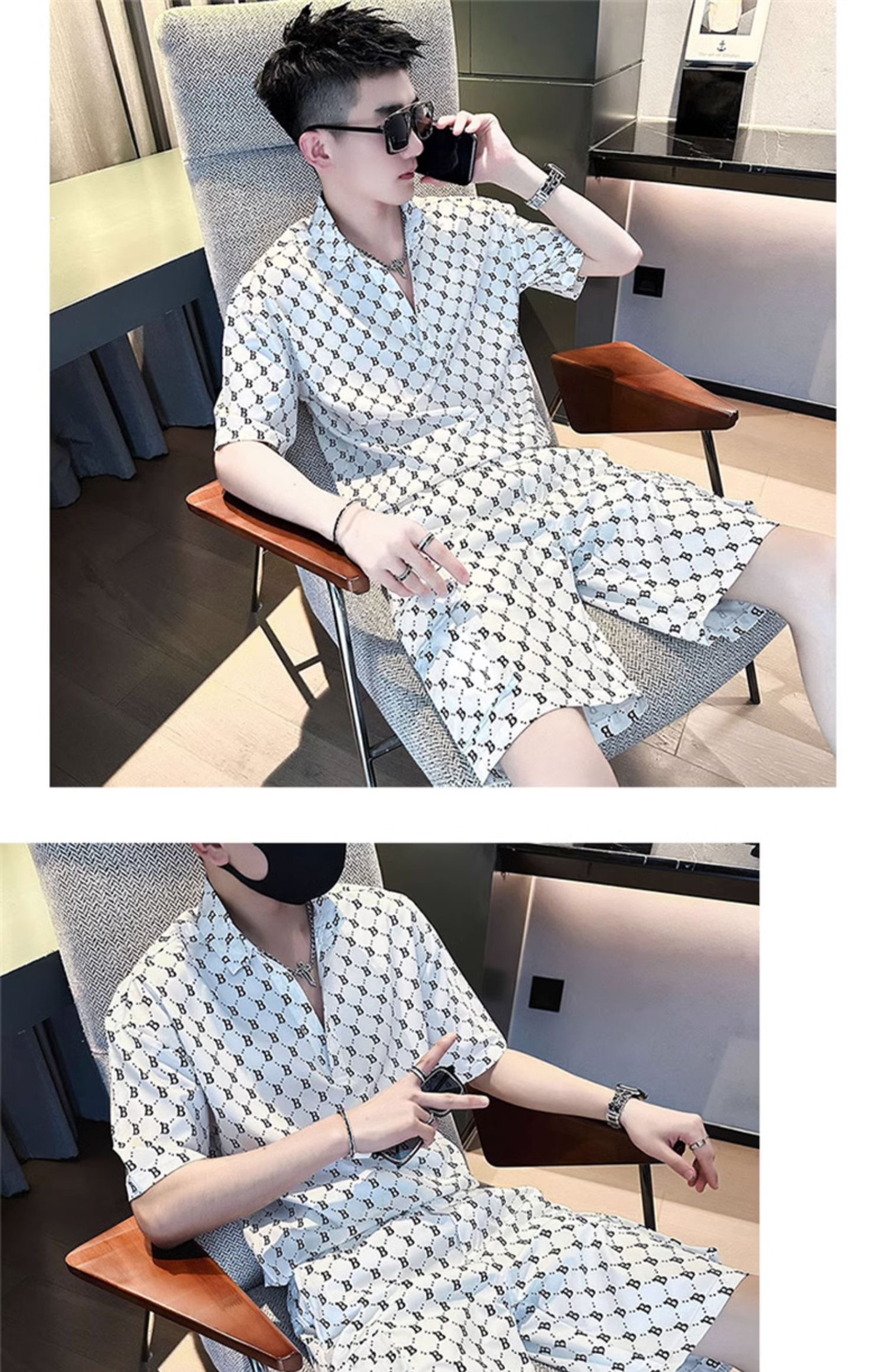 Summer Thin Ice Silk Short-Sleeved Shirt Set for Men, Fashionable and Handsome, Loose Short-Sleeved Shorts, Comfortable and Casual Two-Piece Set
