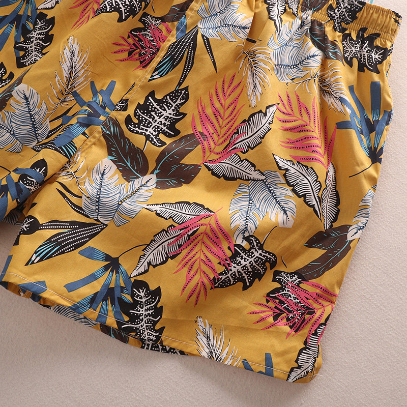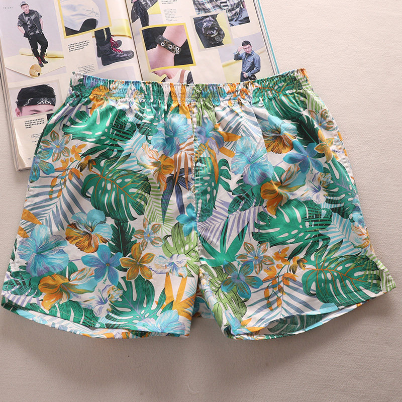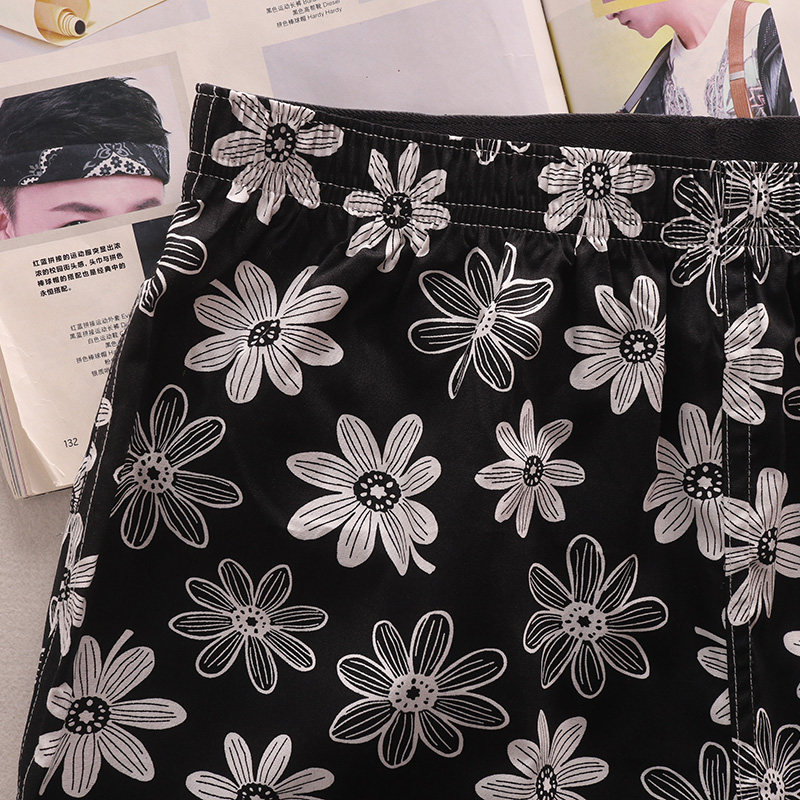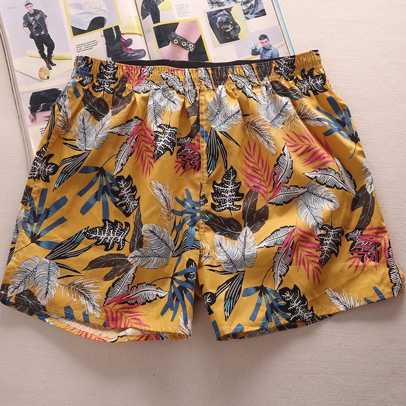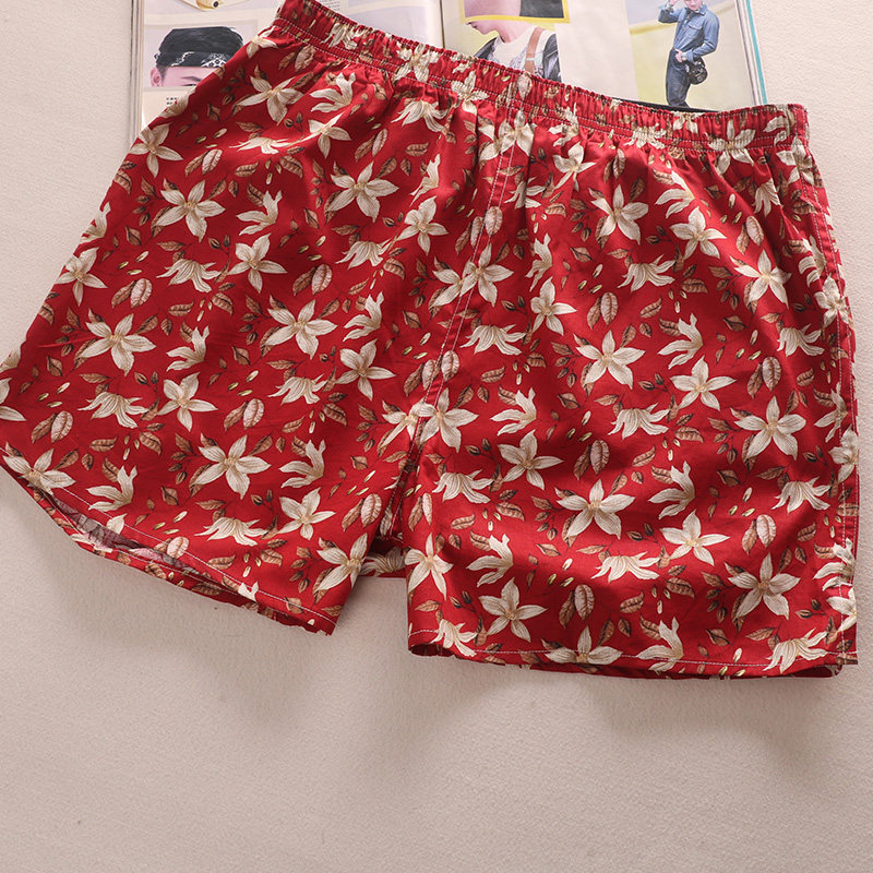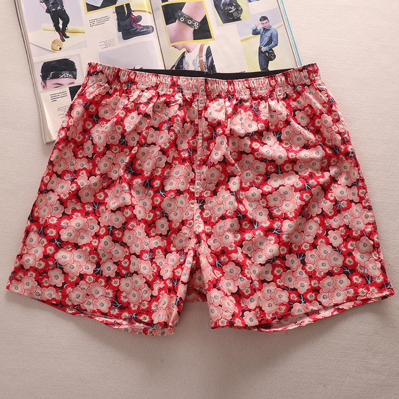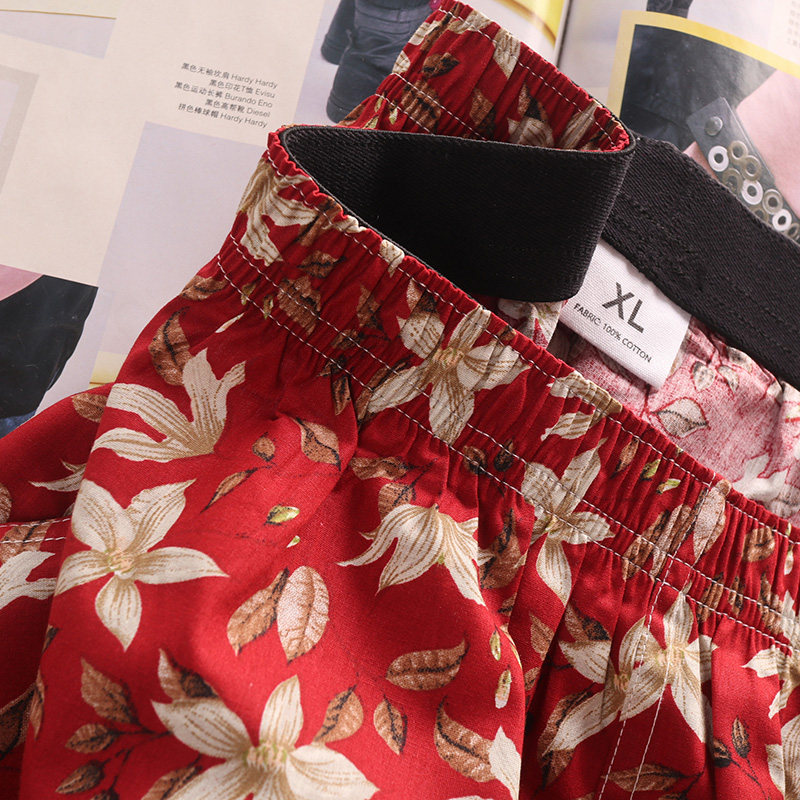Japanese Retro Printed Pure Cotton Stylish Men's Boxer Shorts Home Shorts Three-Quarter Pants Loose Floral Shorts Beach Shorts