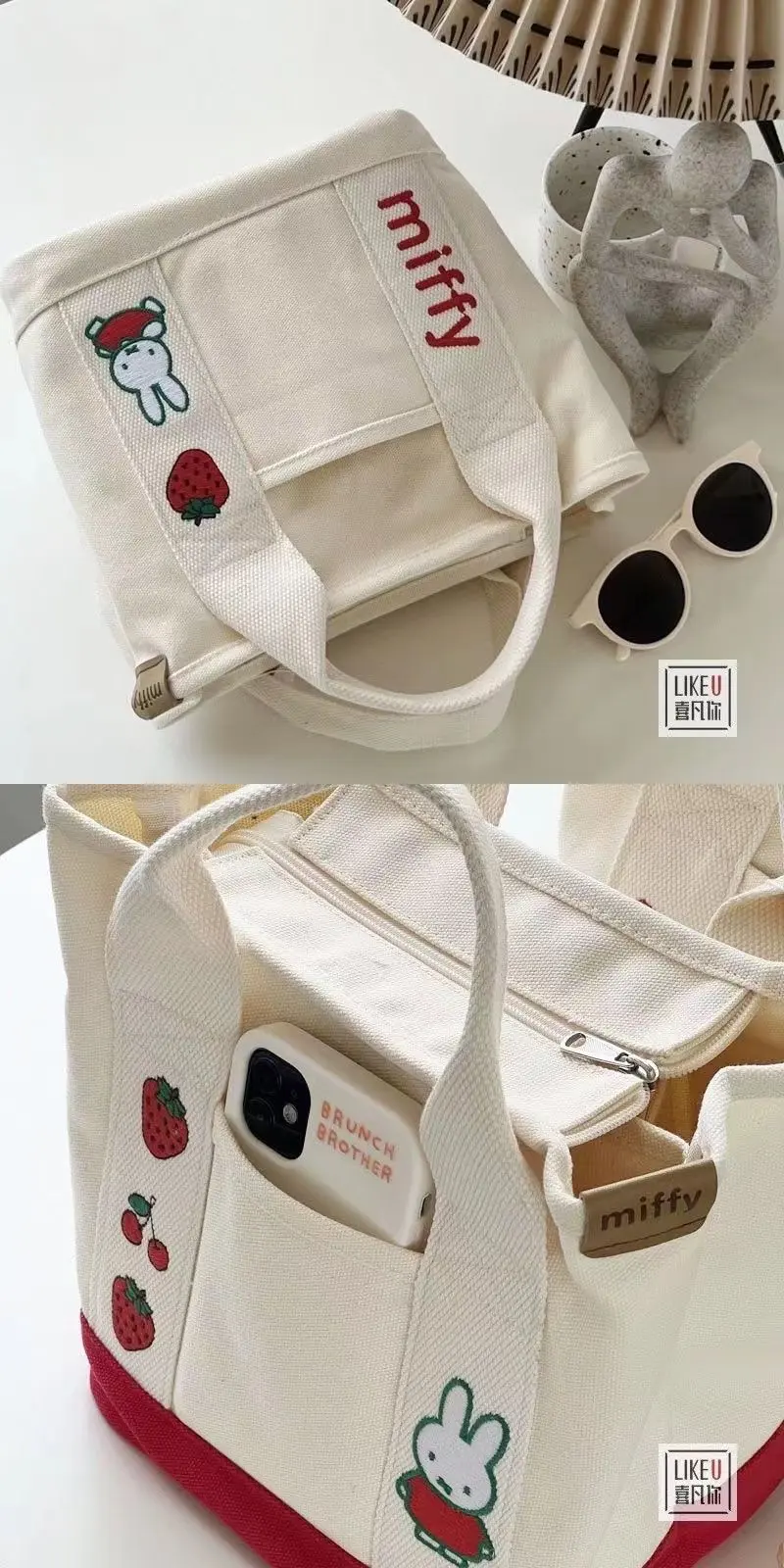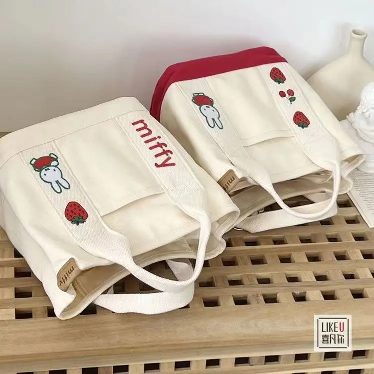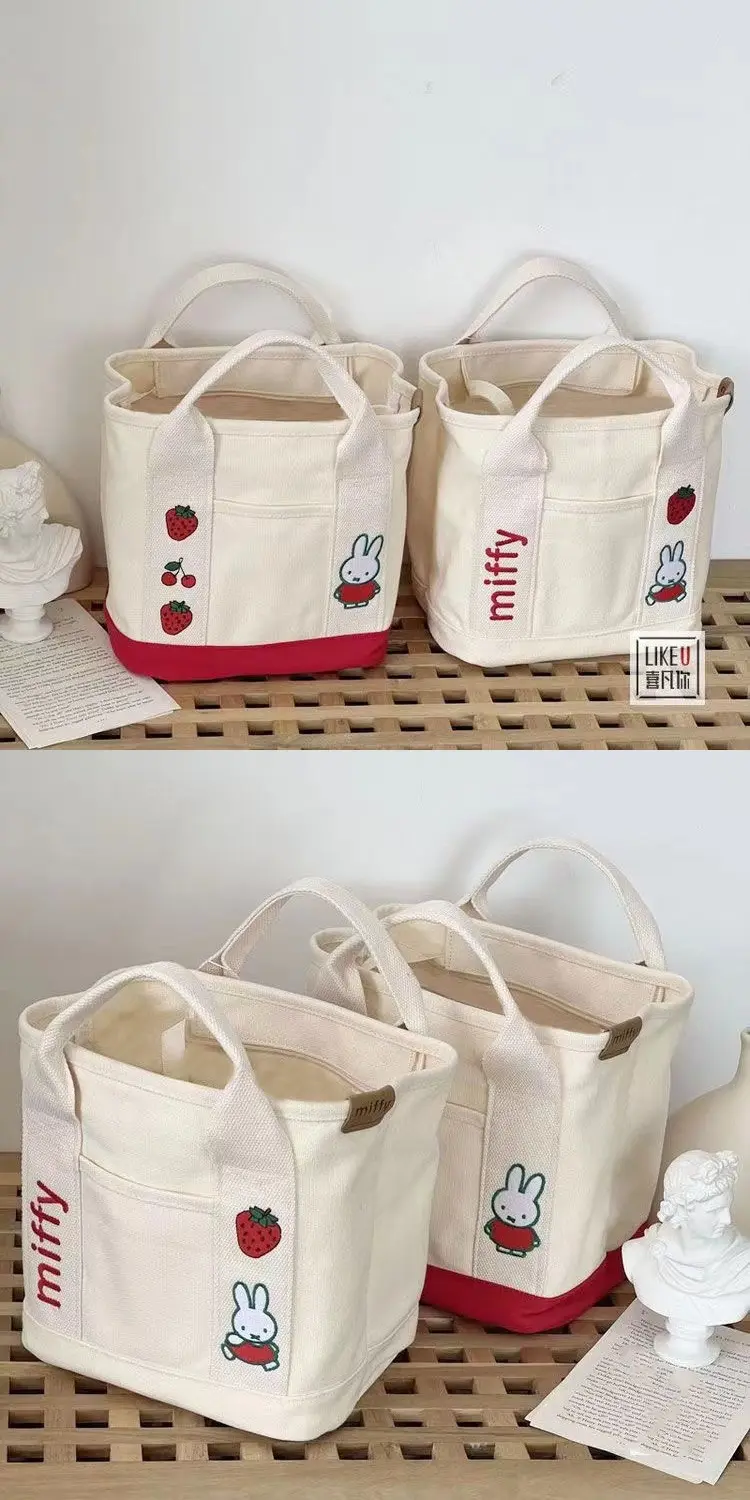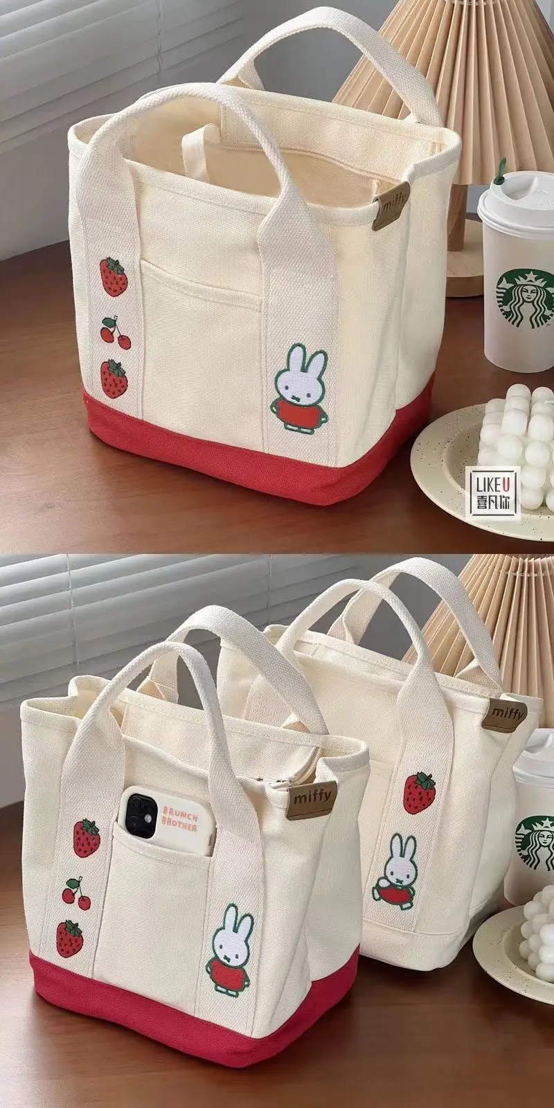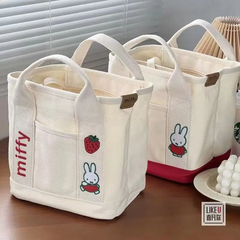Year of the Rabbit Rabbit Embroidery Japanese Style Cute Canvas Bag Mommy Outing Handbag Lunch Bag Office Worker Tote Bag for Women