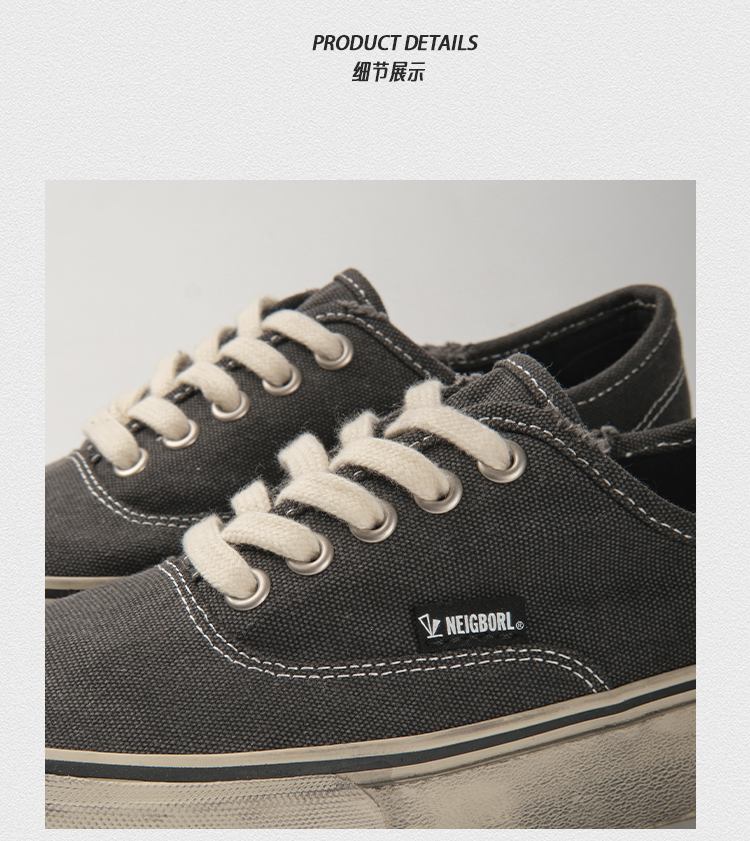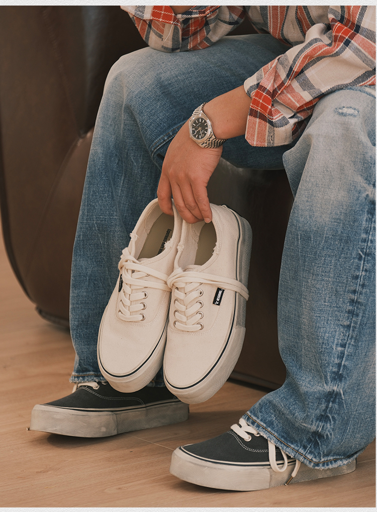 【Wanli Road】Neigborl Uncle Zhao's Low-Top Canvas Shoes, Retro, Simple, Versatile Flat Shoes, Vulcanized Shoes
