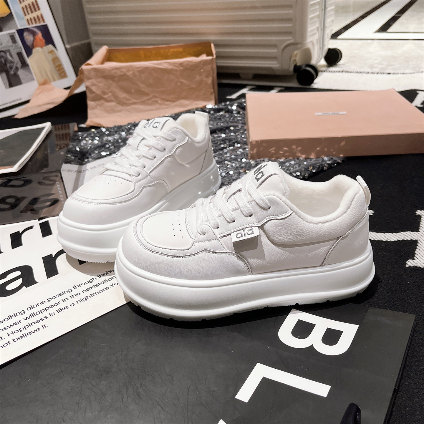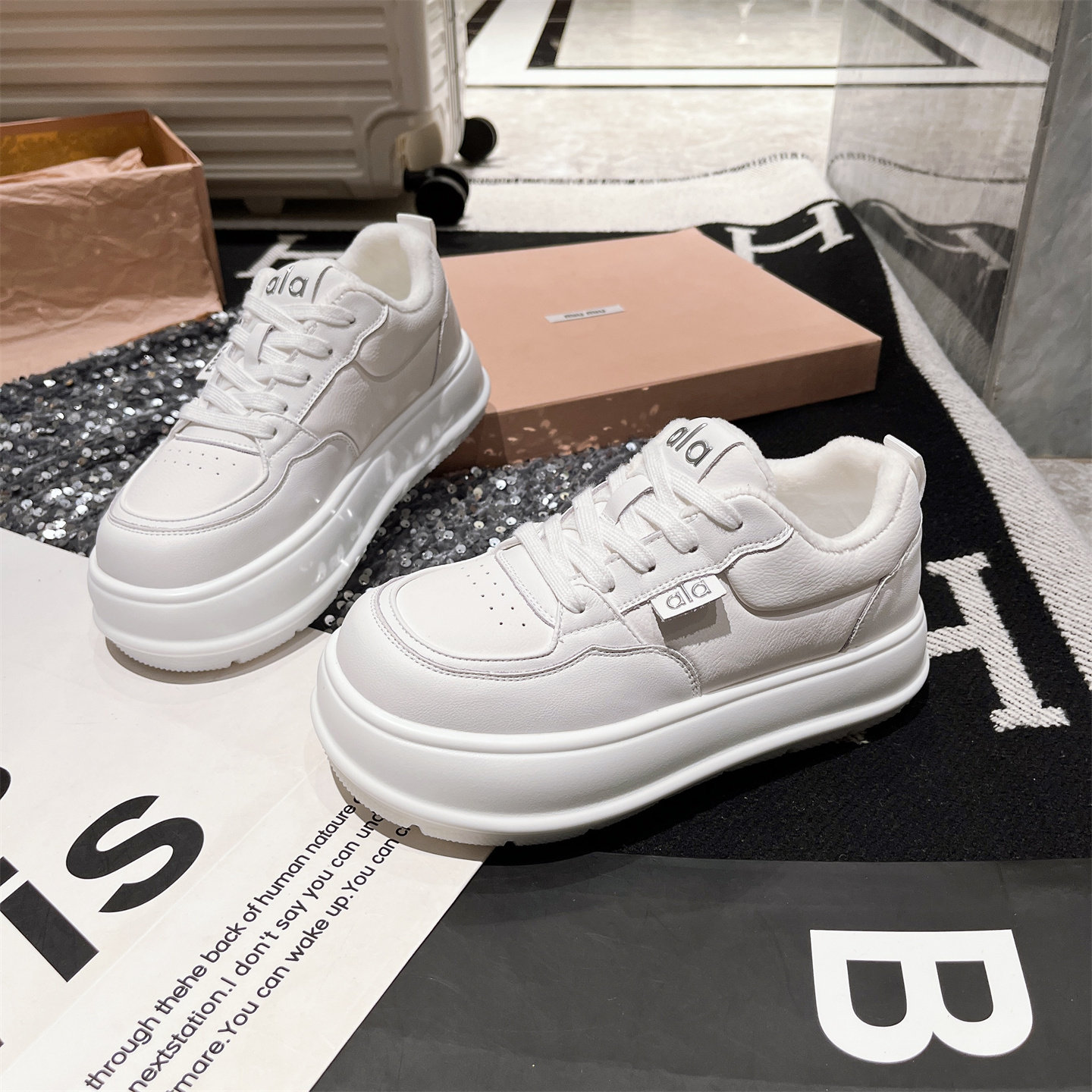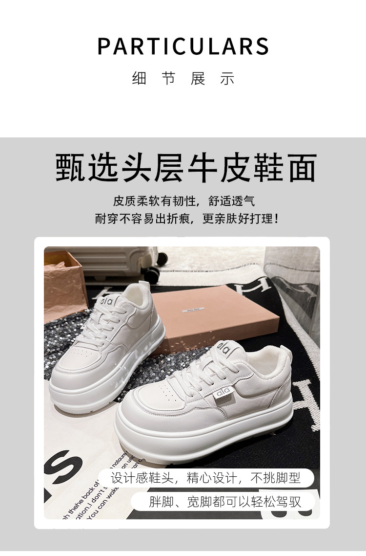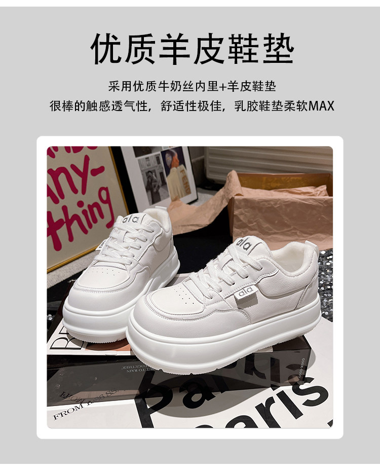 Hong Kong Genuine Leather Thick-Soled Height-Increasing Loafers for Women, 2025 Autumn and Winter Fleece-Lined Casual Sneakers, Versatile Board Shoes