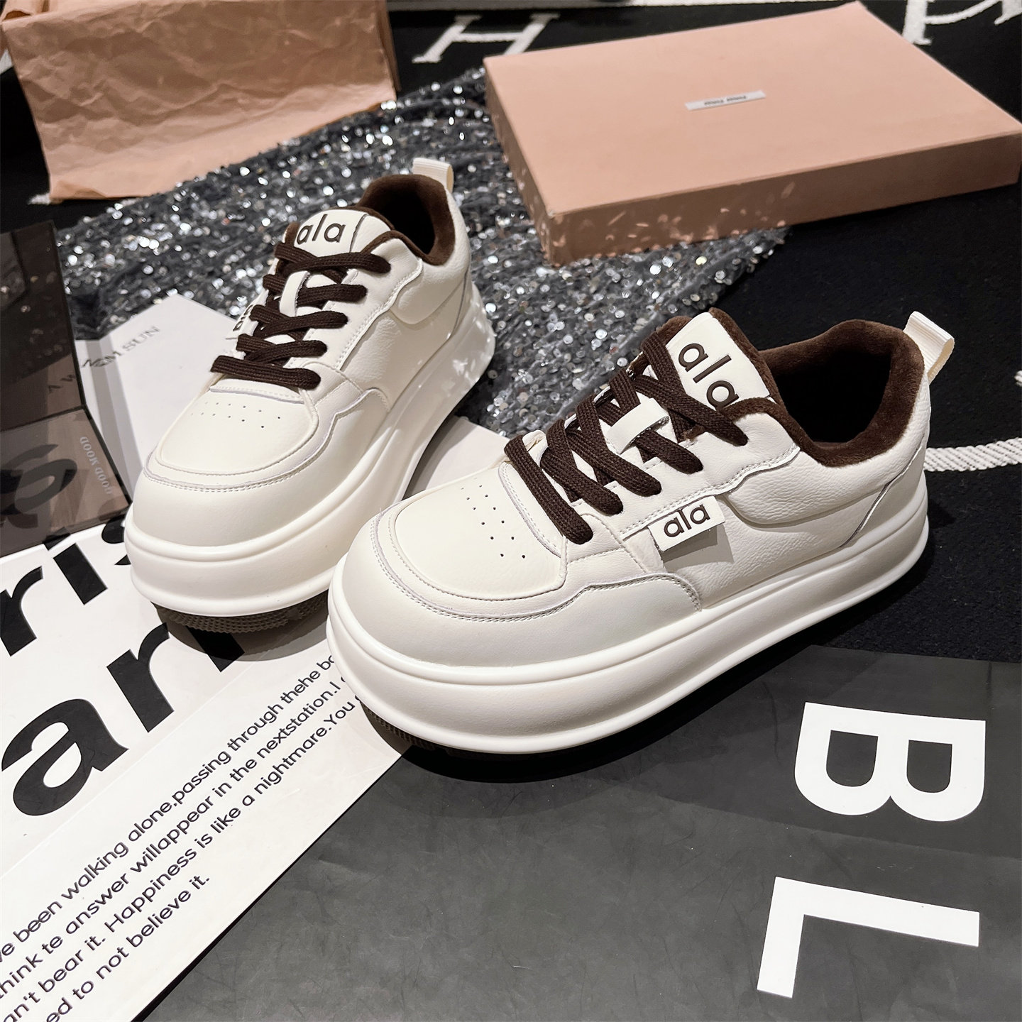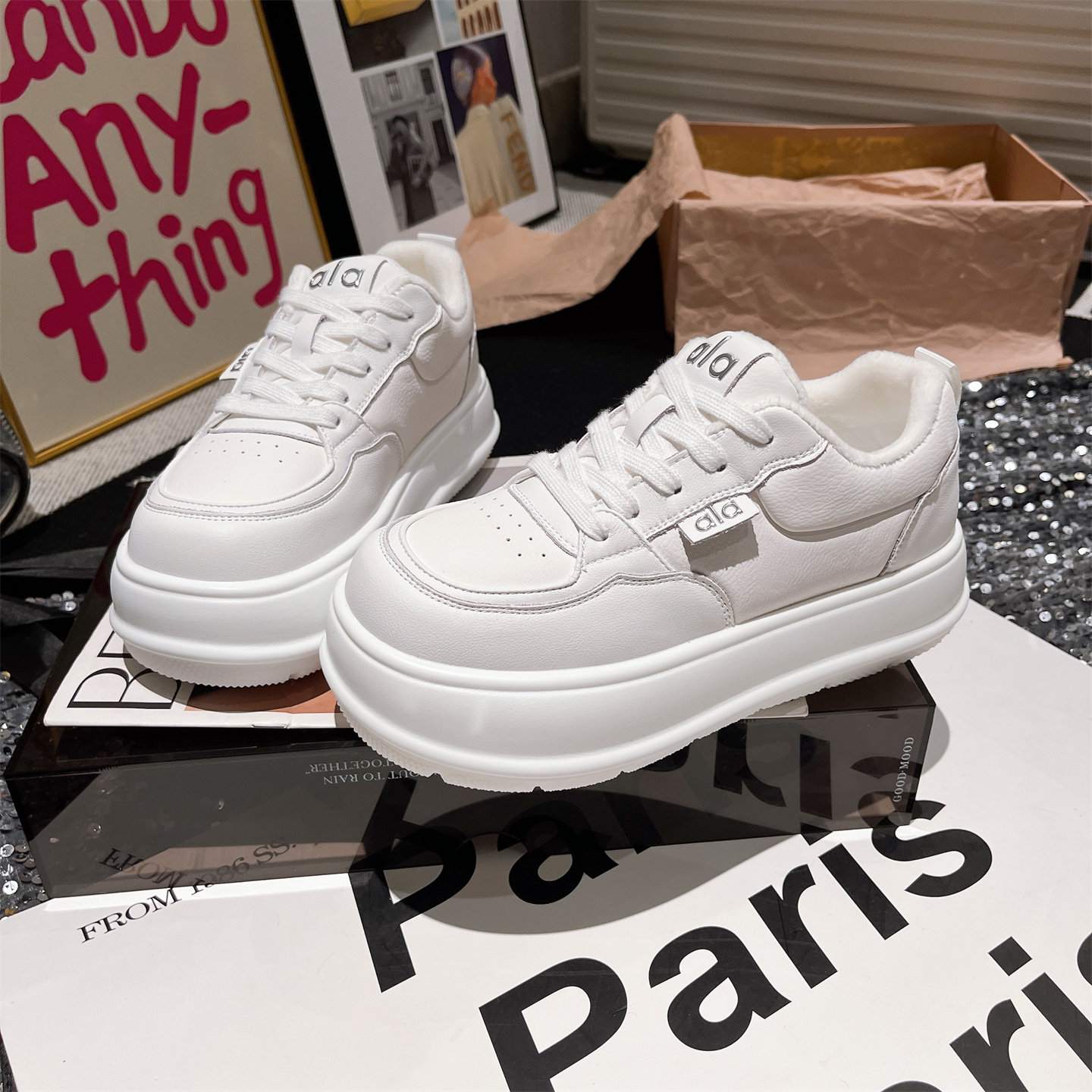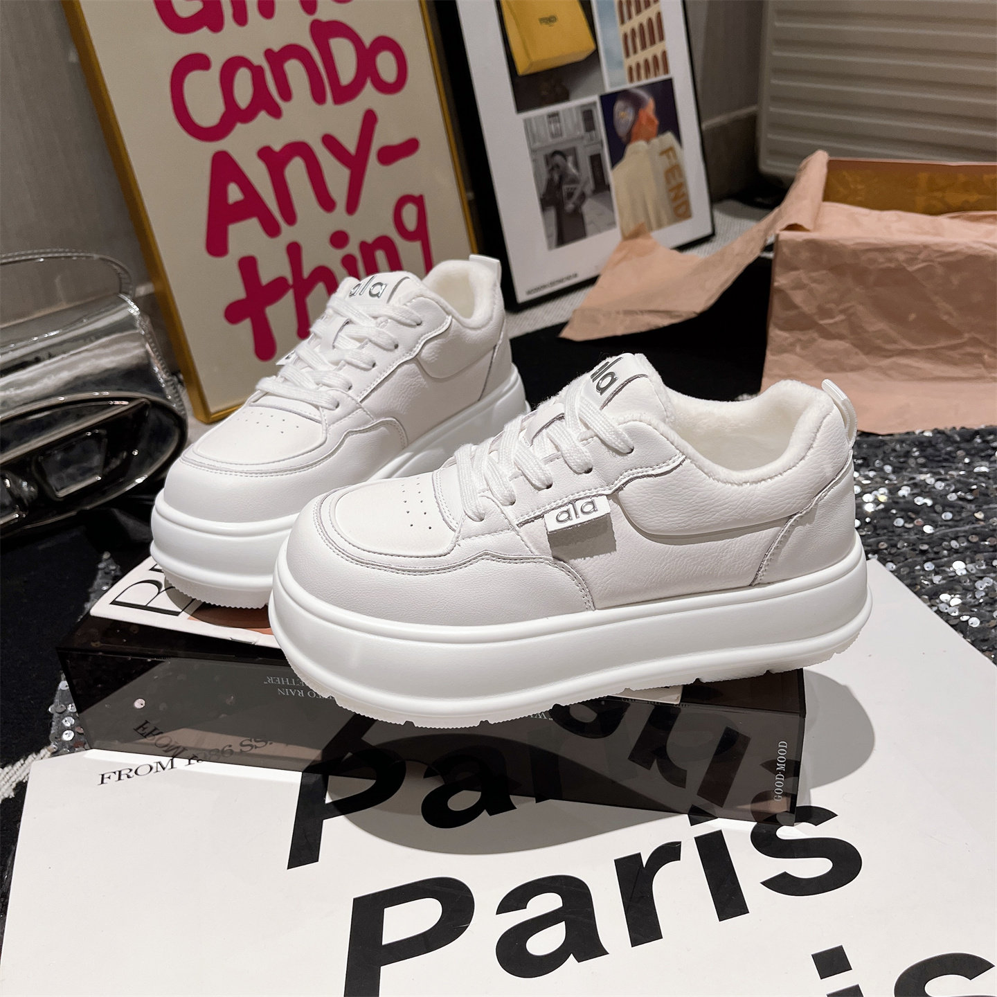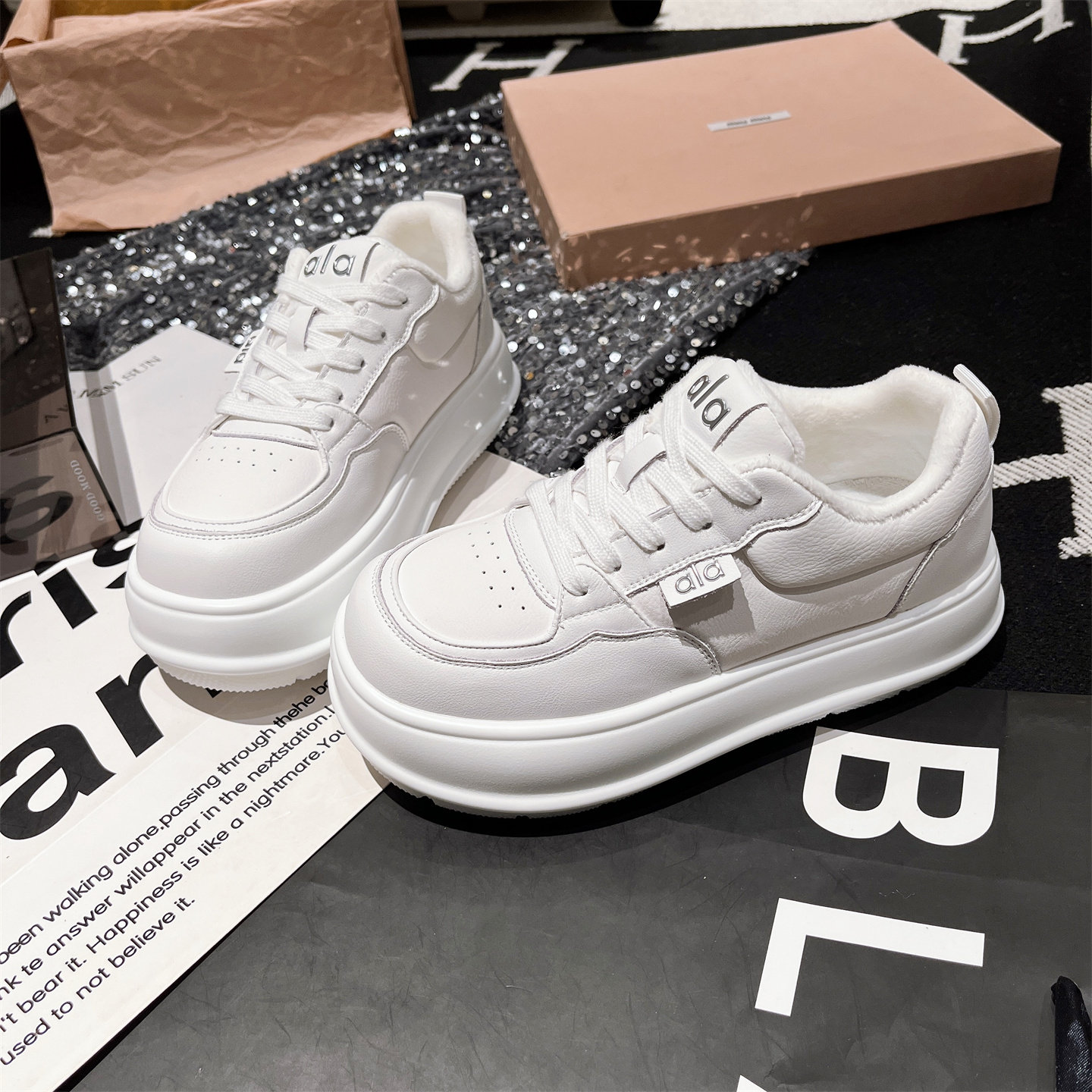 Hong Kong Genuine Leather Thick-Soled Height-Increasing Loafers for Women, 2025 Autumn and Winter Fleece-Lined Casual Sneakers, Versatile Board Shoes
