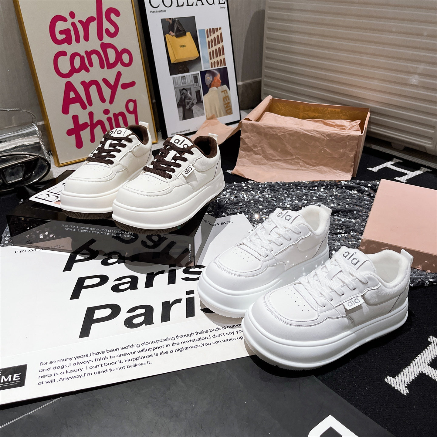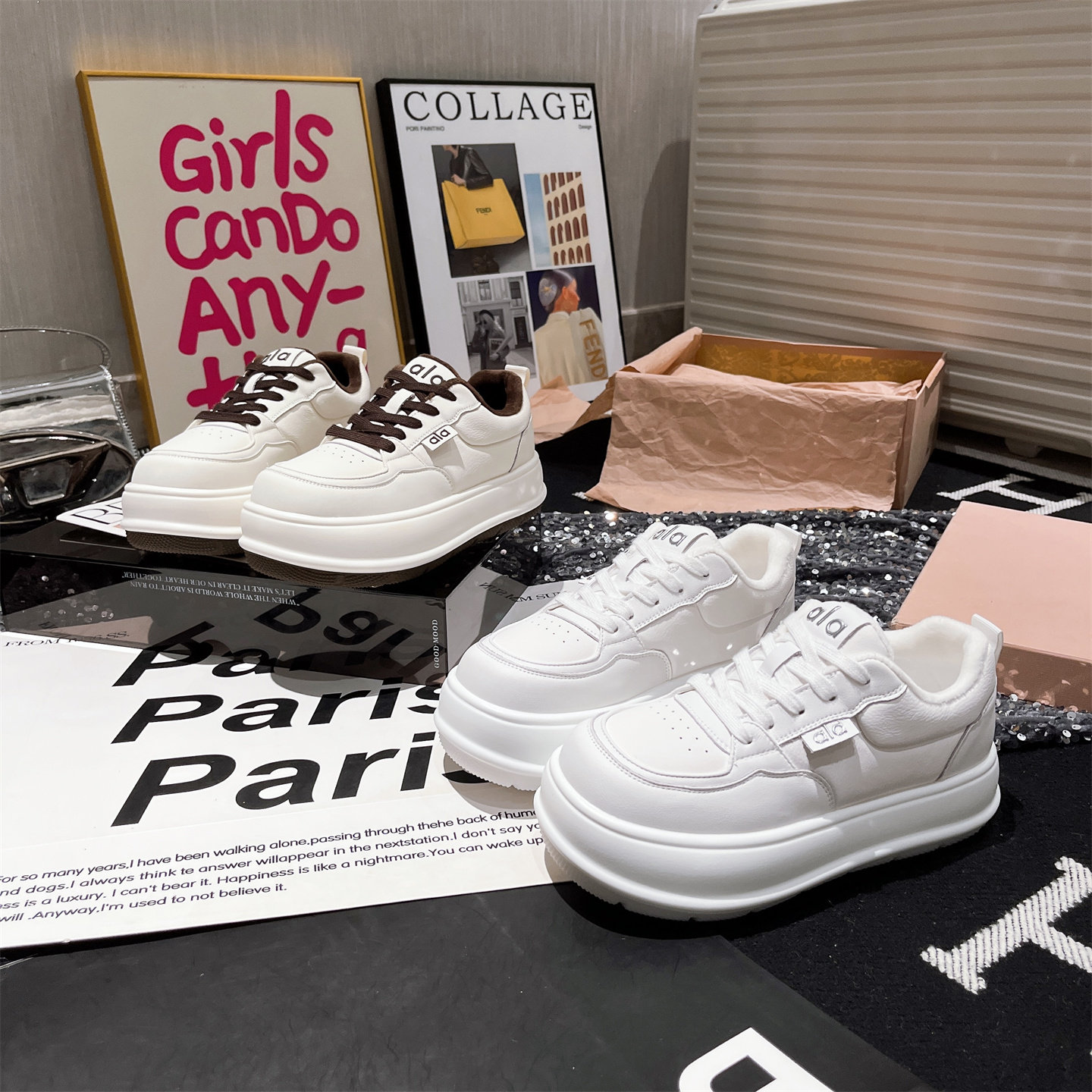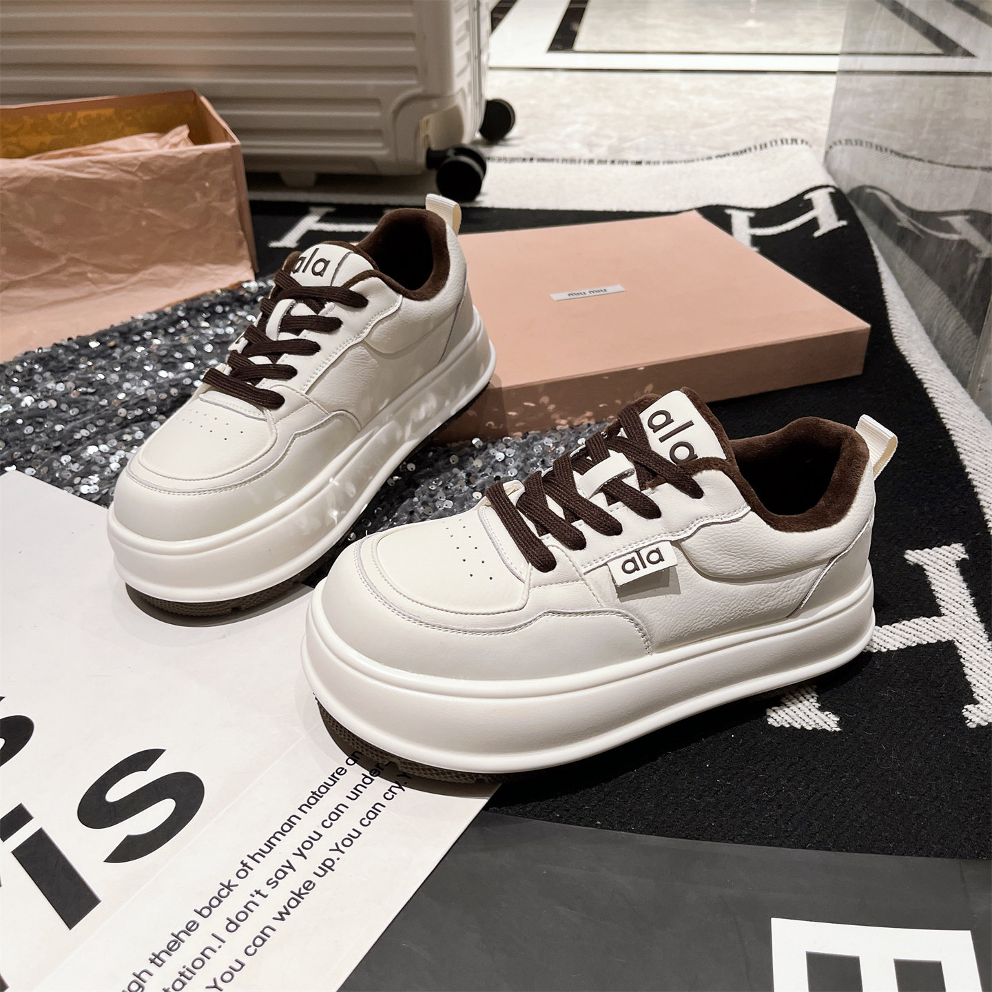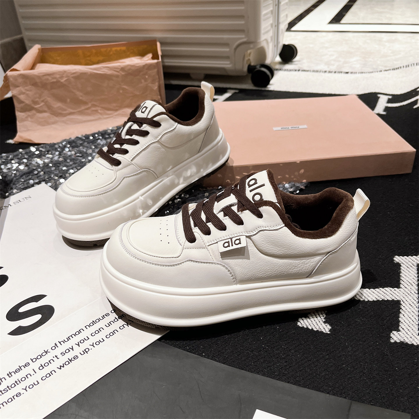 Hong Kong Genuine Leather Thick-Soled Height-Increasing Loafers for Women, 2025 Autumn and Winter Fleece-Lined Casual Sneakers, Versatile Board Shoes
