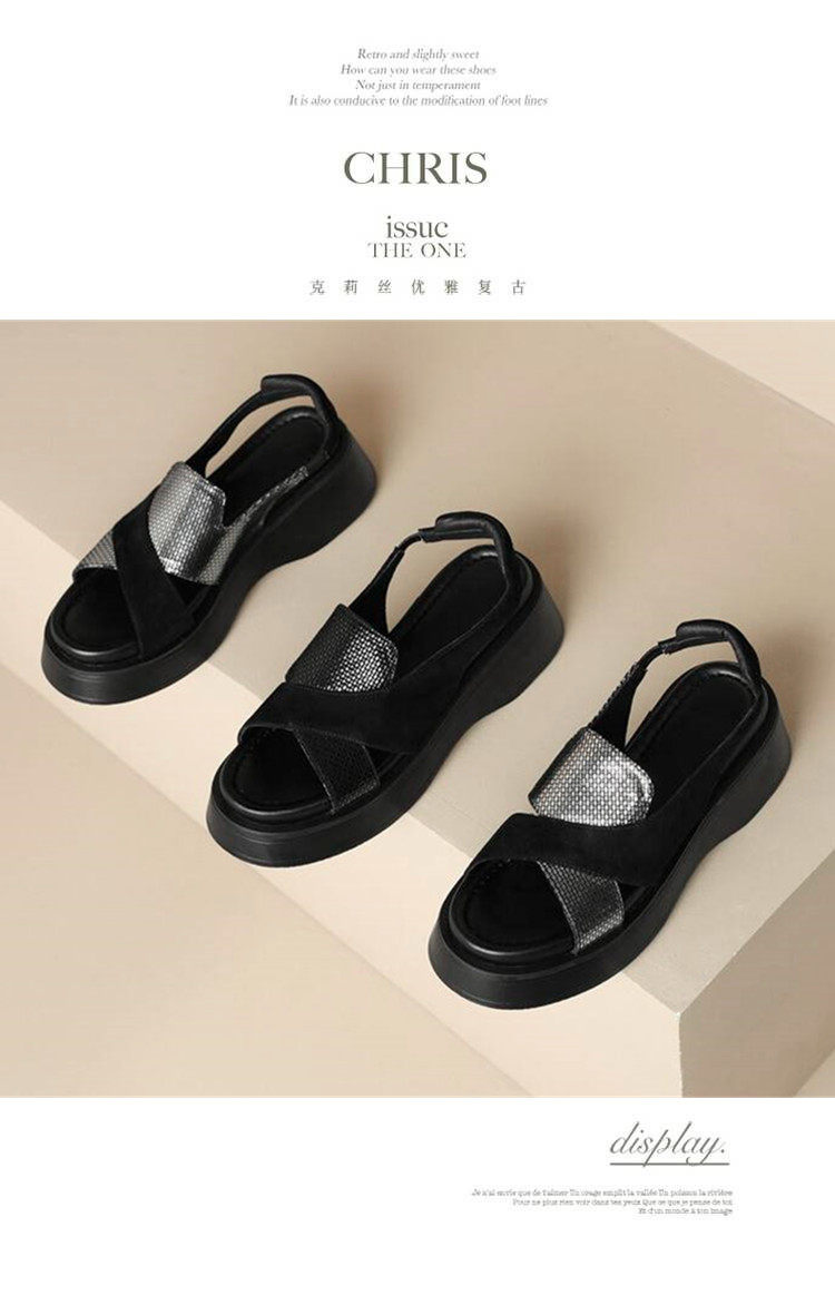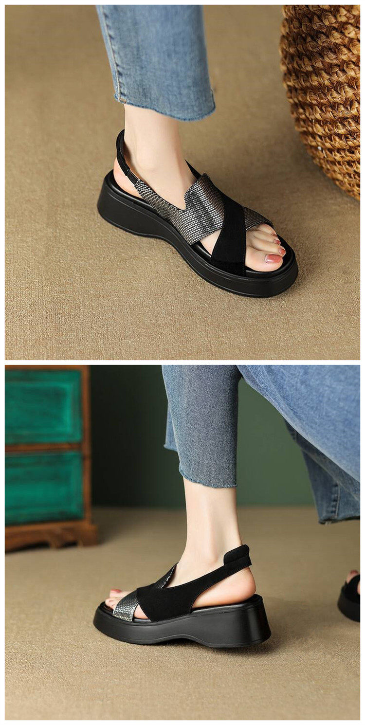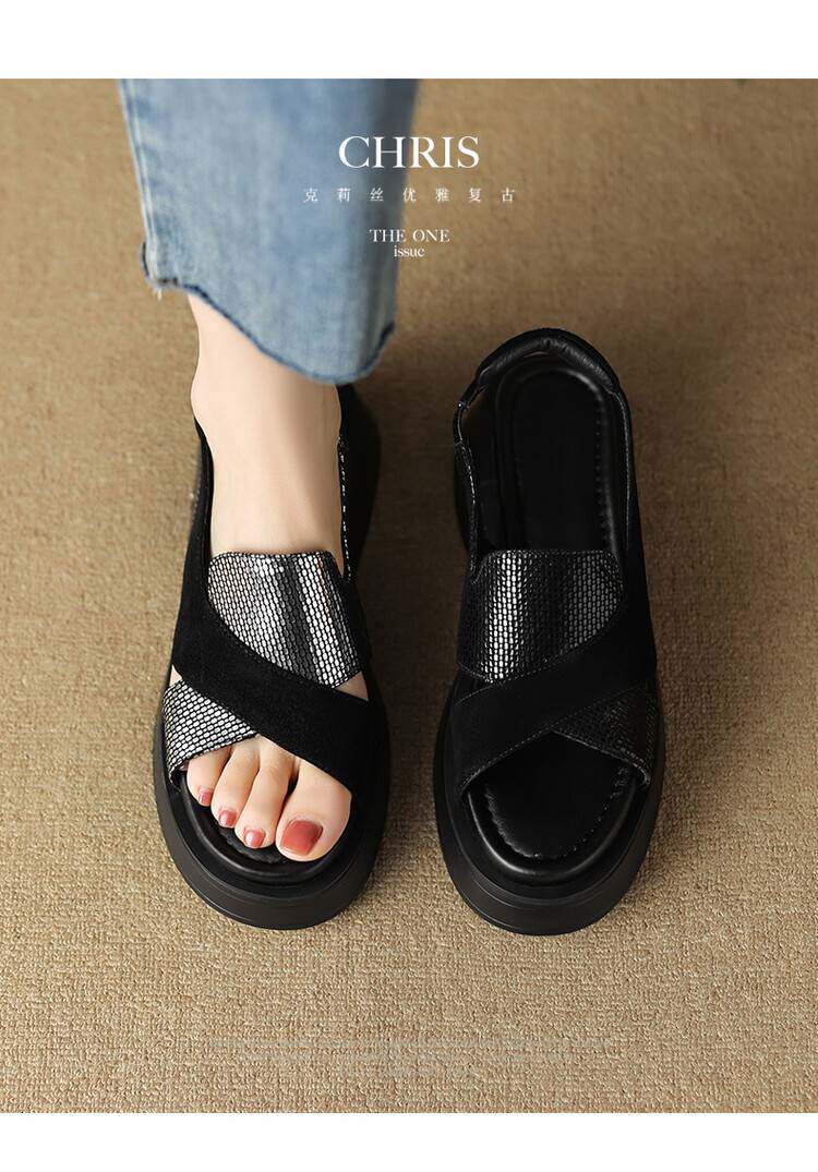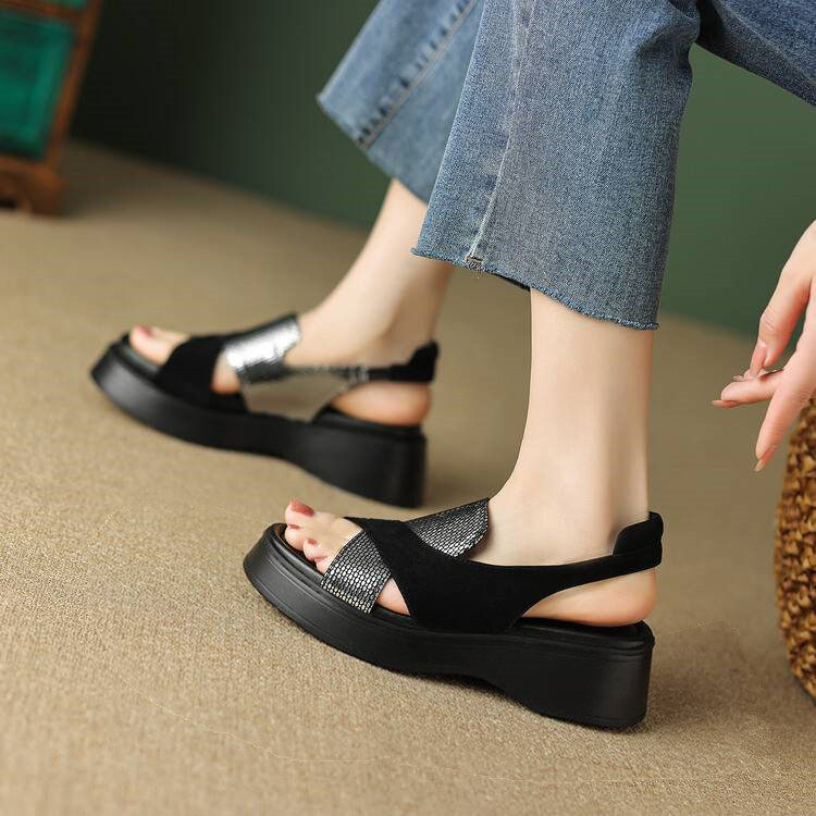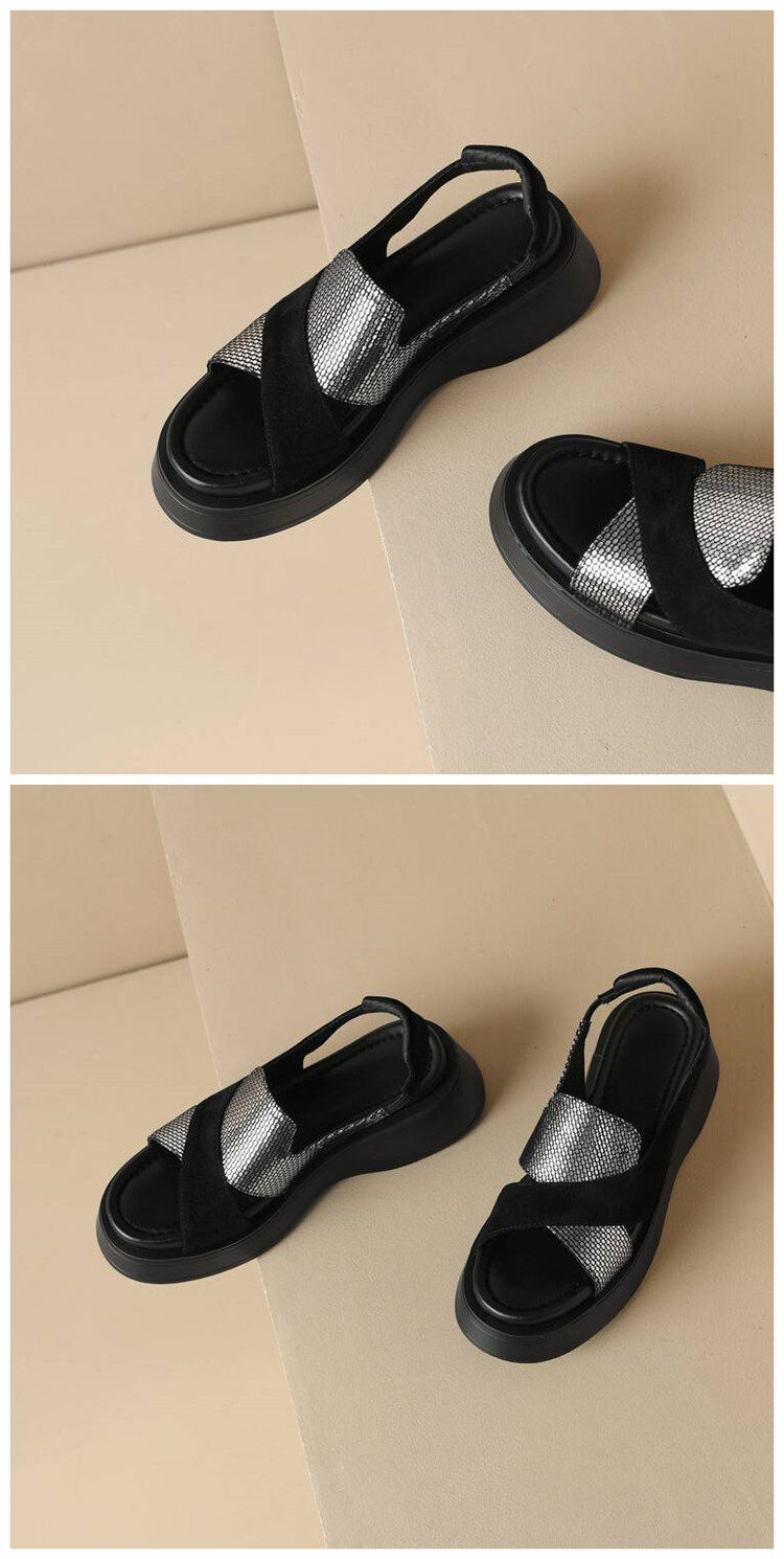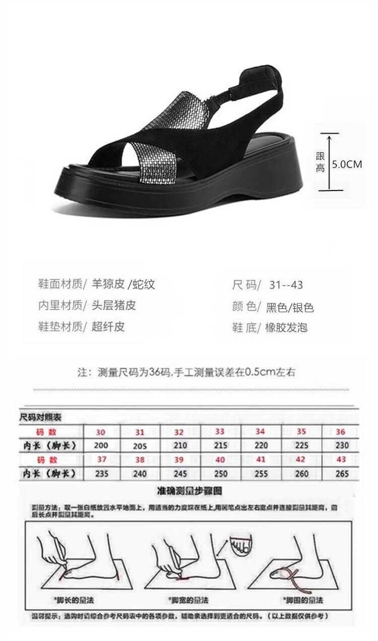 Platform Sandals for Women, Open-Toe, Silver, Thick-Soled, Small Size 31, Casual Color-Blocking, Flat-Soled, Large Size 43, Versatile Roman Peep-Toe Shoes