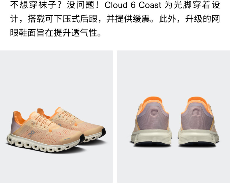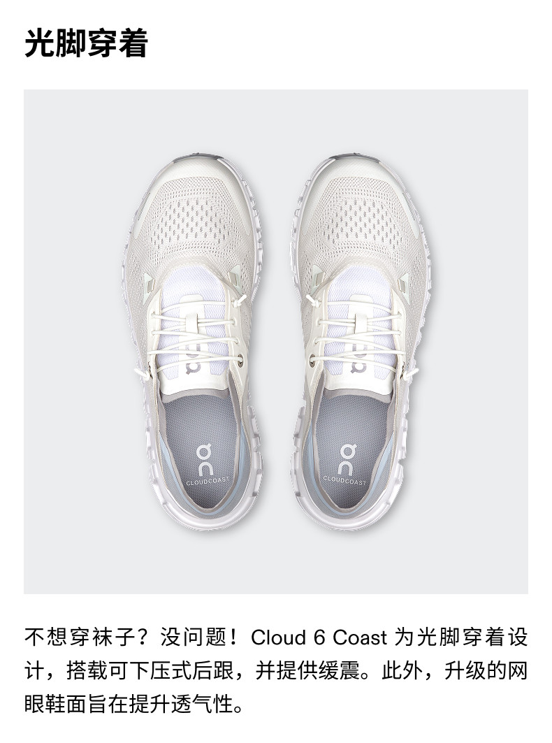 On Cloud 6 Coast Women's Casual Sneakers with Heel-Stomping Feature
