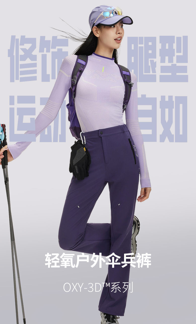 Playtop Outdoor Hiking Parachute Pants High-Waisted Trendy Wide-Leg Pants Mountaineering Wear-Resistant Water-Repellent Slimming Flared Pants
