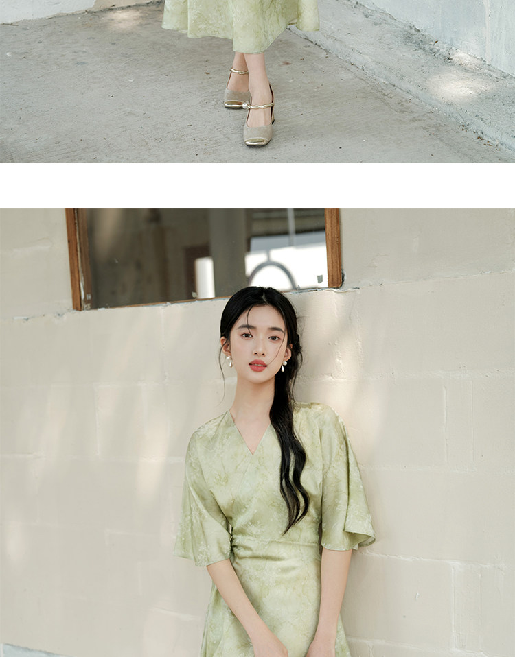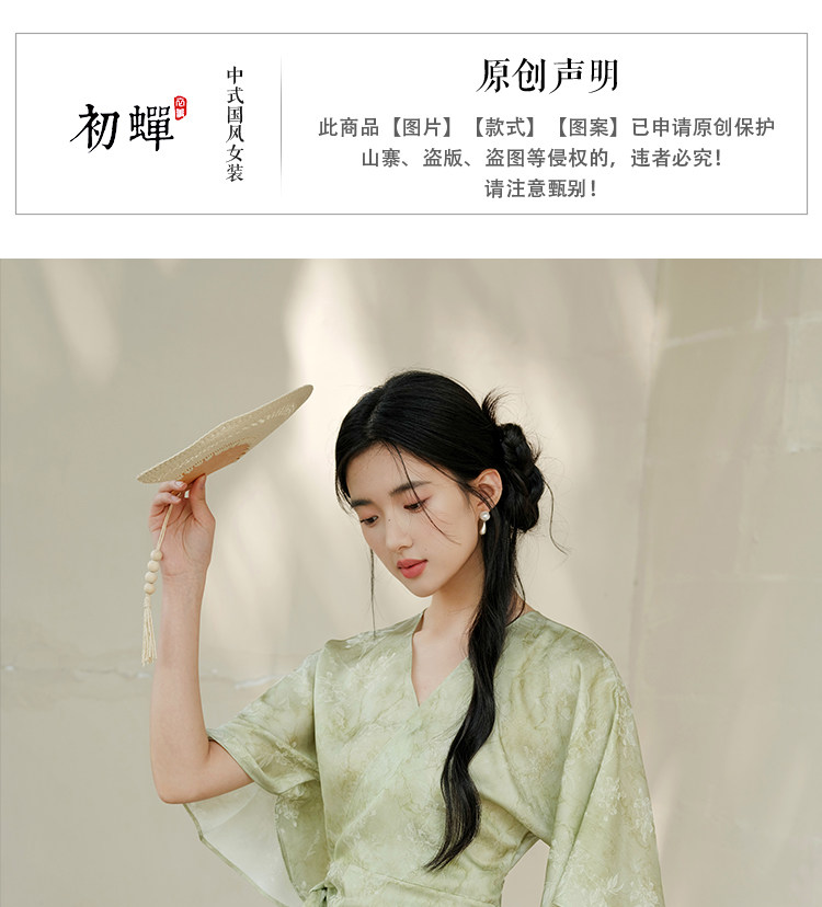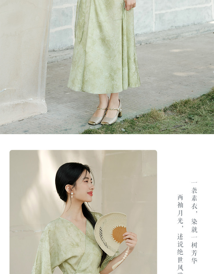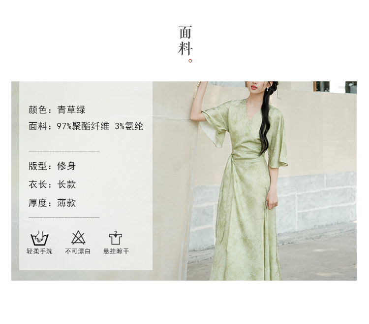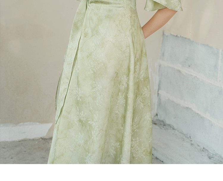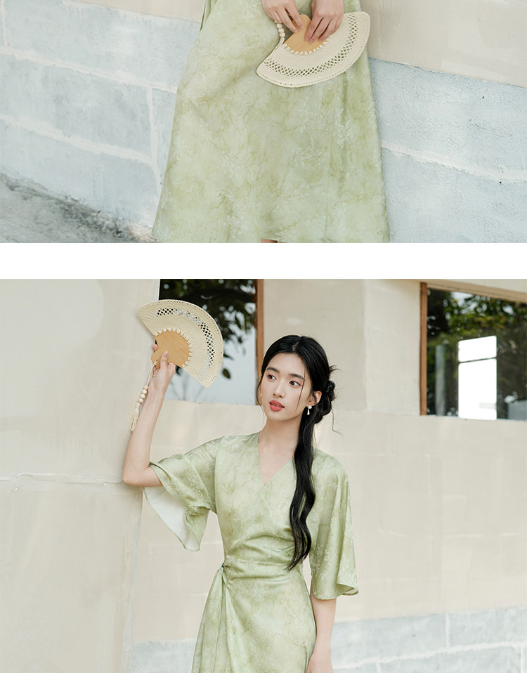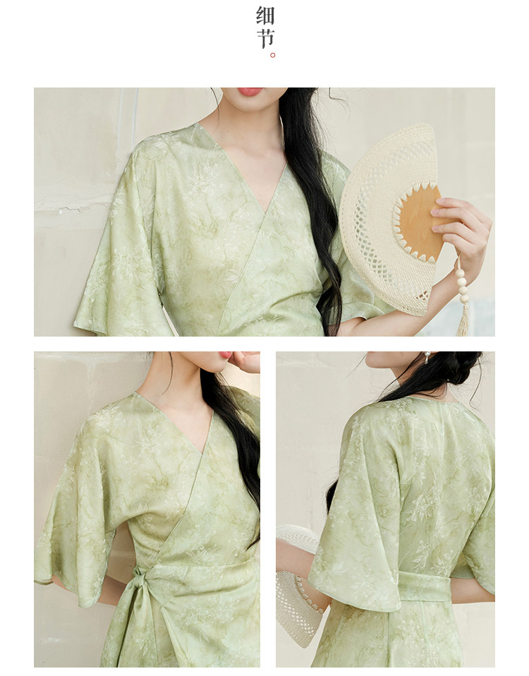 Chu Chan New Chinese Style Hanfu Dress for Women 2025 Summer Chinese Style Wide Sleeve Jacquard Green Elegant Tie-Up Long Dress
