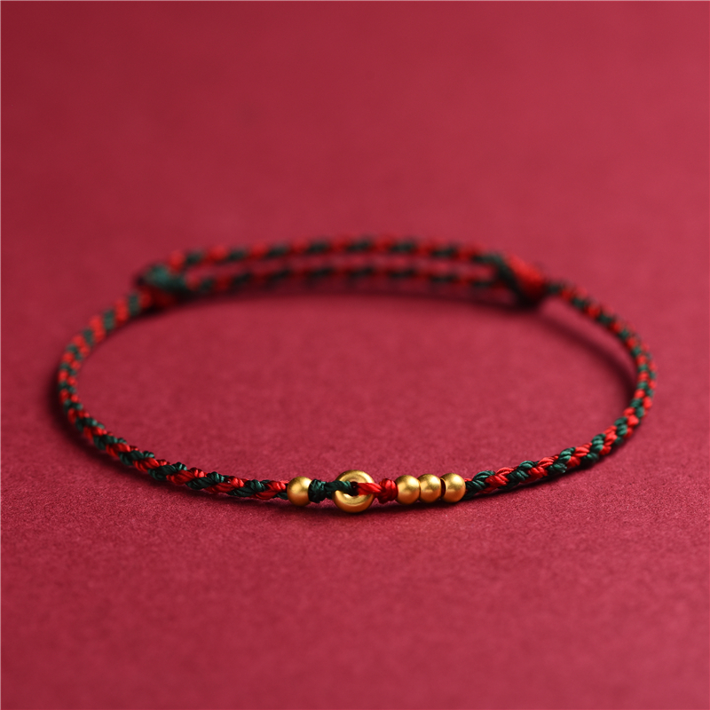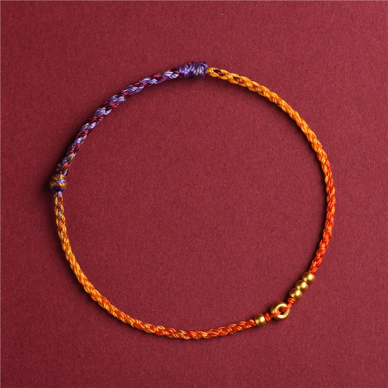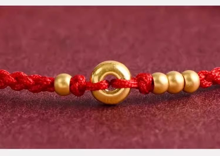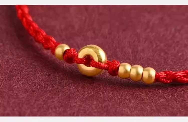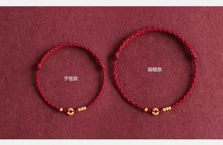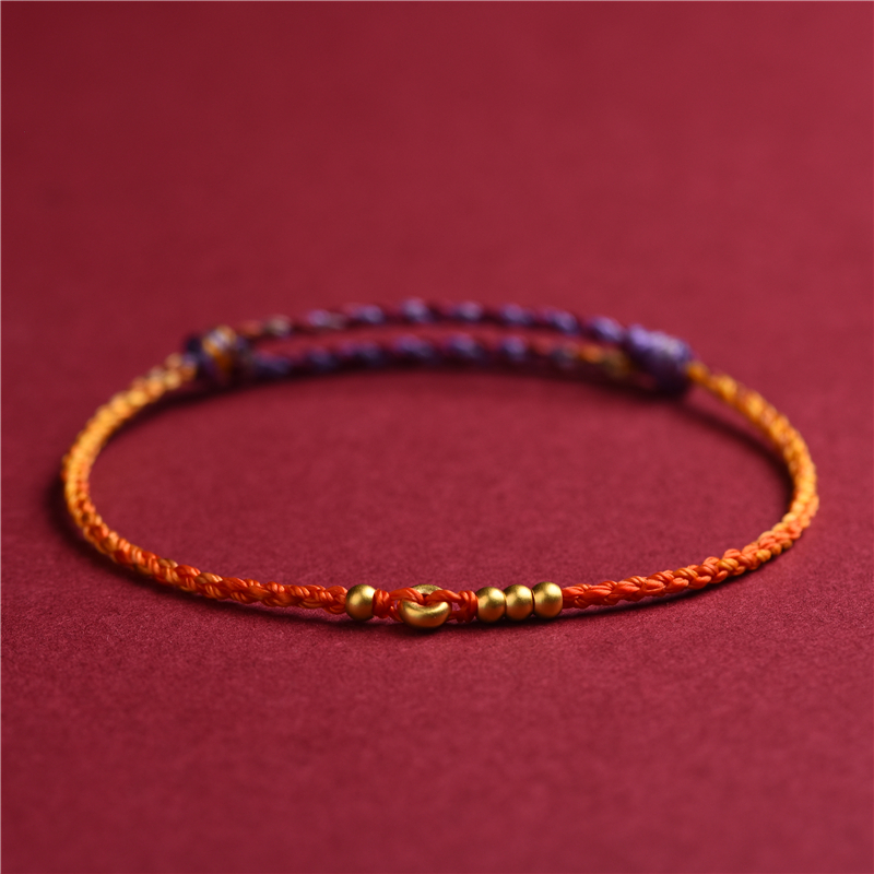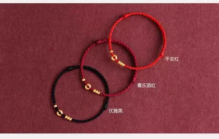 Nine Purple Fire 999 Pure Gold Lifetime Peace and Fortune Bead Zodiac Year Red String Bracelet Woven Bracelet for Men and Women