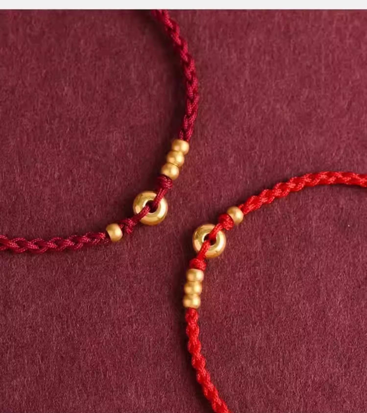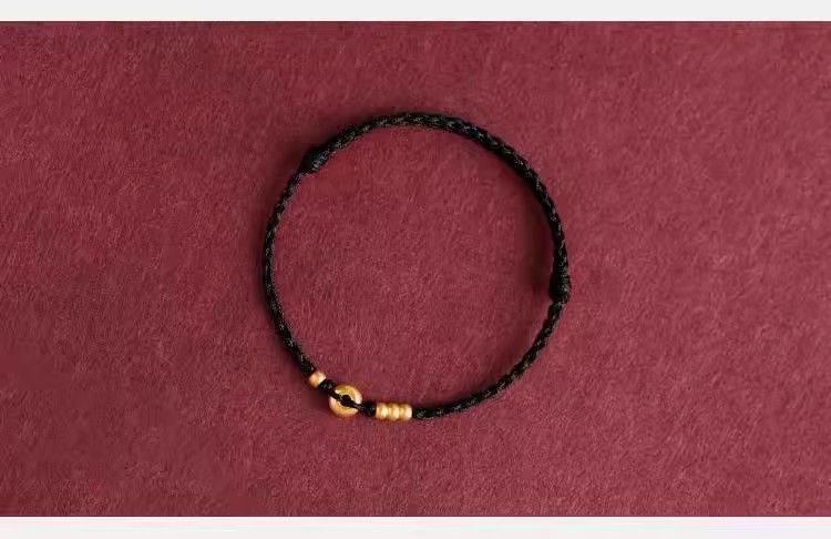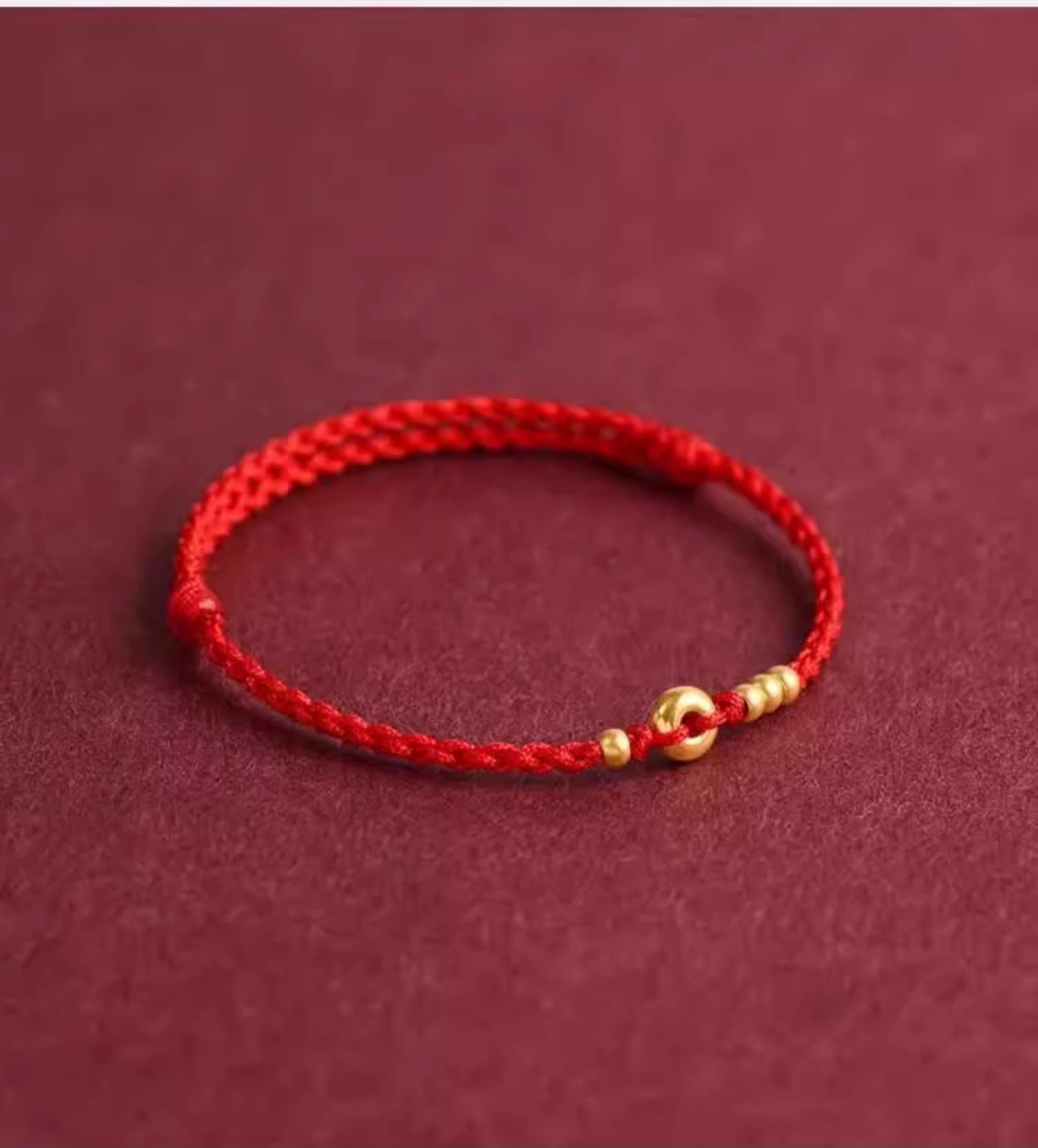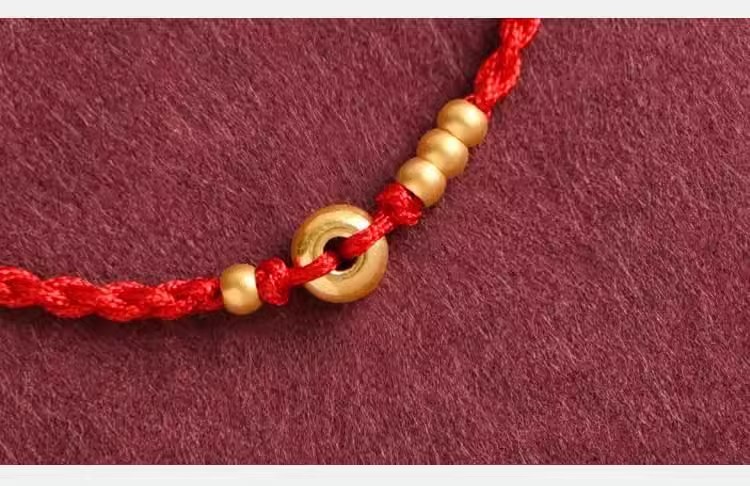 Nine Purple Fire 999 Pure Gold Lifetime Peace and Fortune Bead Zodiac Year Red String Bracelet Woven Bracelet for Men and Women