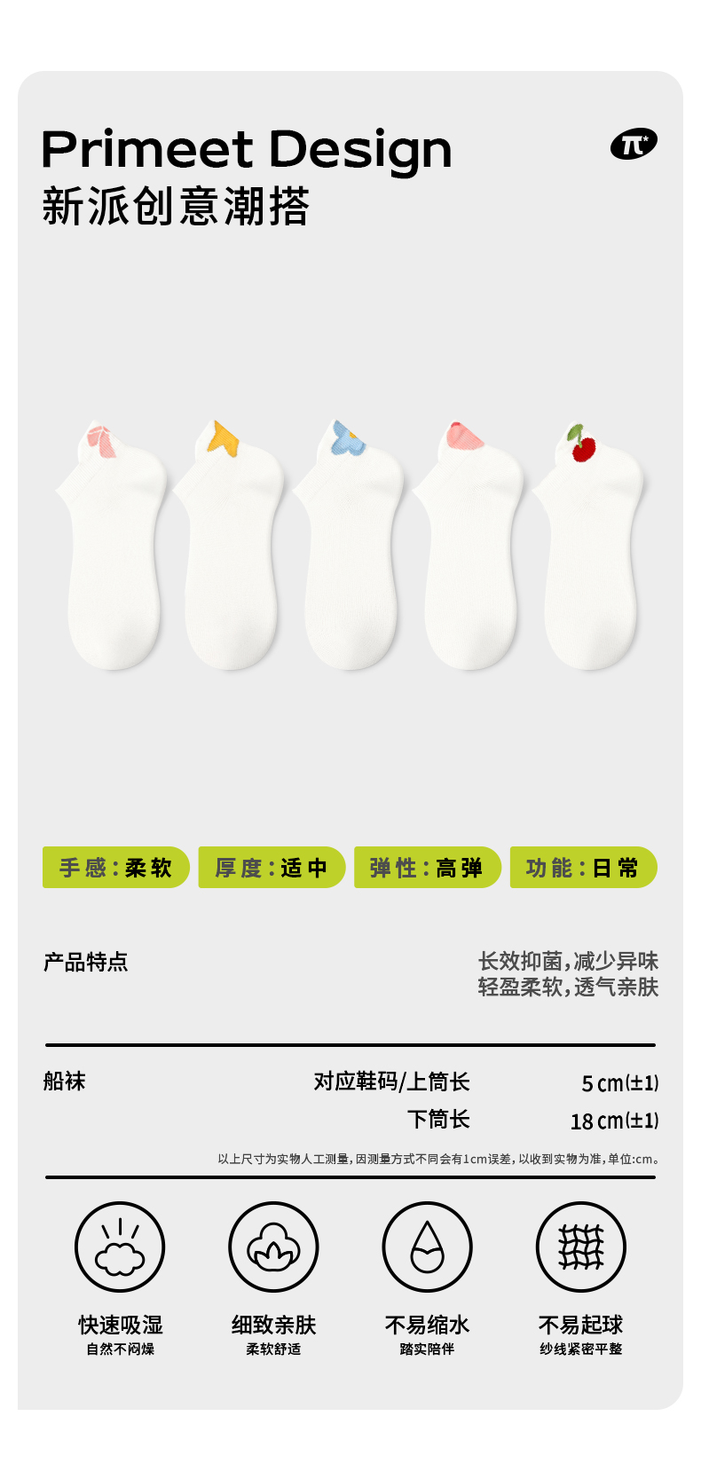 Paimi Women's No-Show Socks 2025 New Spring/Summer Thin Style Single Shoe Cotton Invisible Socks Cartoon Non-Slip White Girls' Short Socks