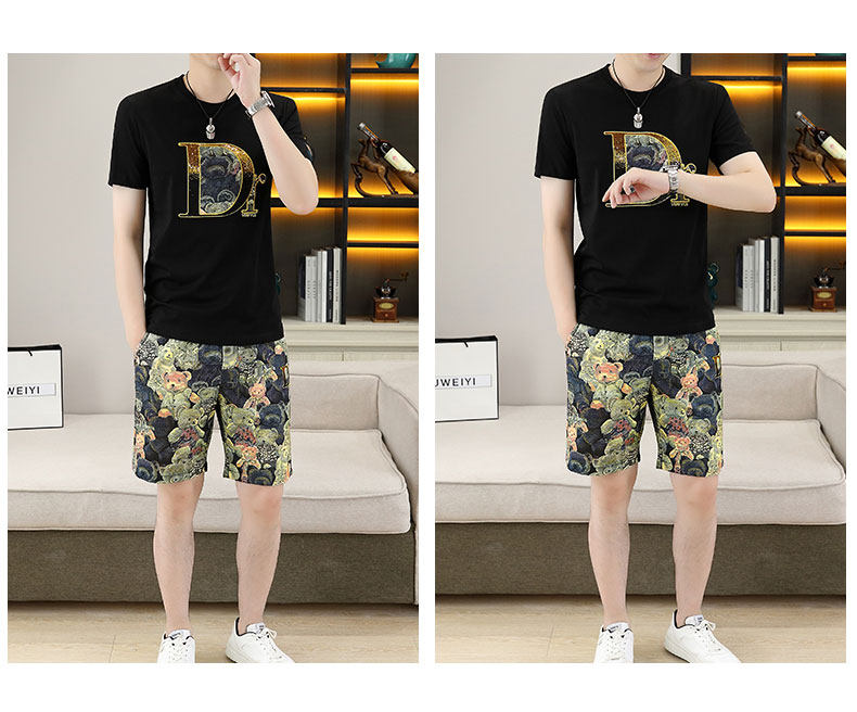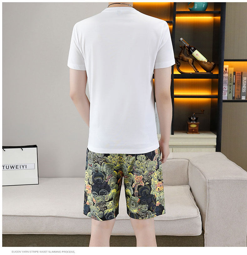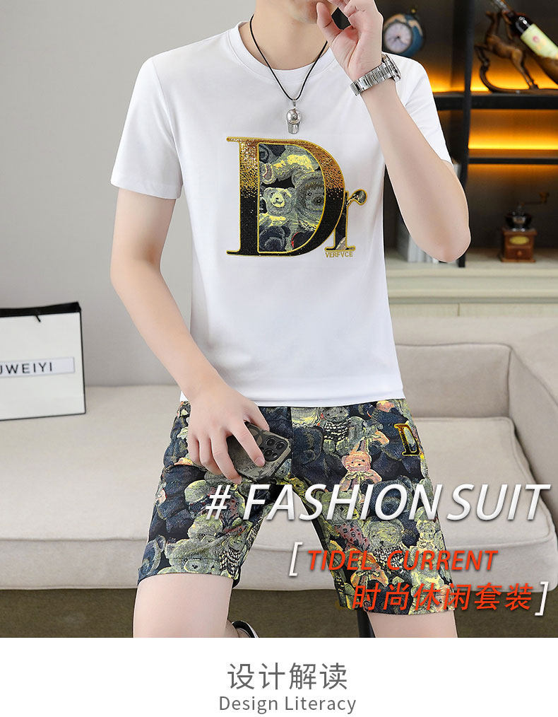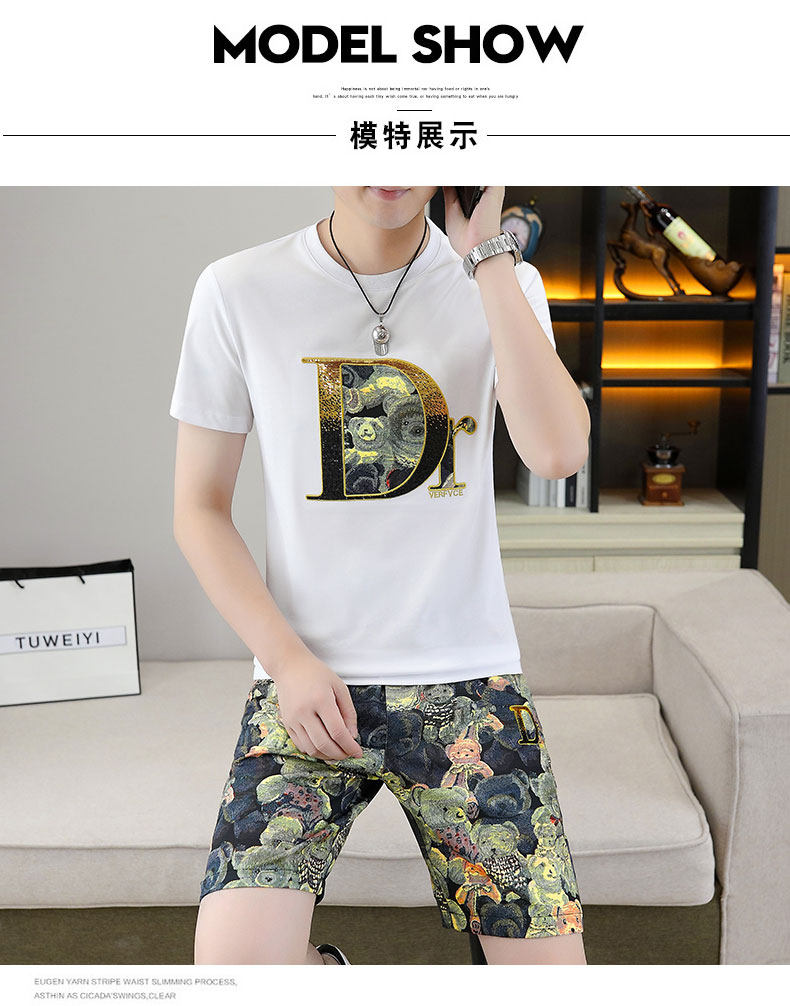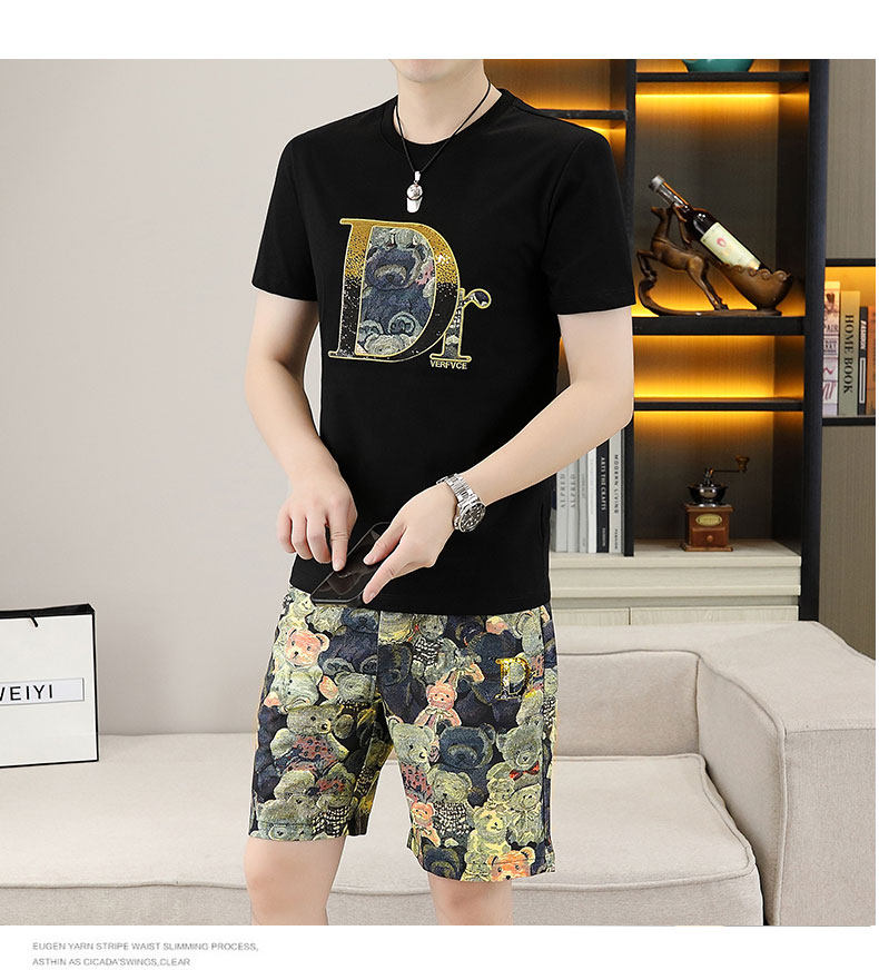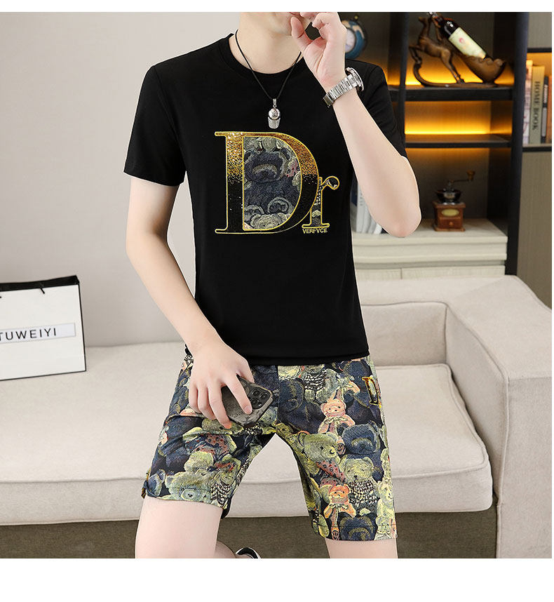 Playboy Ice Silk Suit for Men, New Summer Style Short-Sleeved Shorts, a Set of Stylish Thin Trendy Men's Clothing