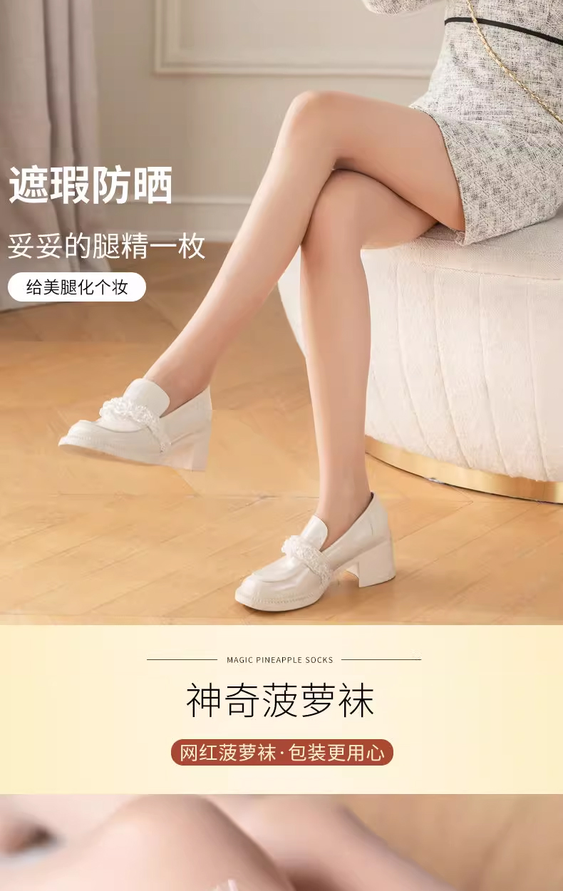 Stockings Women's Ultra-thin Anti-snag Silk Pineapple Socks Spring & Fall Fleshy Skin Tights Summer Black Silk Tight Pantyhose