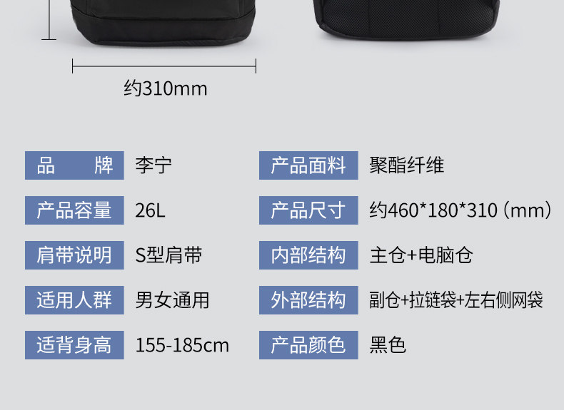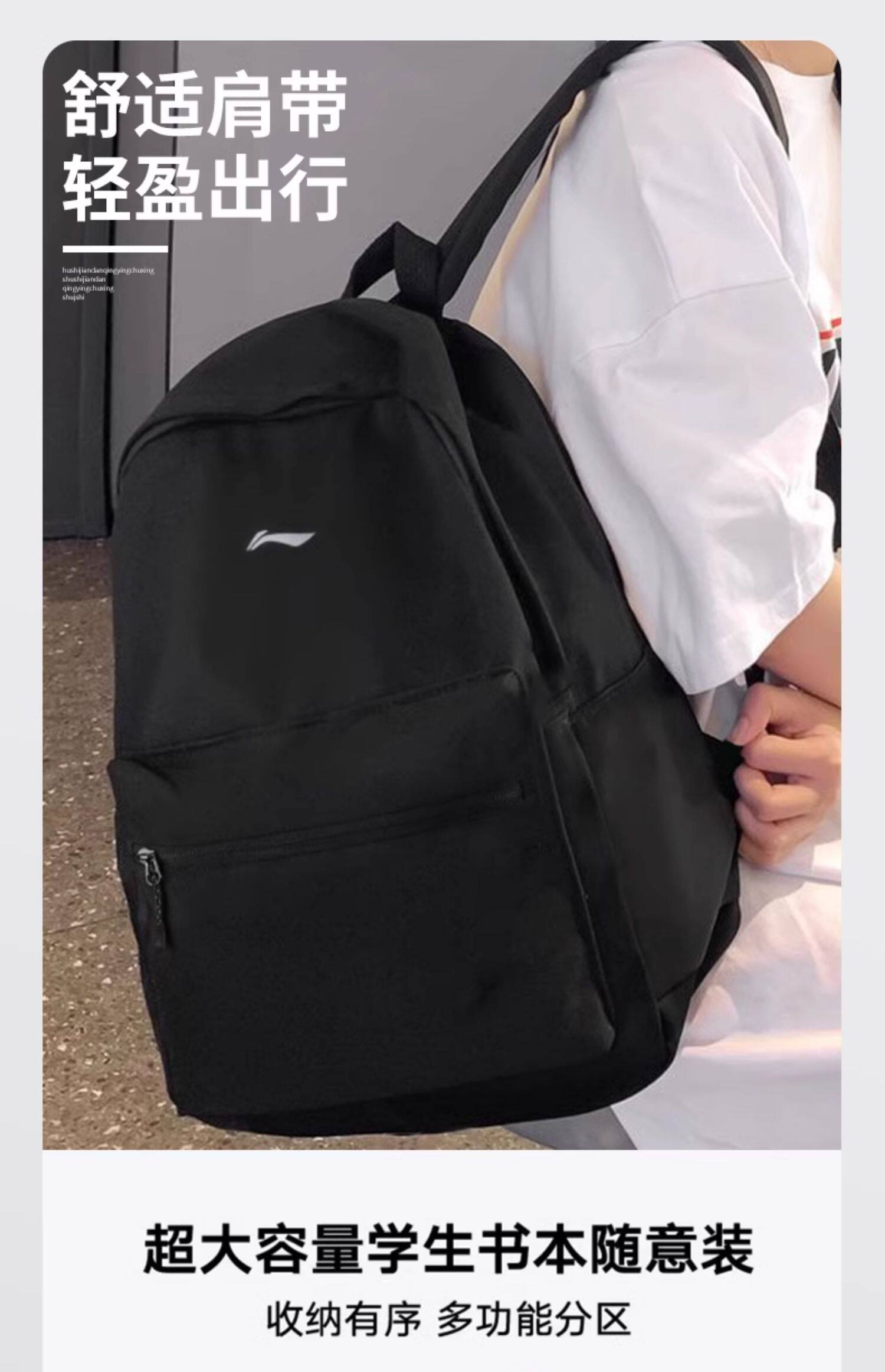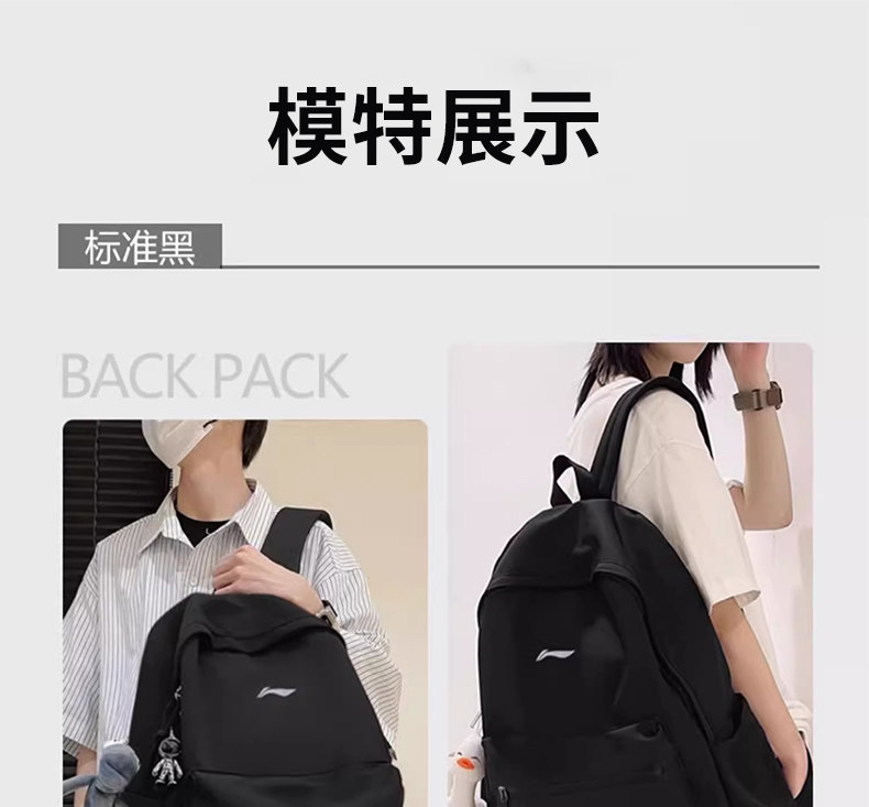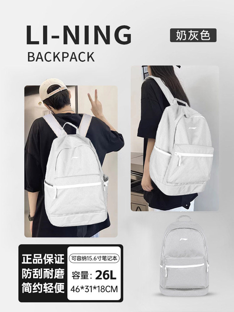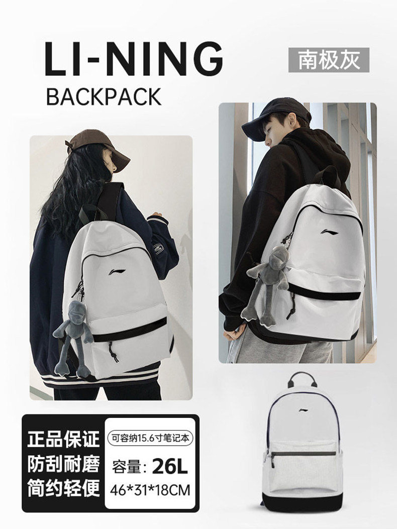 Li Ning Backpack for Men, Junior High and High School Schoolbag, 2026 New Model, Large Capacity Computer Backpack, College Student Women's Travel Bag