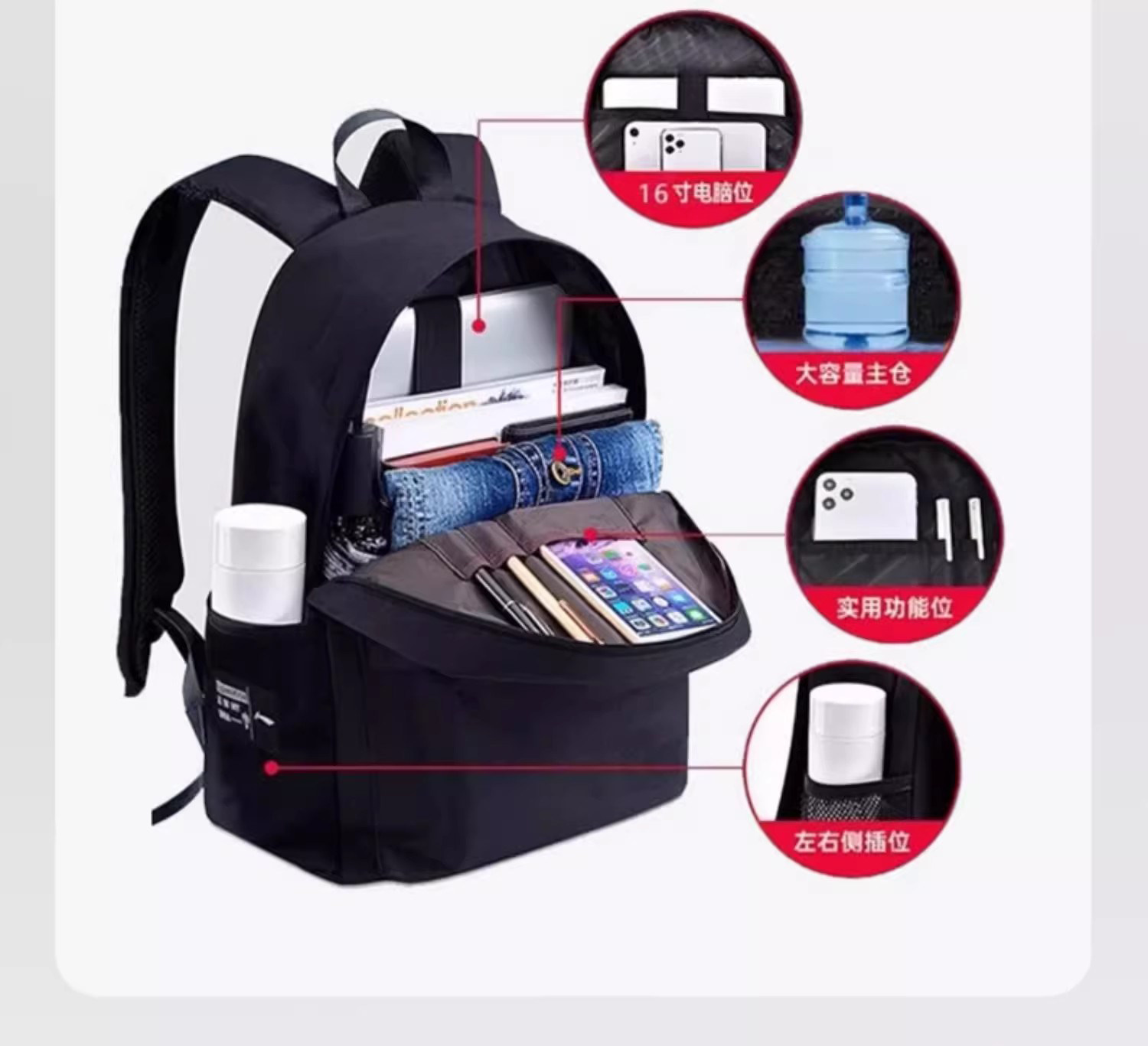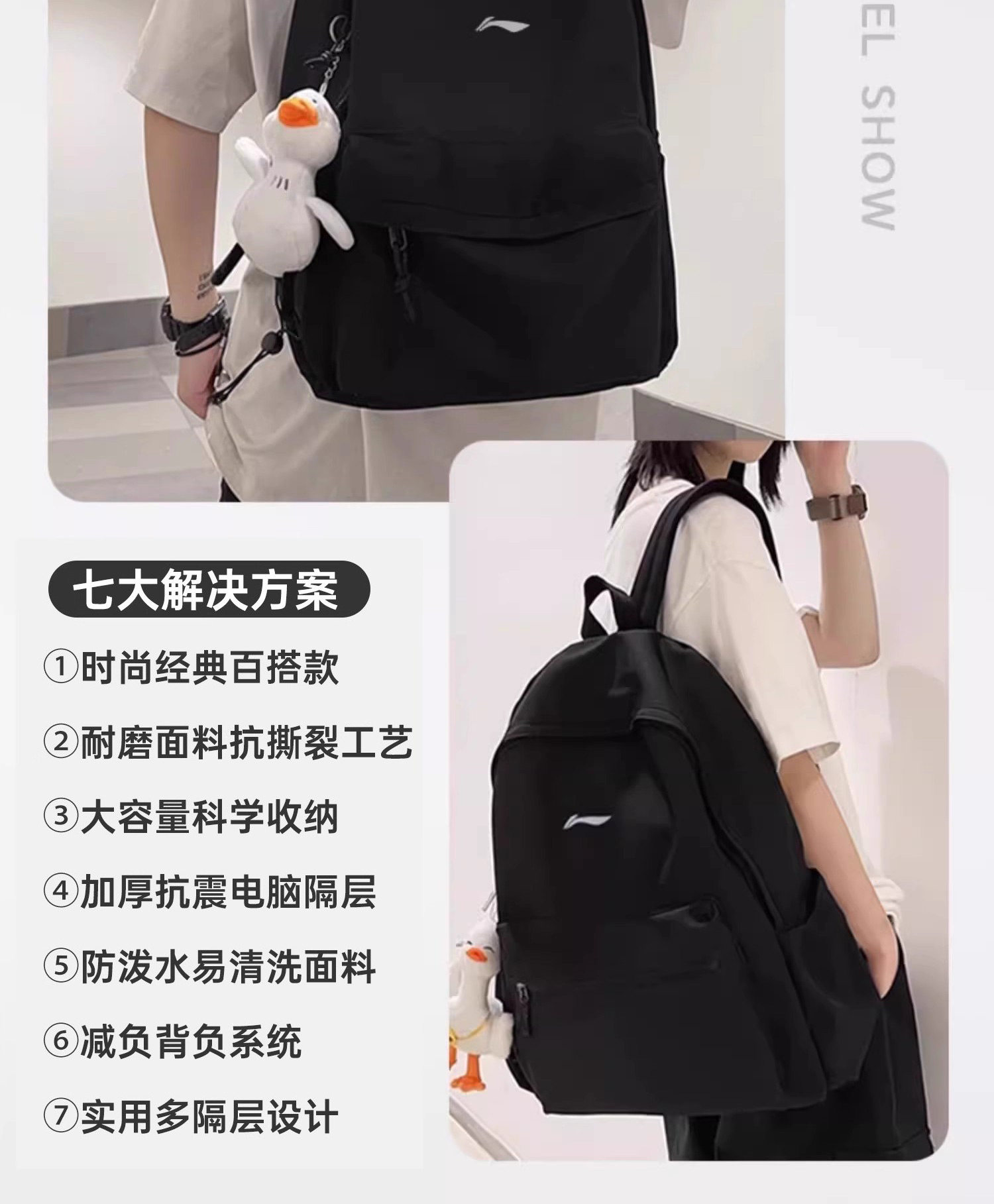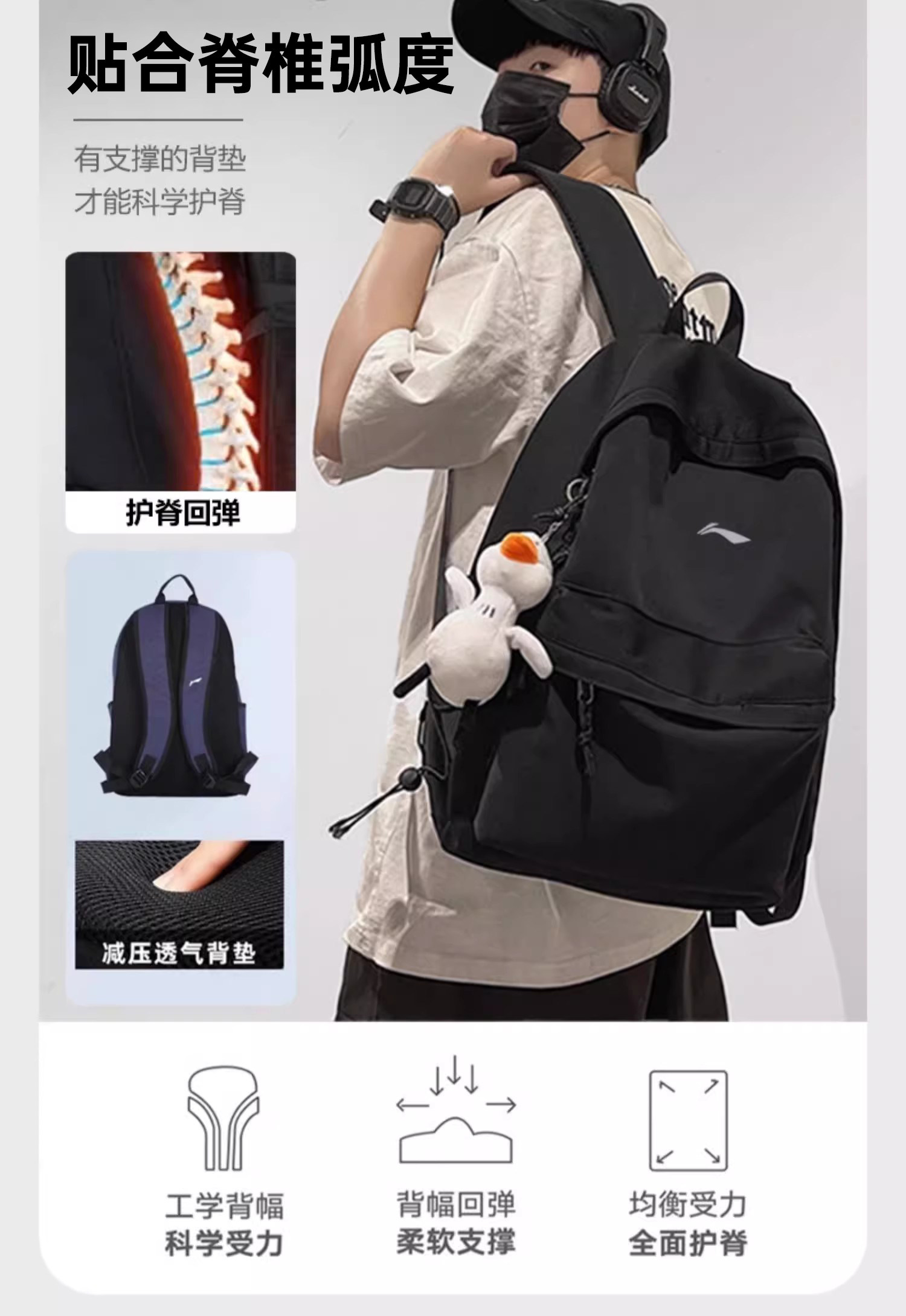 Li Ning Backpack for Men, Junior High and High School Schoolbag, 2026 New Model, Large Capacity Computer Backpack, College Student Women's Travel Bag