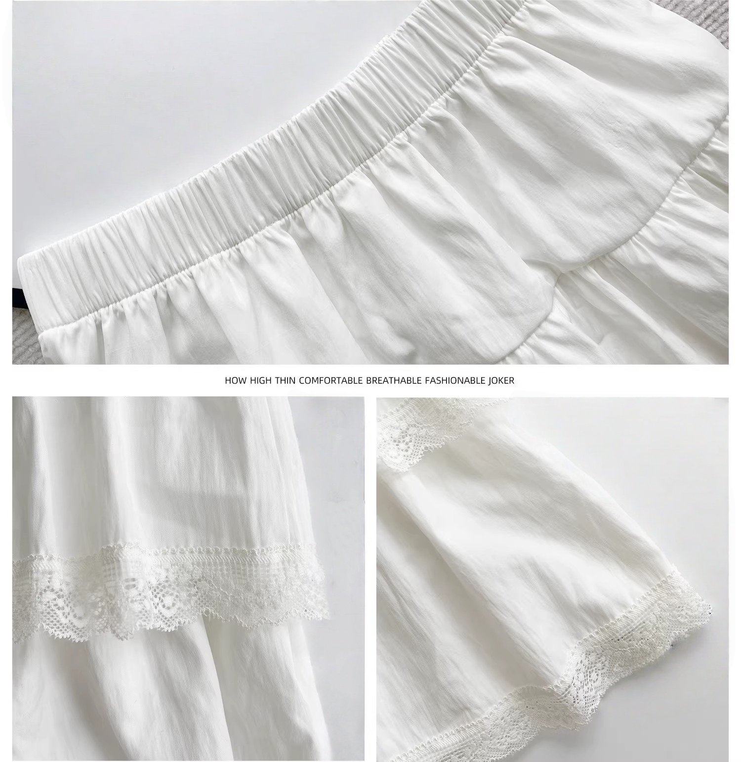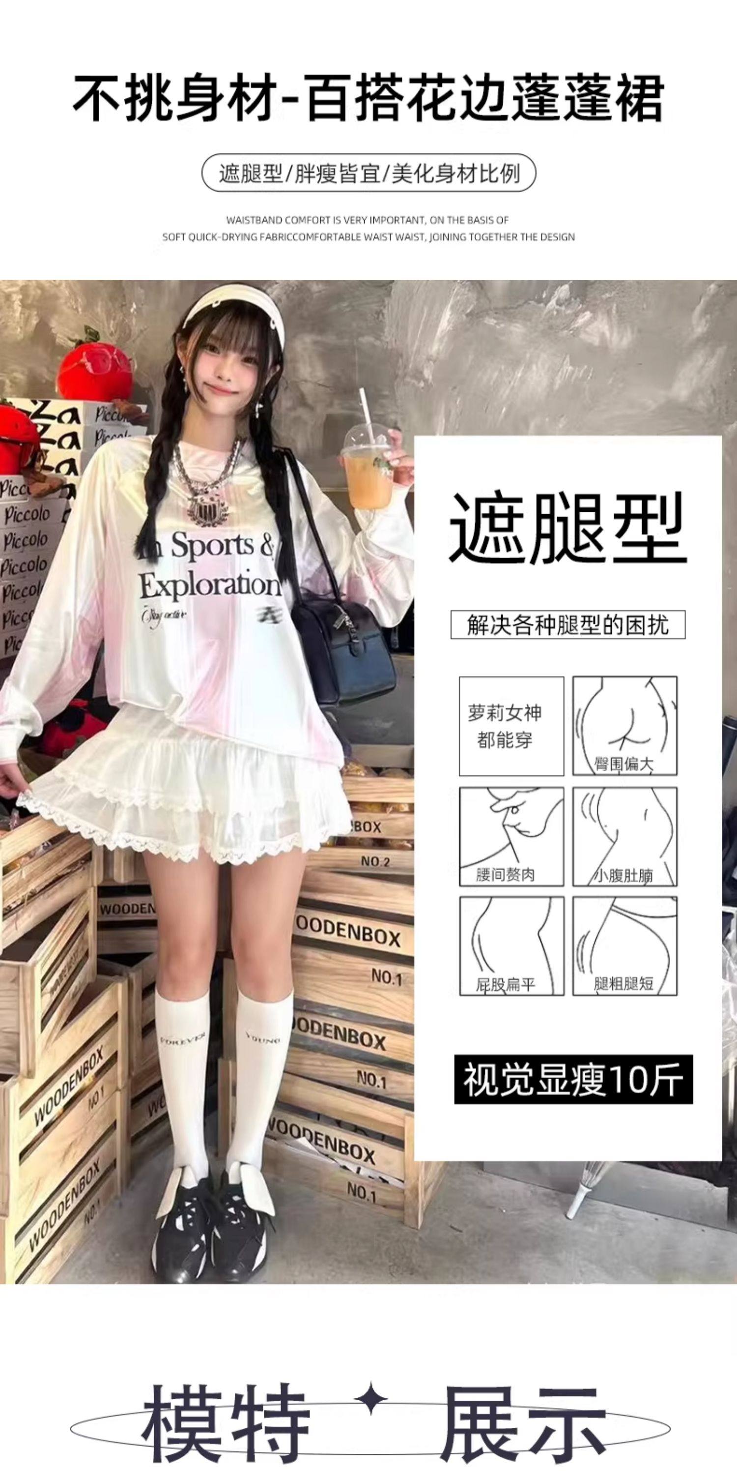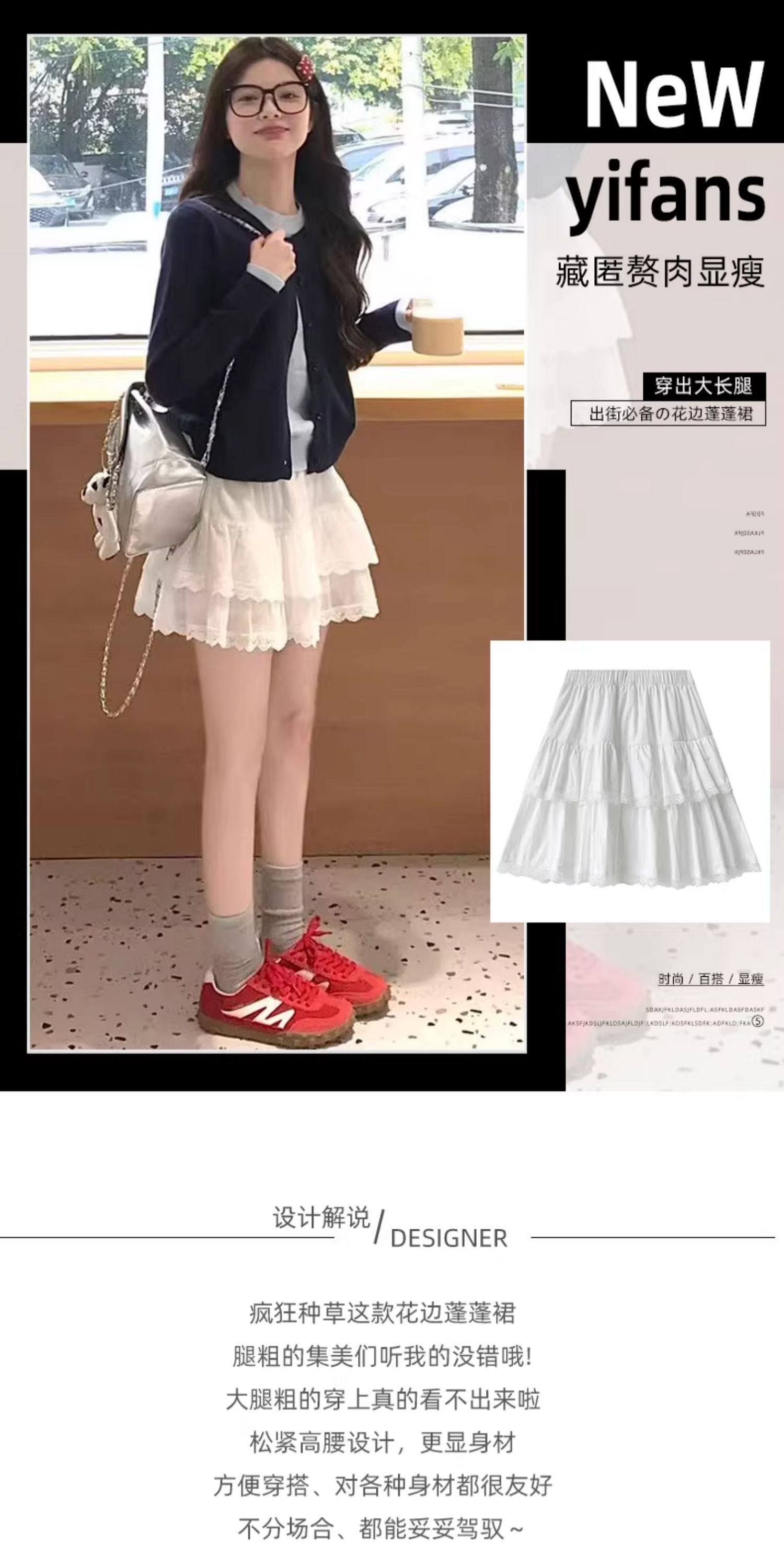 White Lace Cake Skirt for Women, Summer Sweet French High-Waisted Slimming Lace A-Line Ballet Puffy Skirt