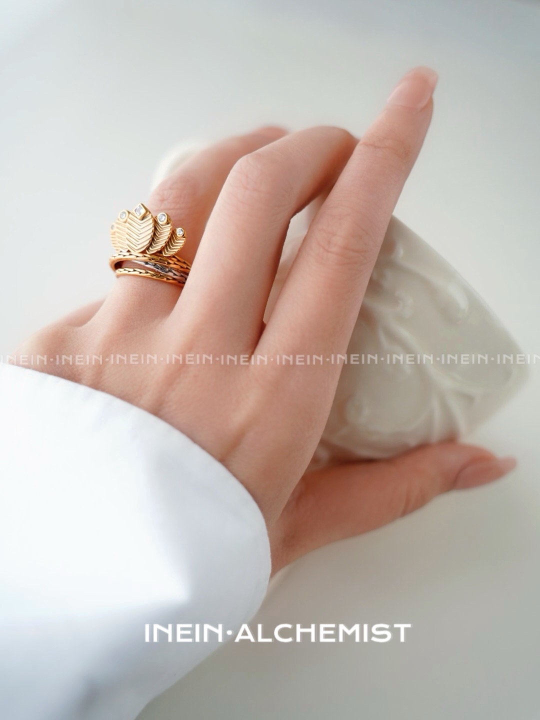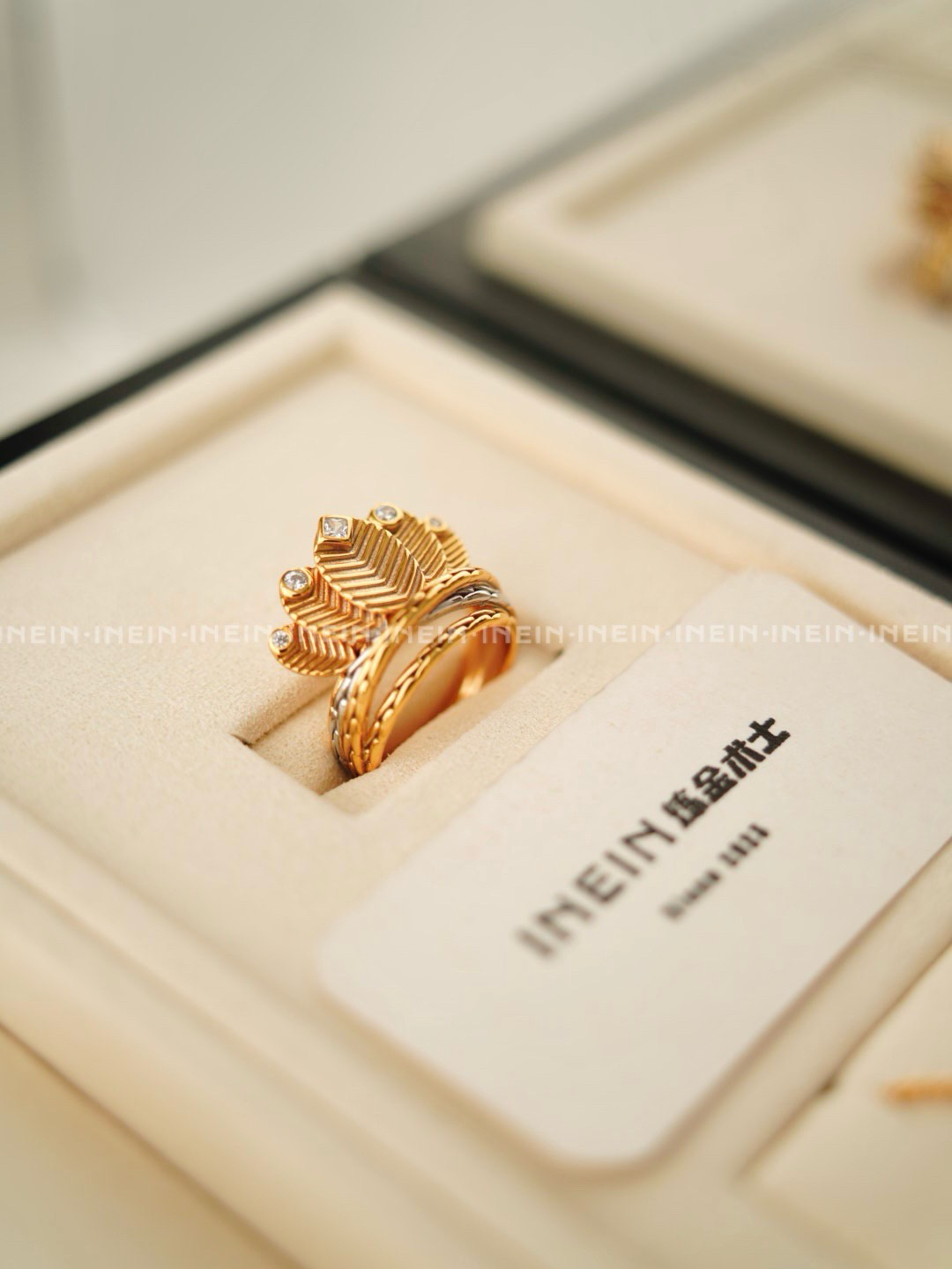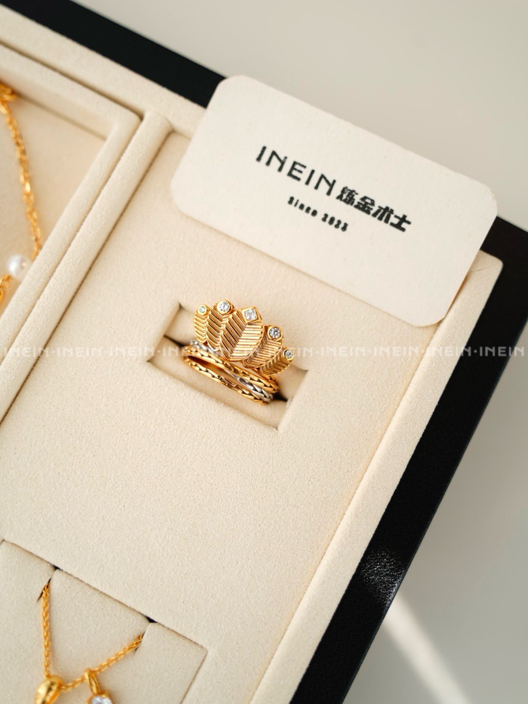 Inein Alchemist French Accessible Luxury Indian Feather All-Over Ag925 Sterling Silver Designer Ring New Style