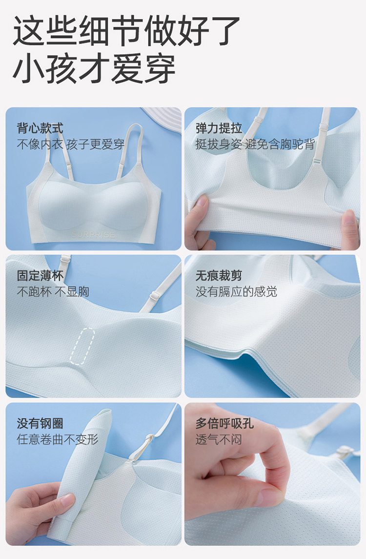 Tingmei Junior High School Students' Developmental Period Underwear for Girls in Stage Two and Three, Summer Thin Breathable Shock-Proof Bra for High School Students