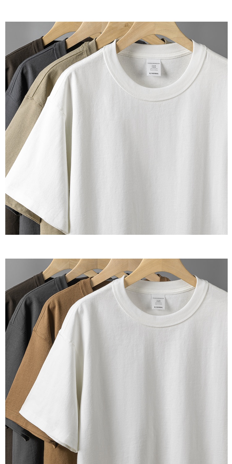 Excellent Texture! Heavyweight 400g Pure Cotton Comfortable and Skin-Friendly Short-Sleeve T-Shirt with Triple Stitching, Loose Casual Sports Top