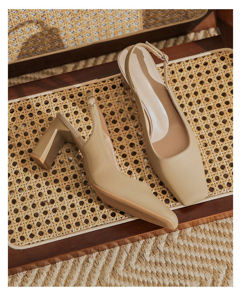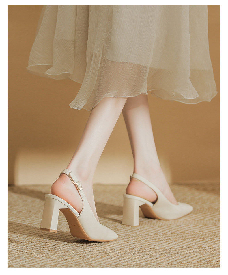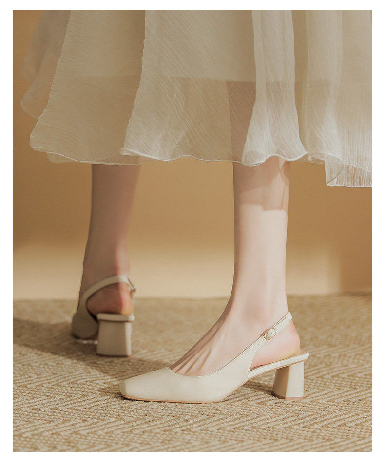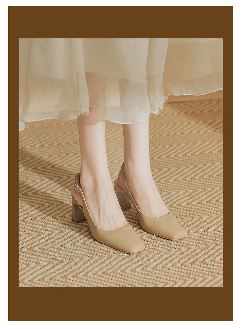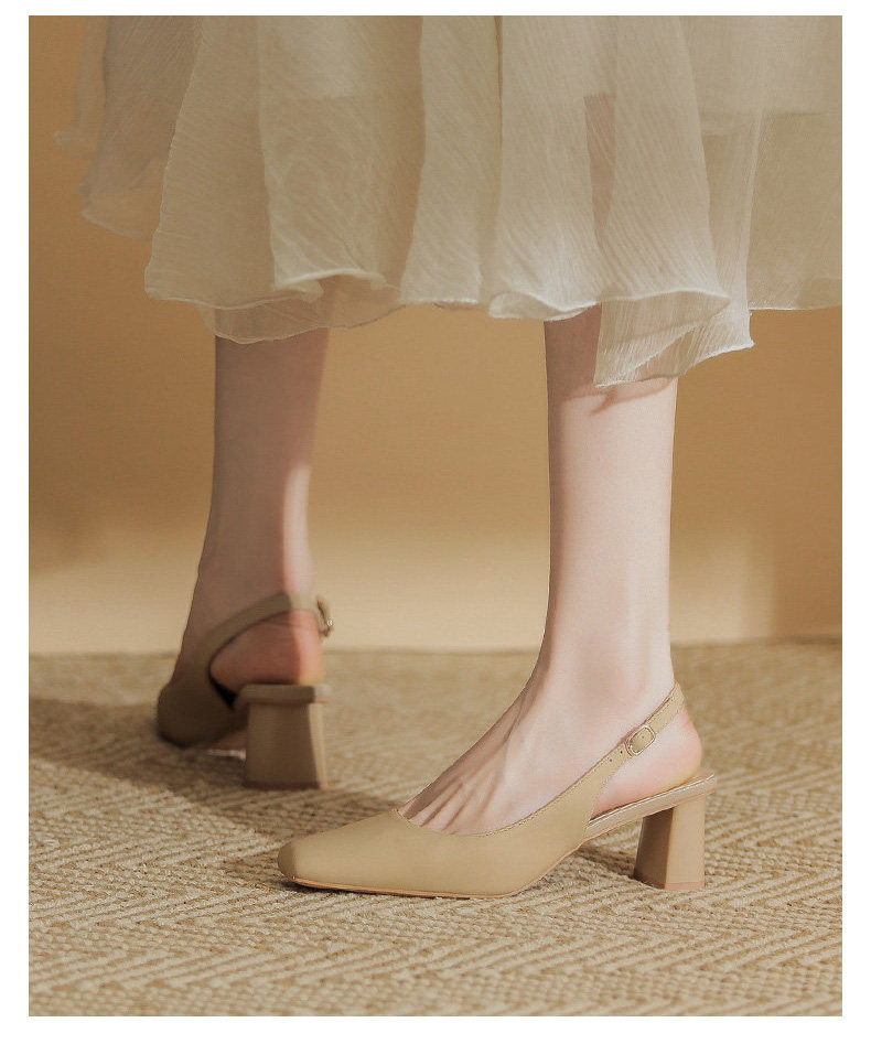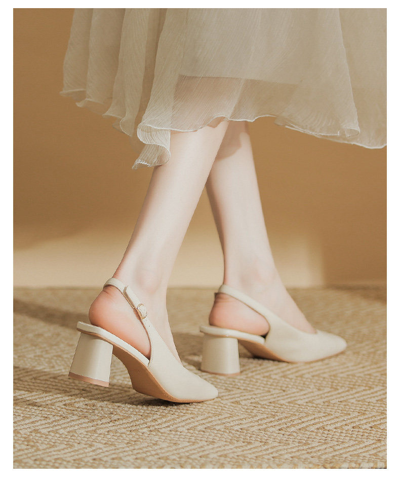 Hong Kong Niche Design High Heels for Women 2026 Spring and Summer New Style Elegant Simple Backless Shallow Mouth Chunky Heel Single Shoes Sandals