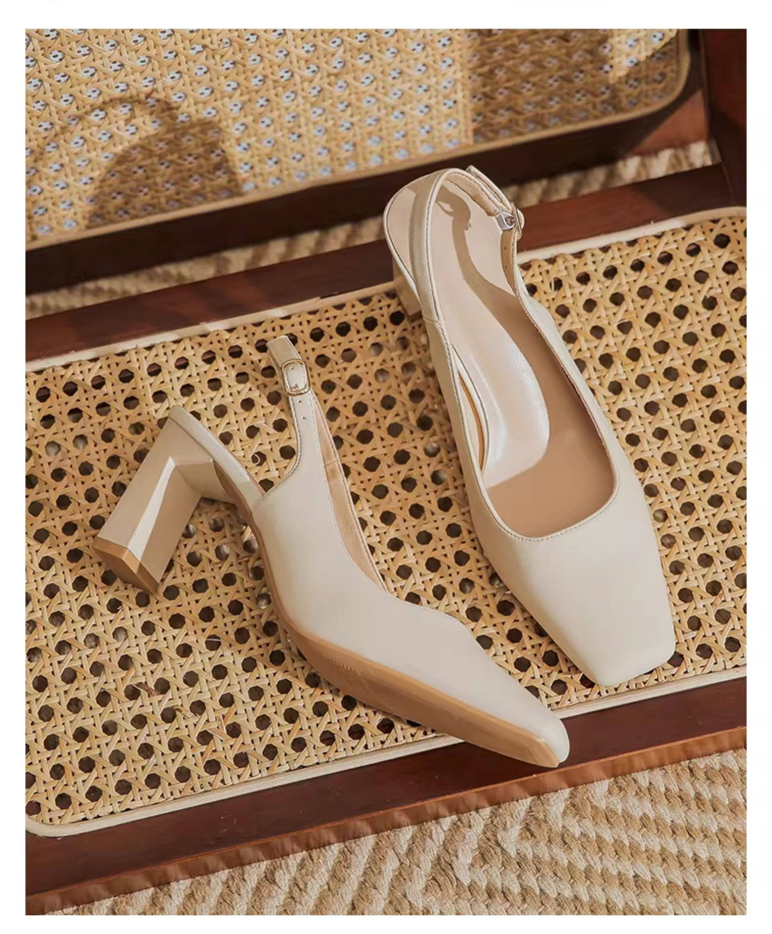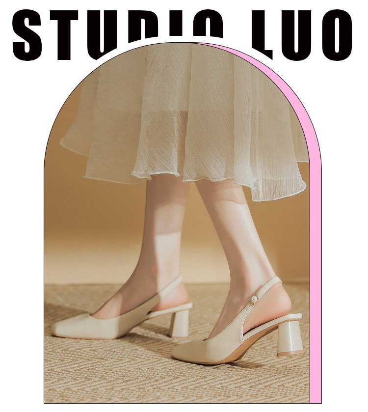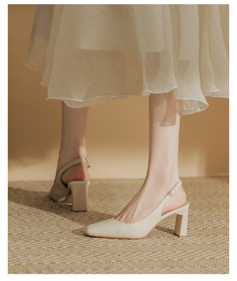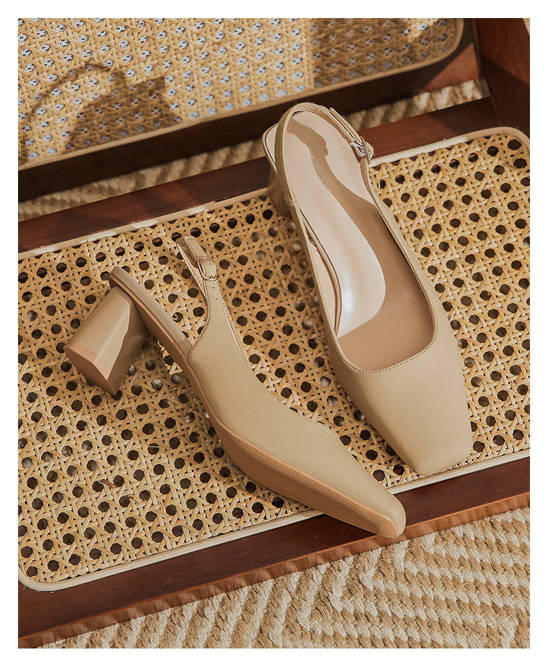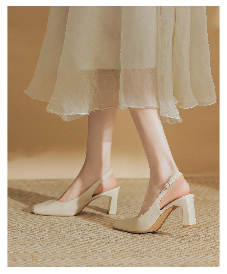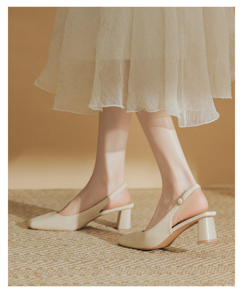 Hong Kong Niche Design High Heels for Women 2026 Spring and Summer New Style Elegant Simple Backless Shallow Mouth Chunky Heel Single Shoes Sandals