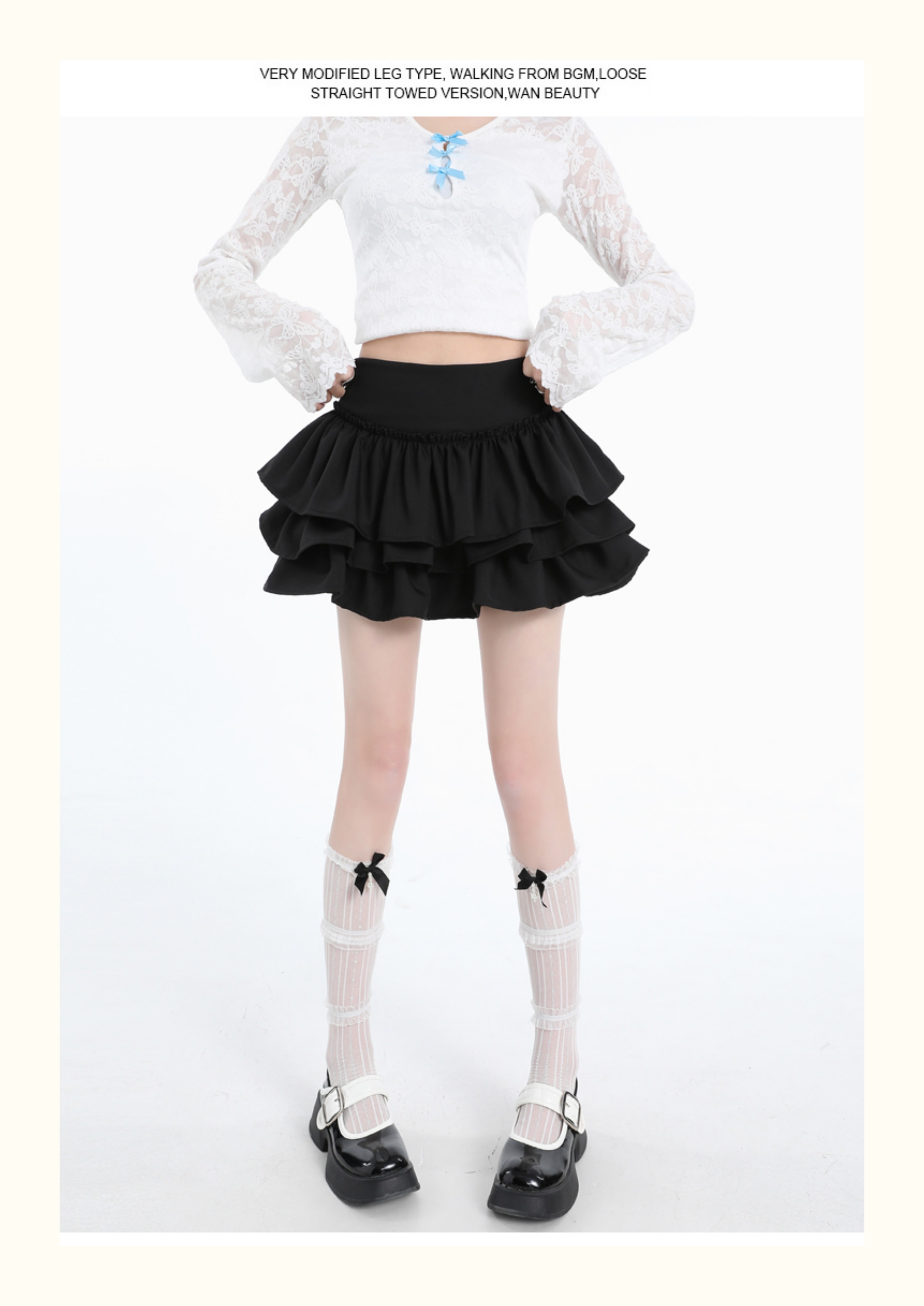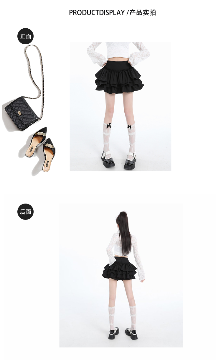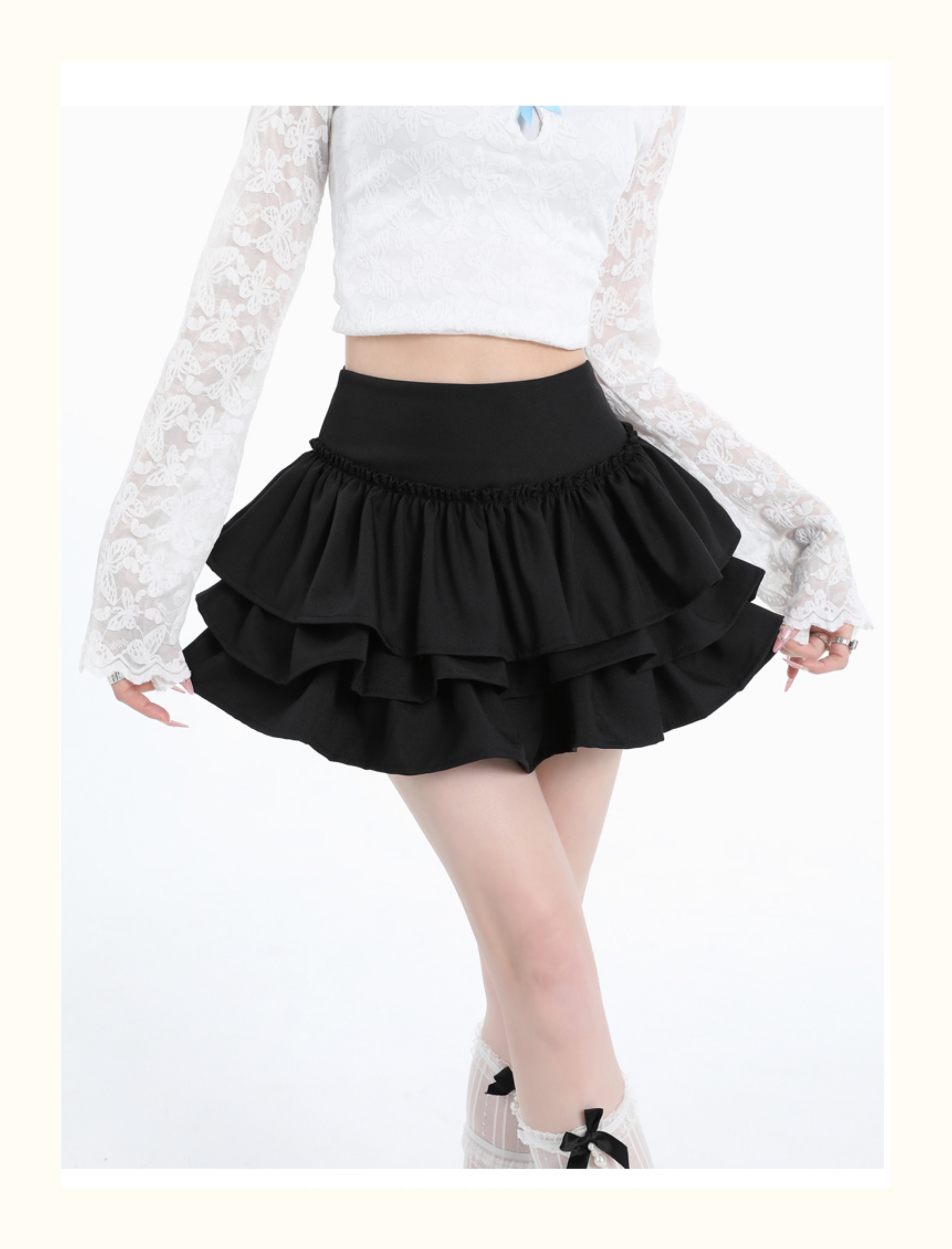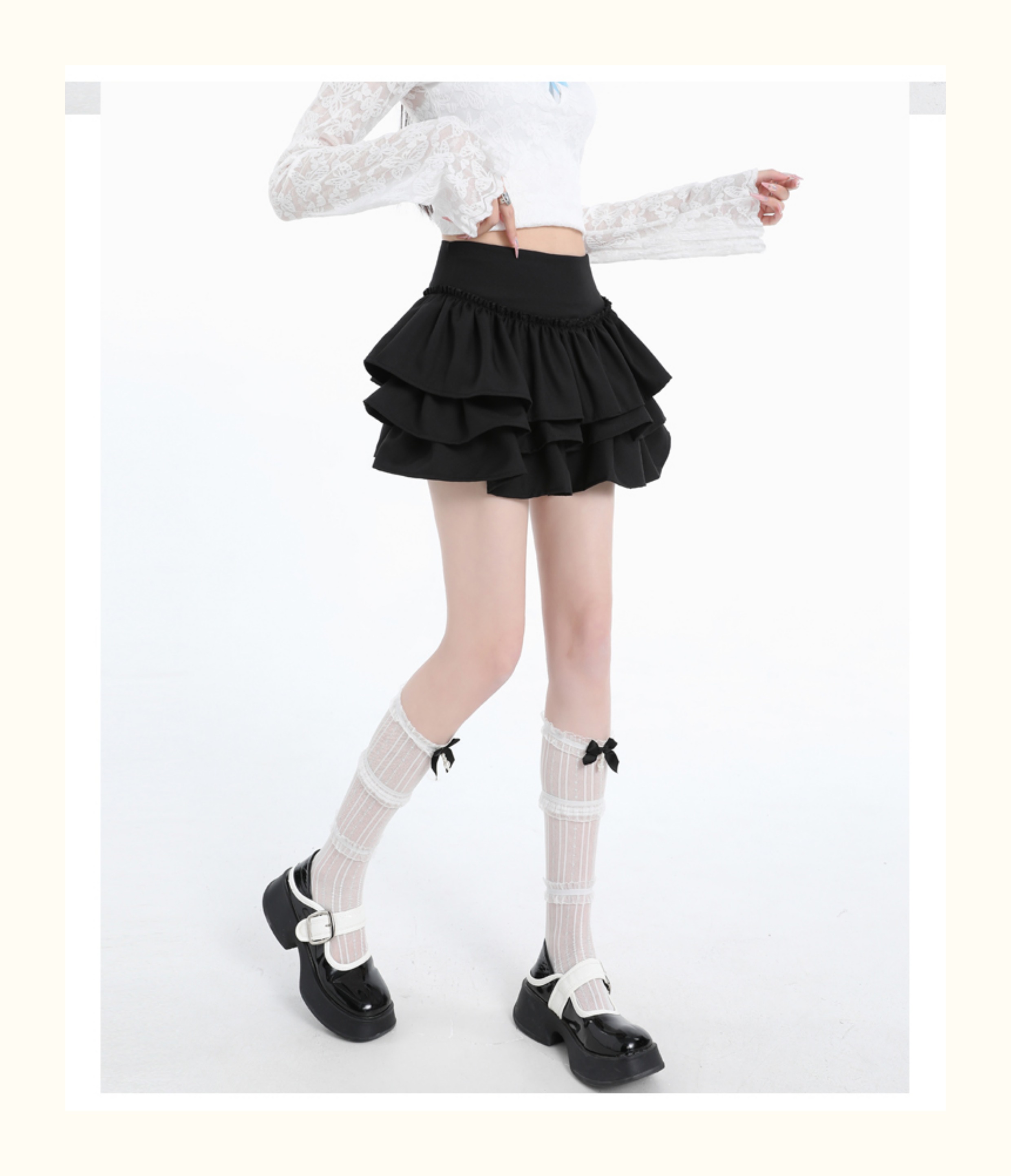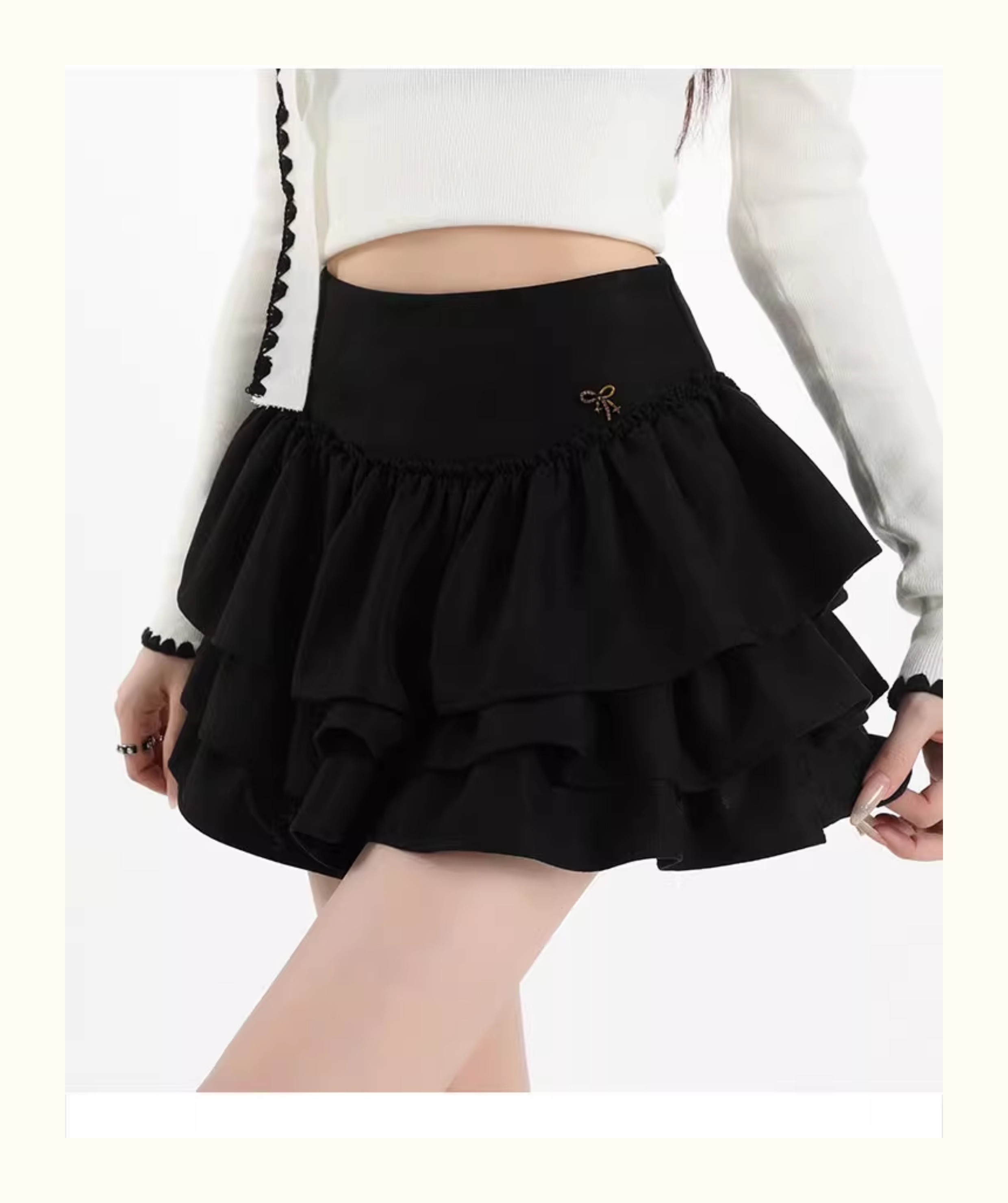 Ballet-Style Black Cake Skirt, Women's Spring and Summer Design, High-Waisted, Slimming, Ruffled A-Line Puffy Short Skirt
