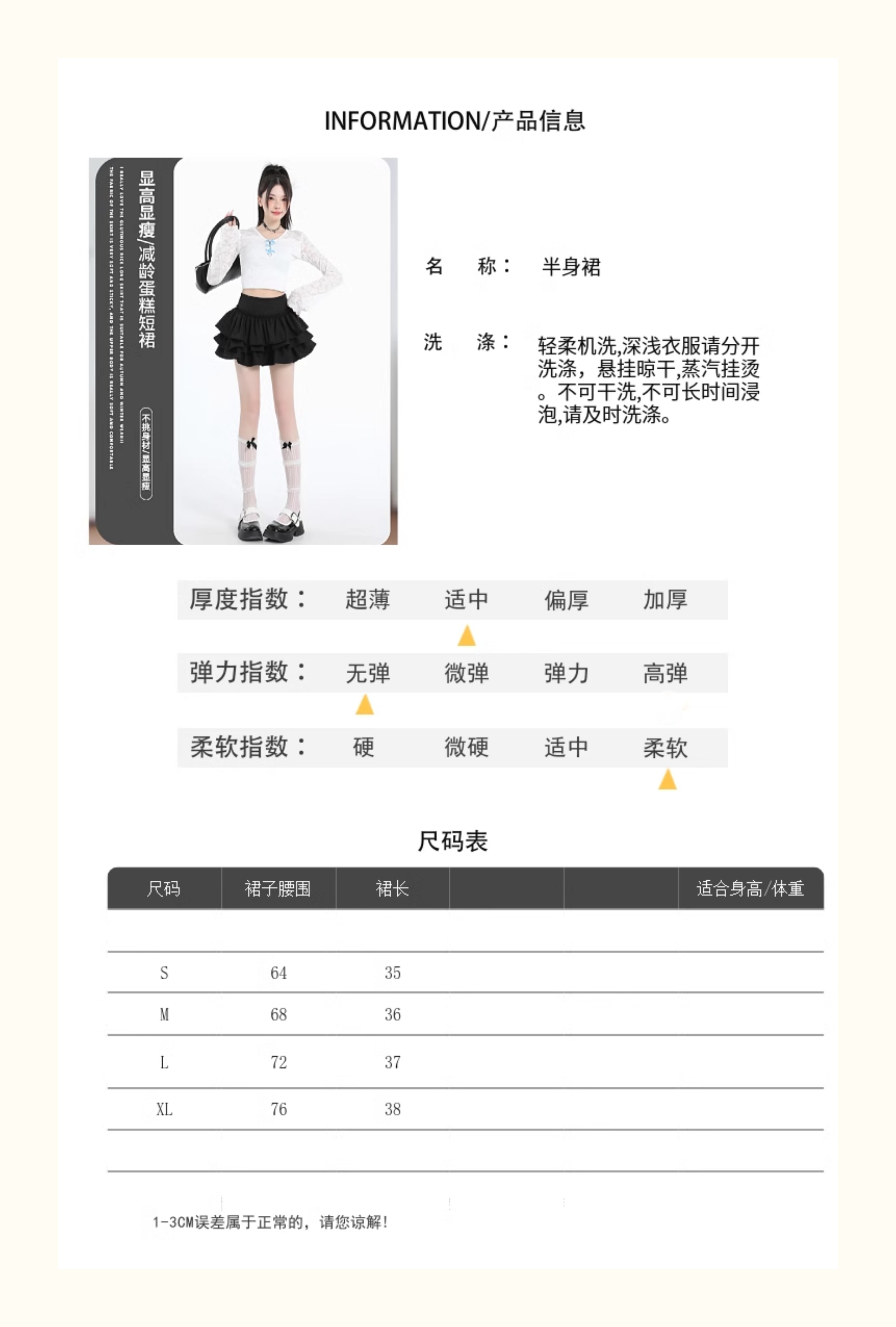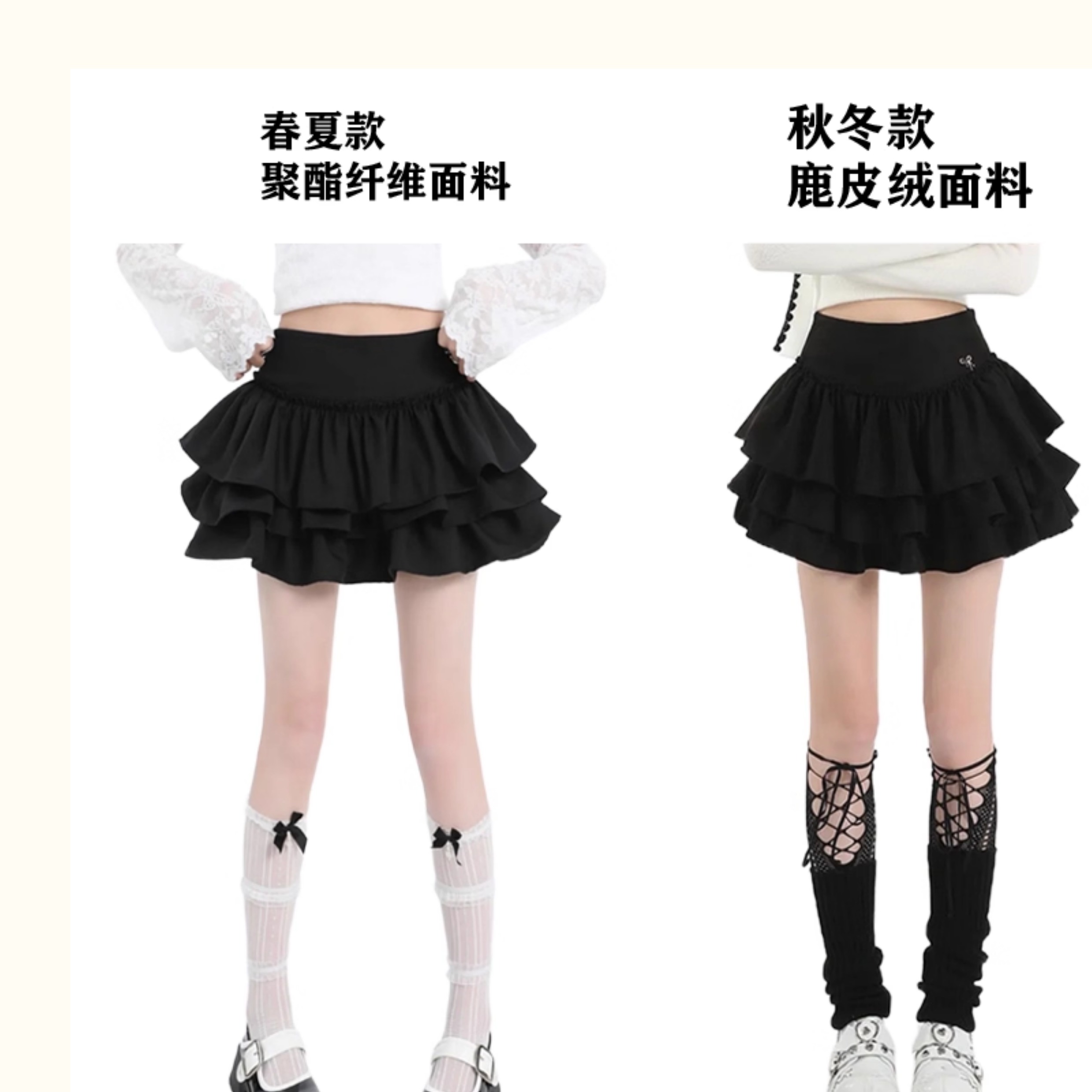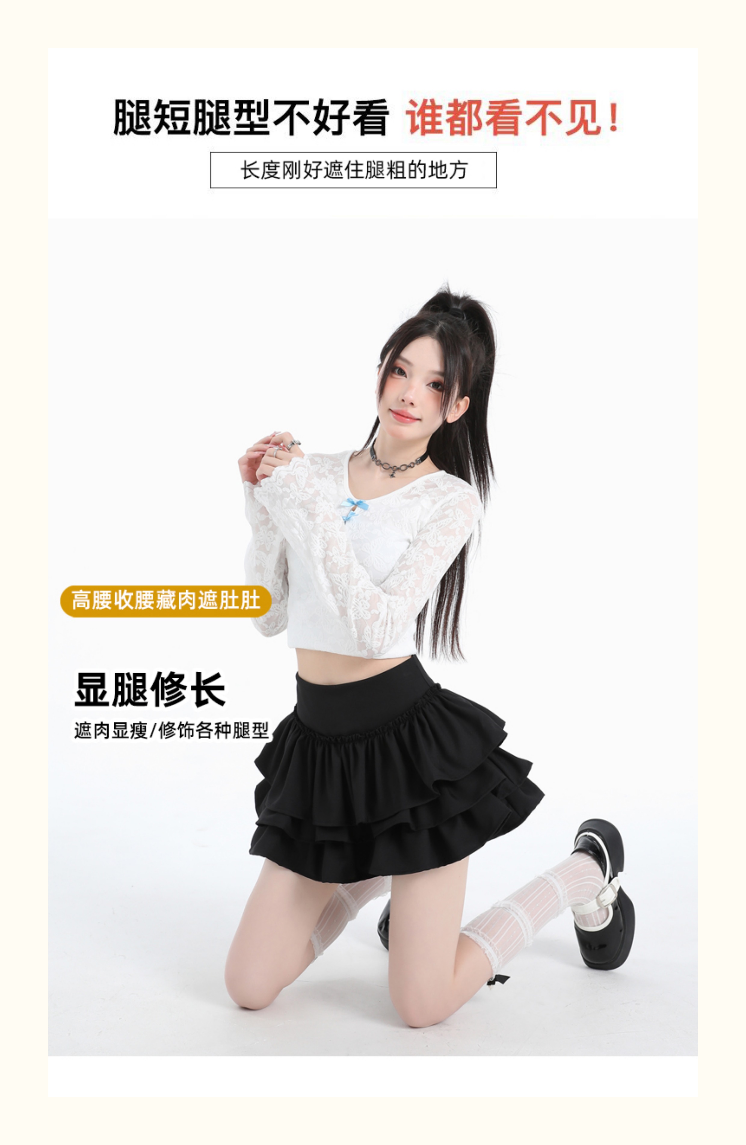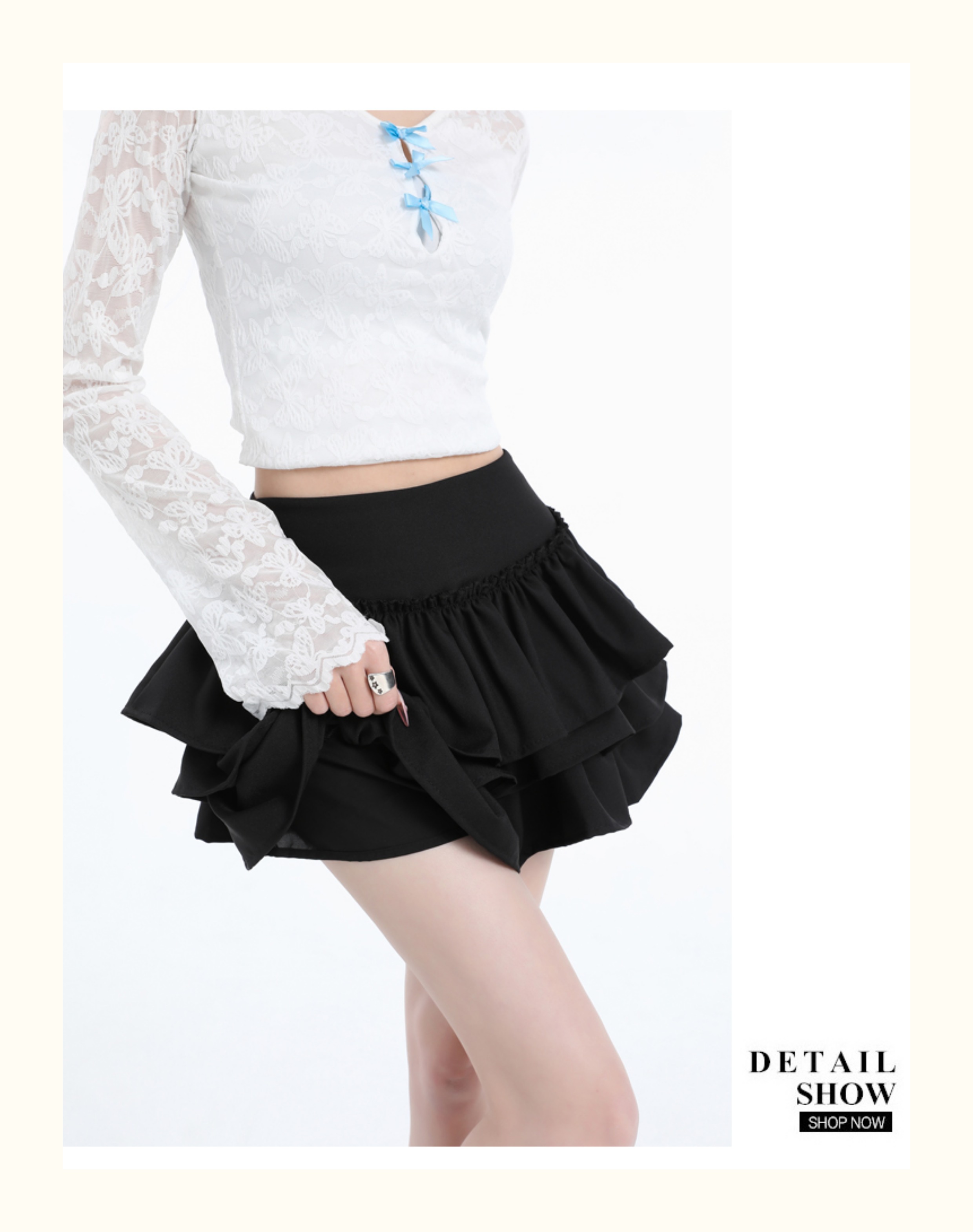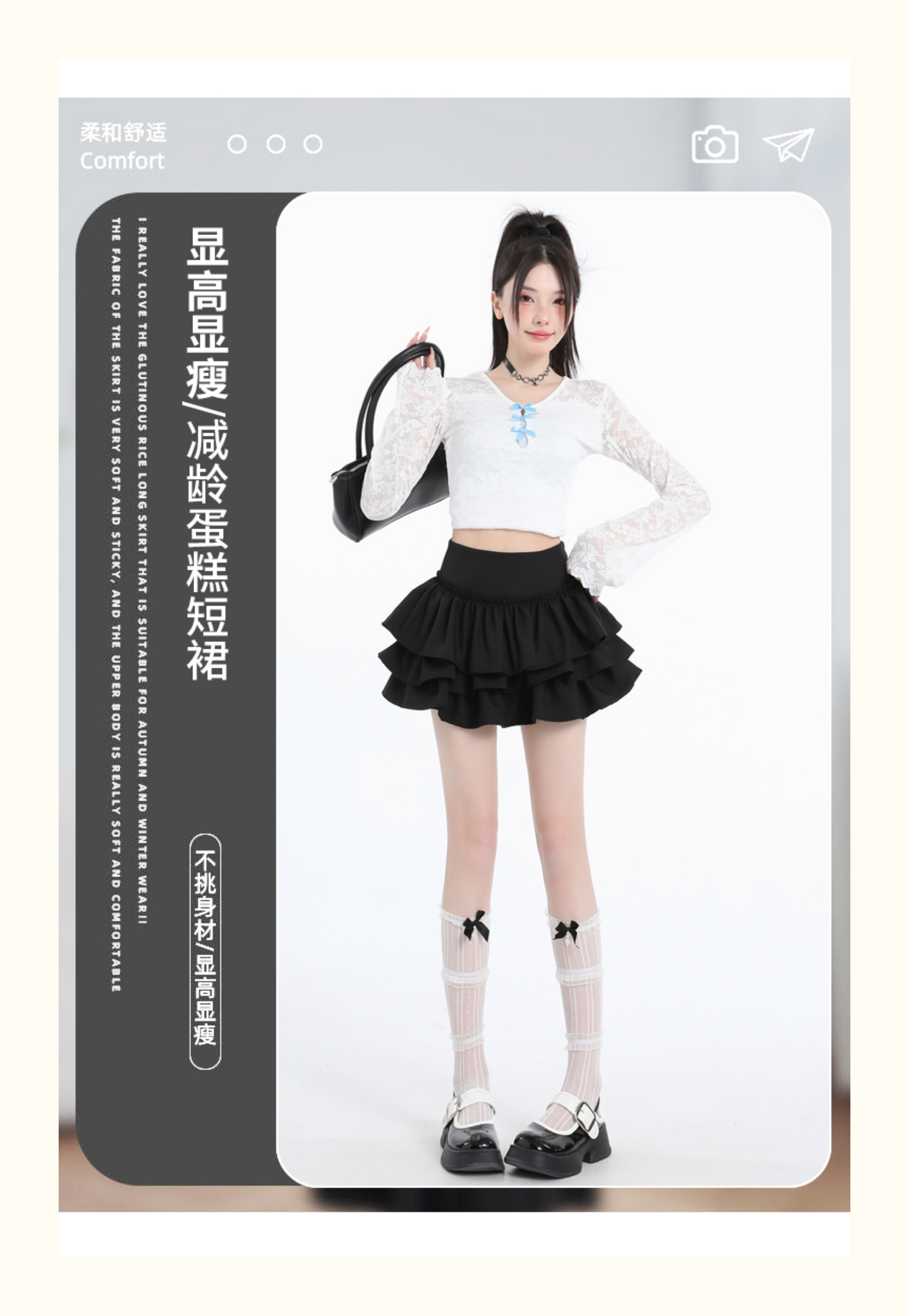 Ballet-Style Black Cake Skirt, Women's Spring and Summer Design, High-Waisted, Slimming, Ruffled A-Line Puffy Short Skirt