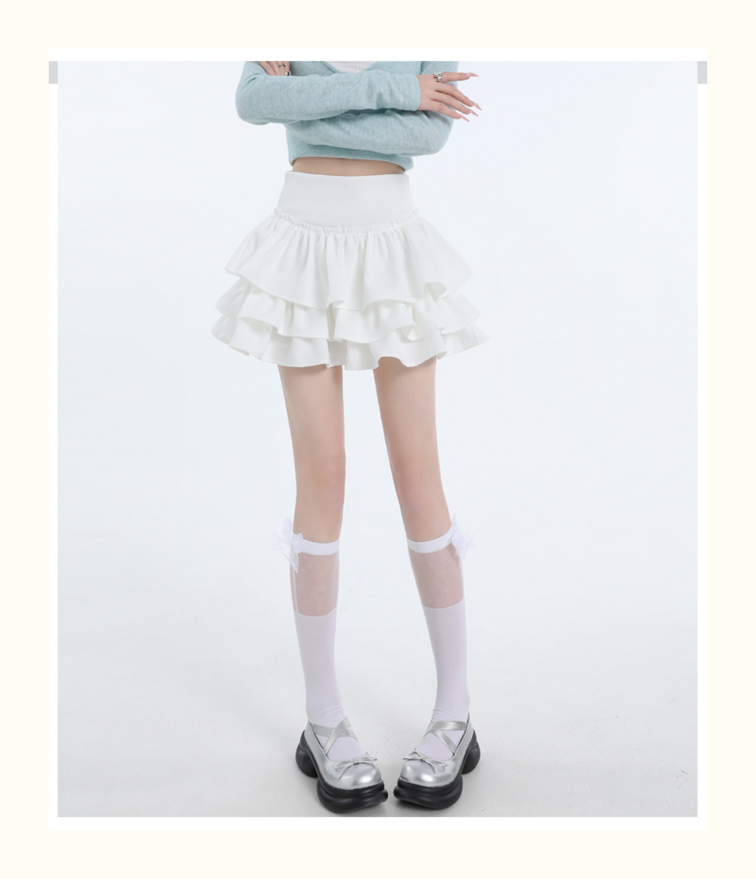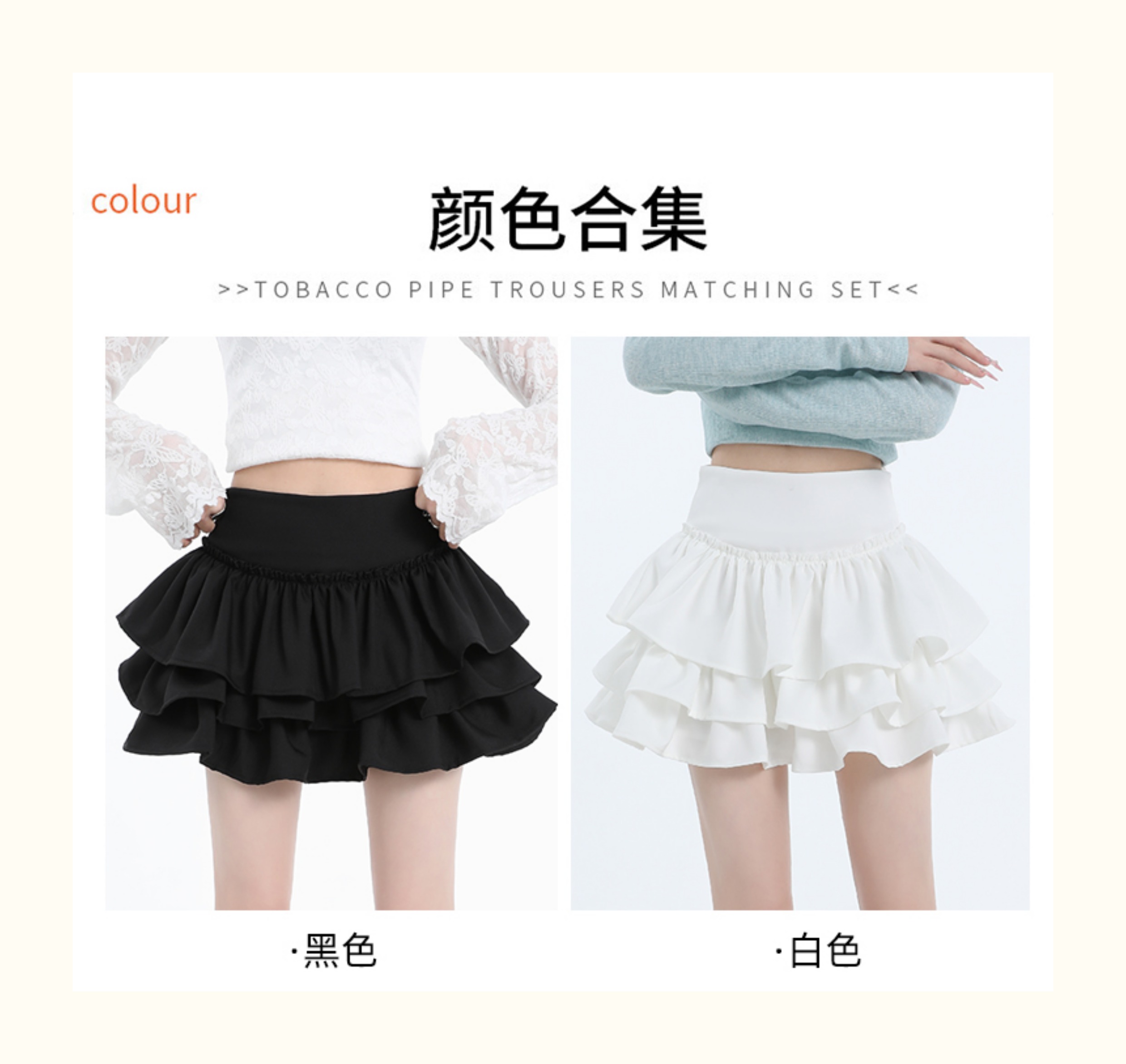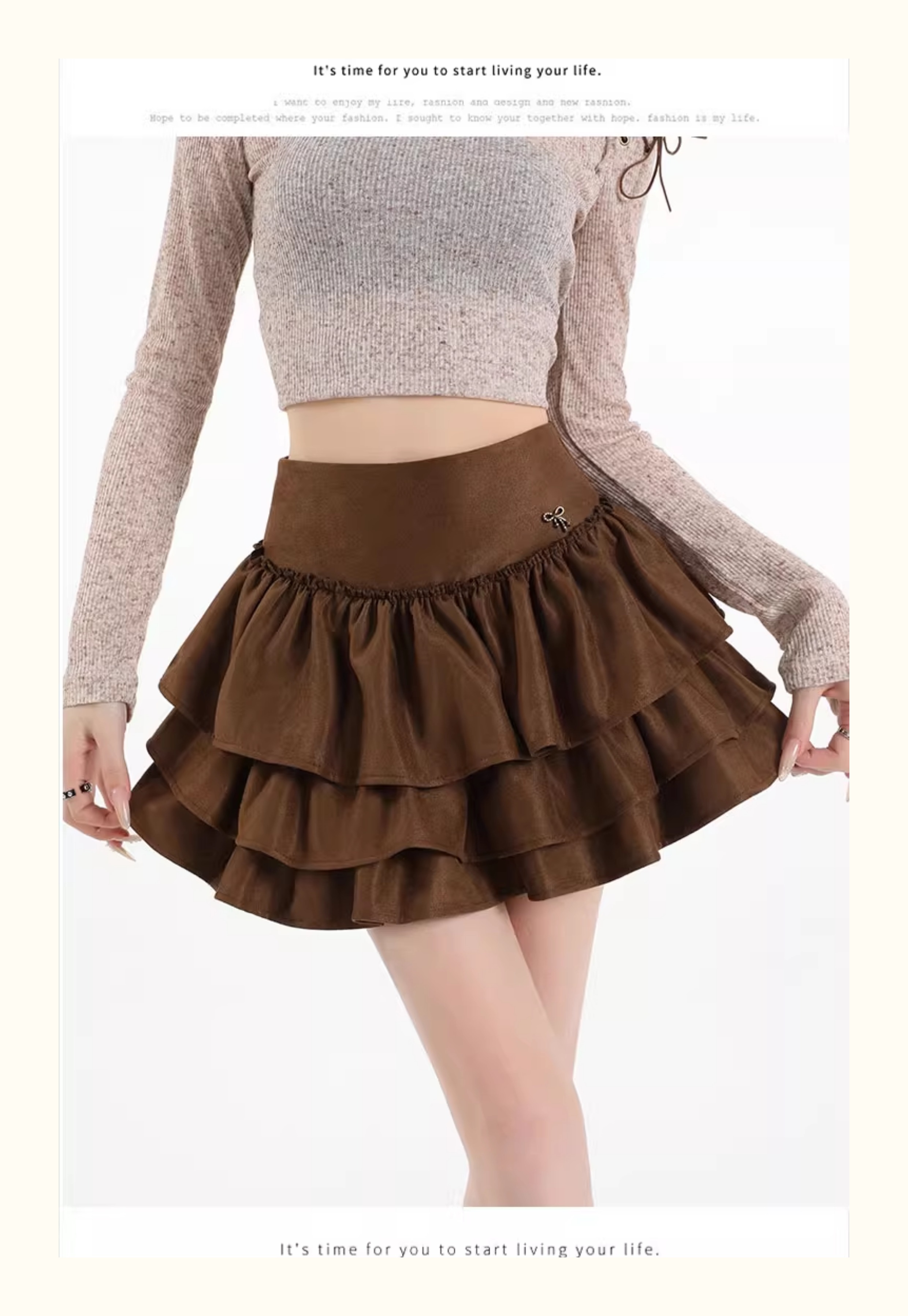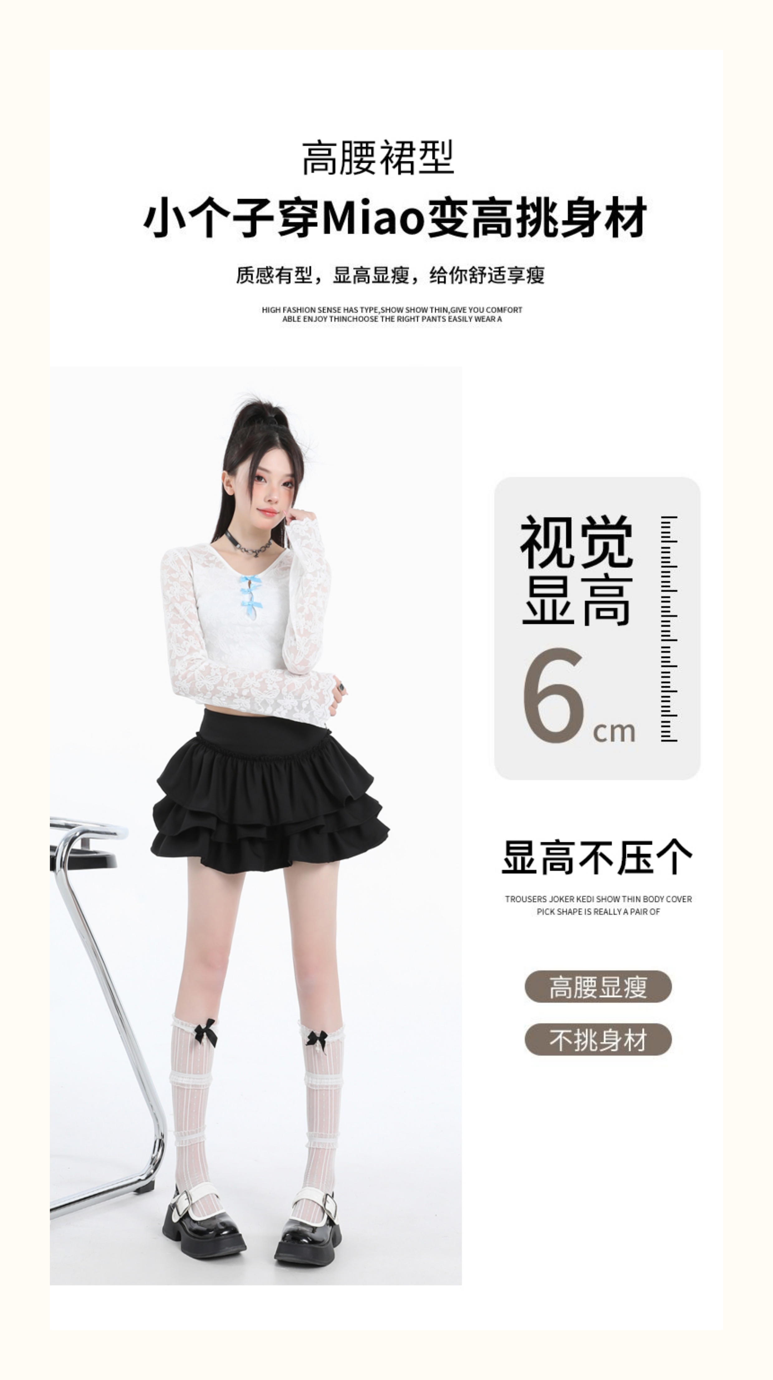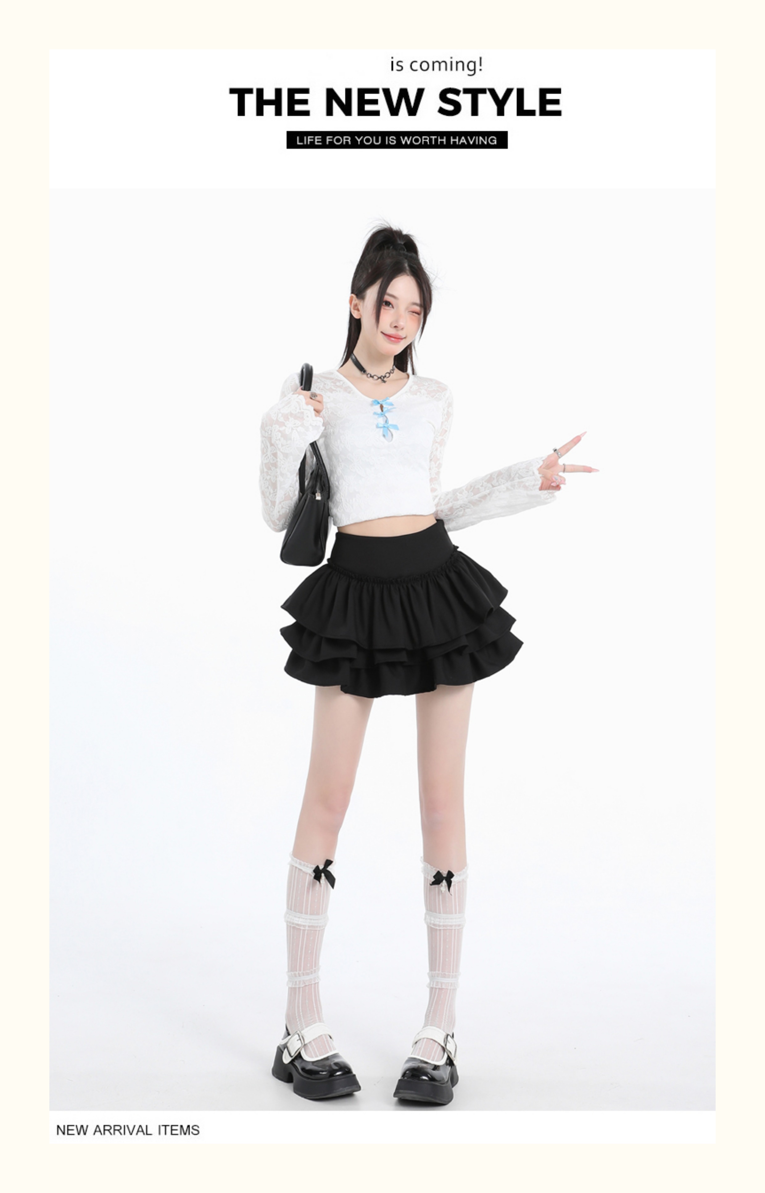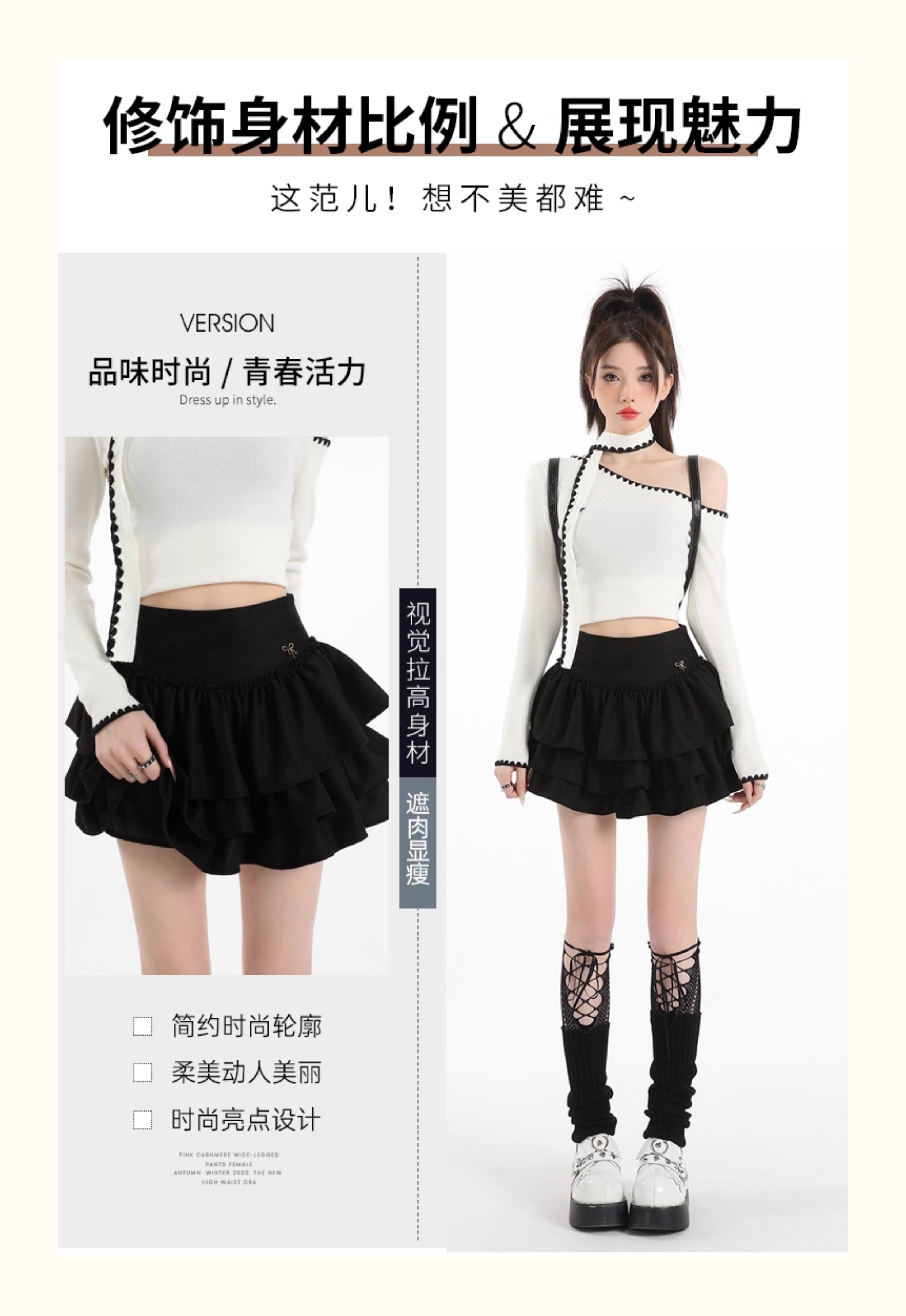 Ballet-Style Black Cake Skirt, Women's Spring and Summer Design, High-Waisted, Slimming, Ruffled A-Line Puffy Short Skirt