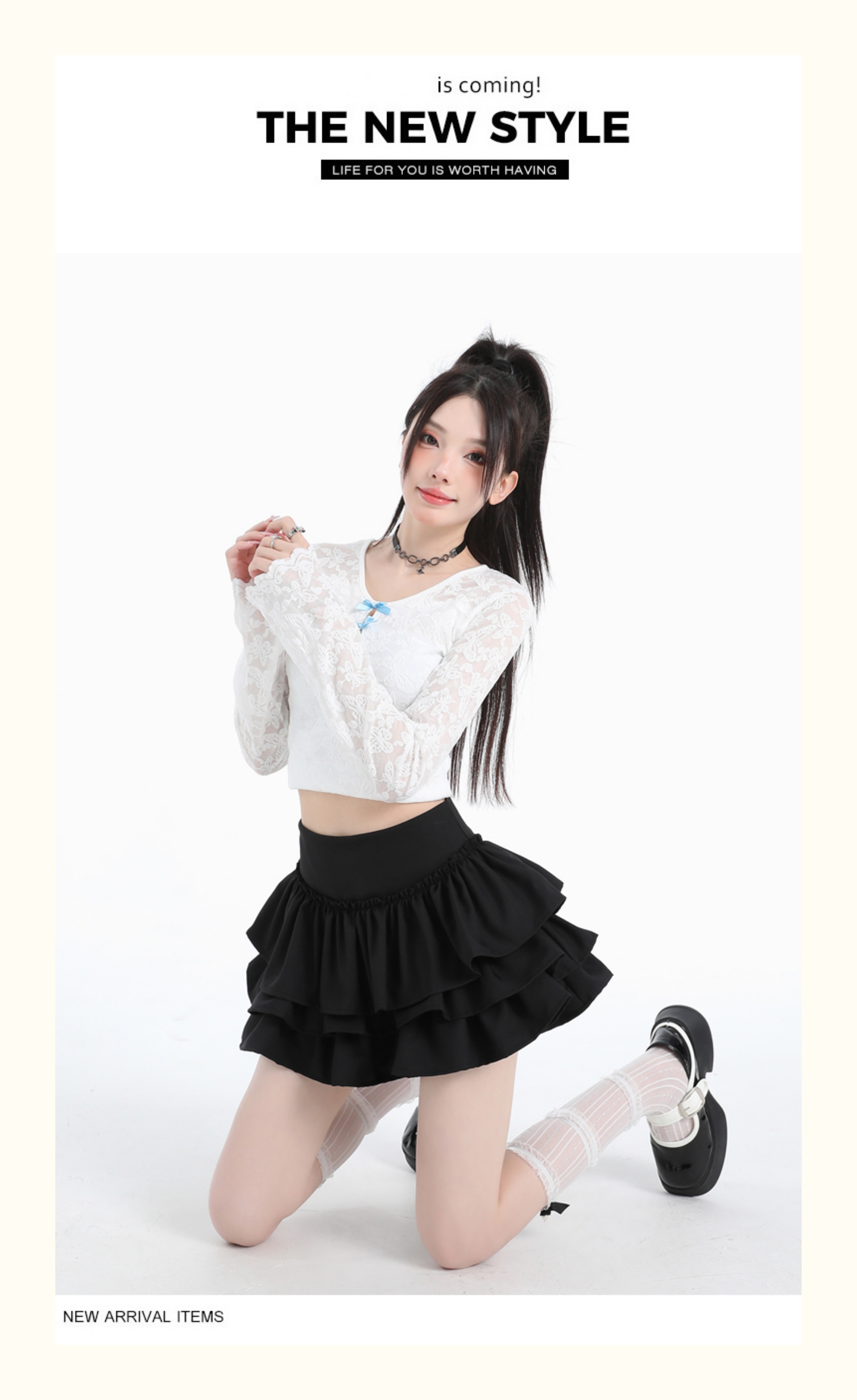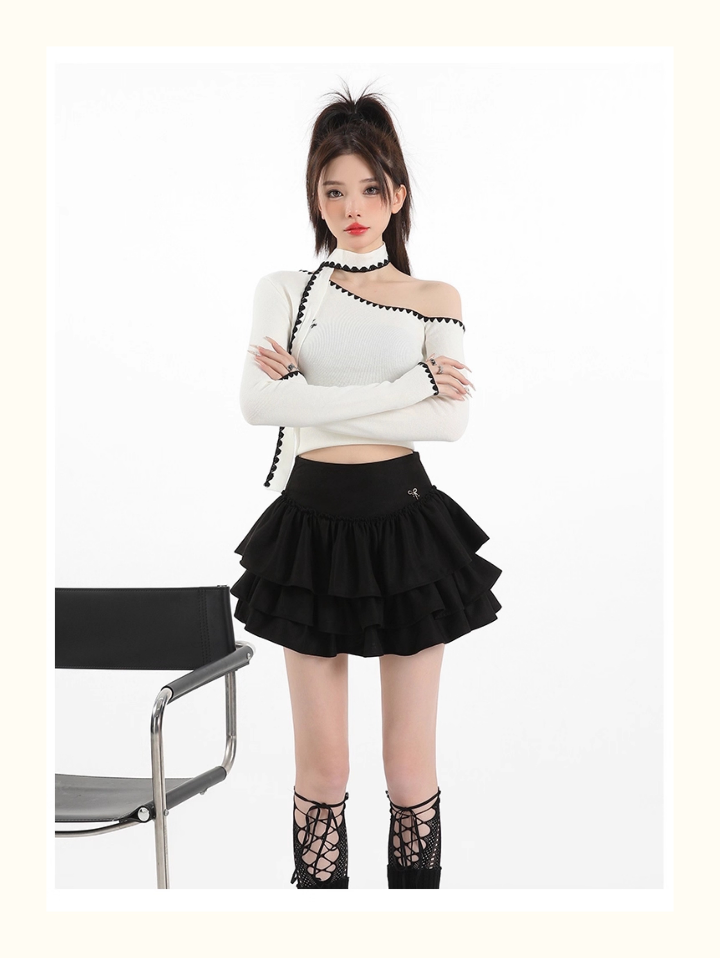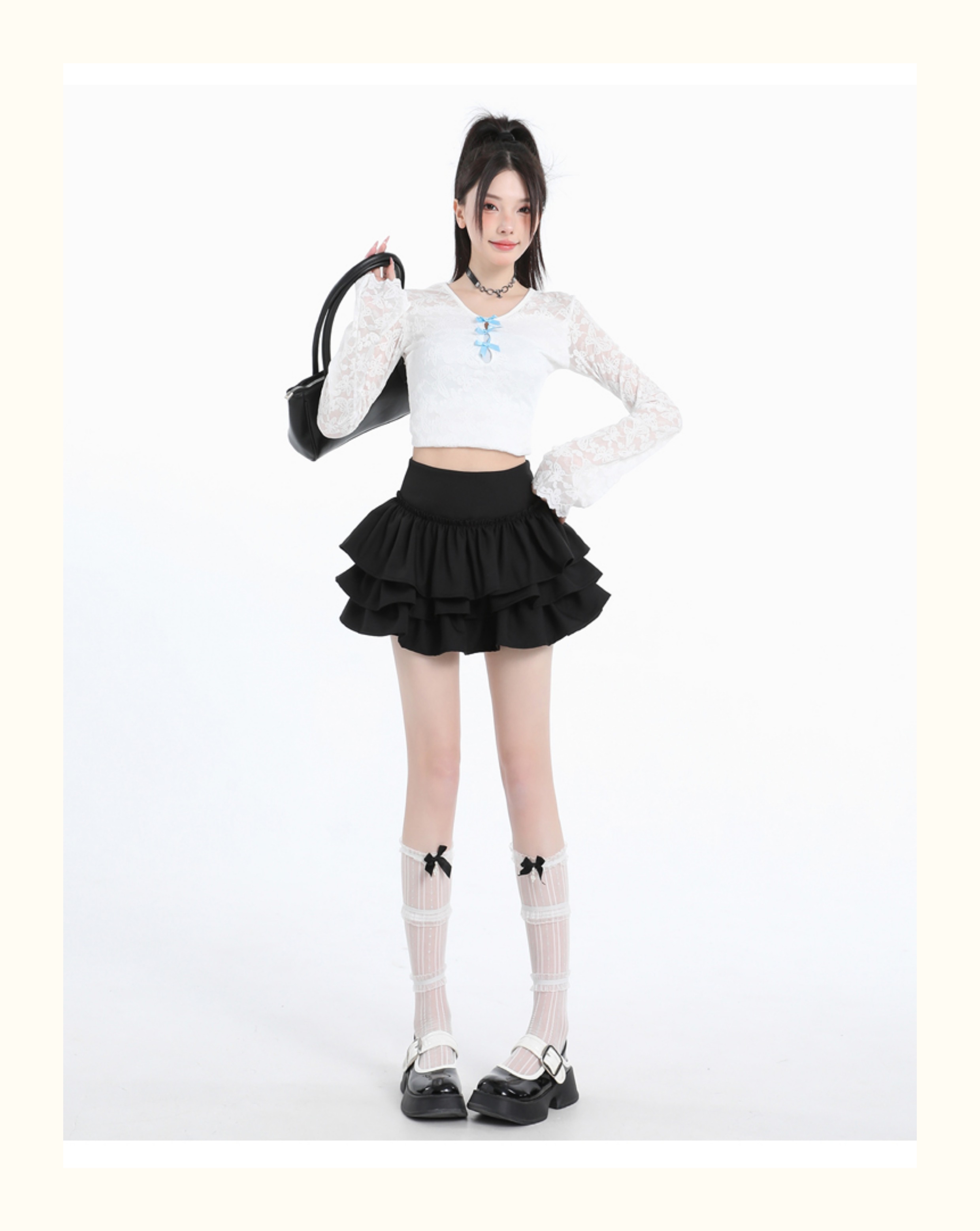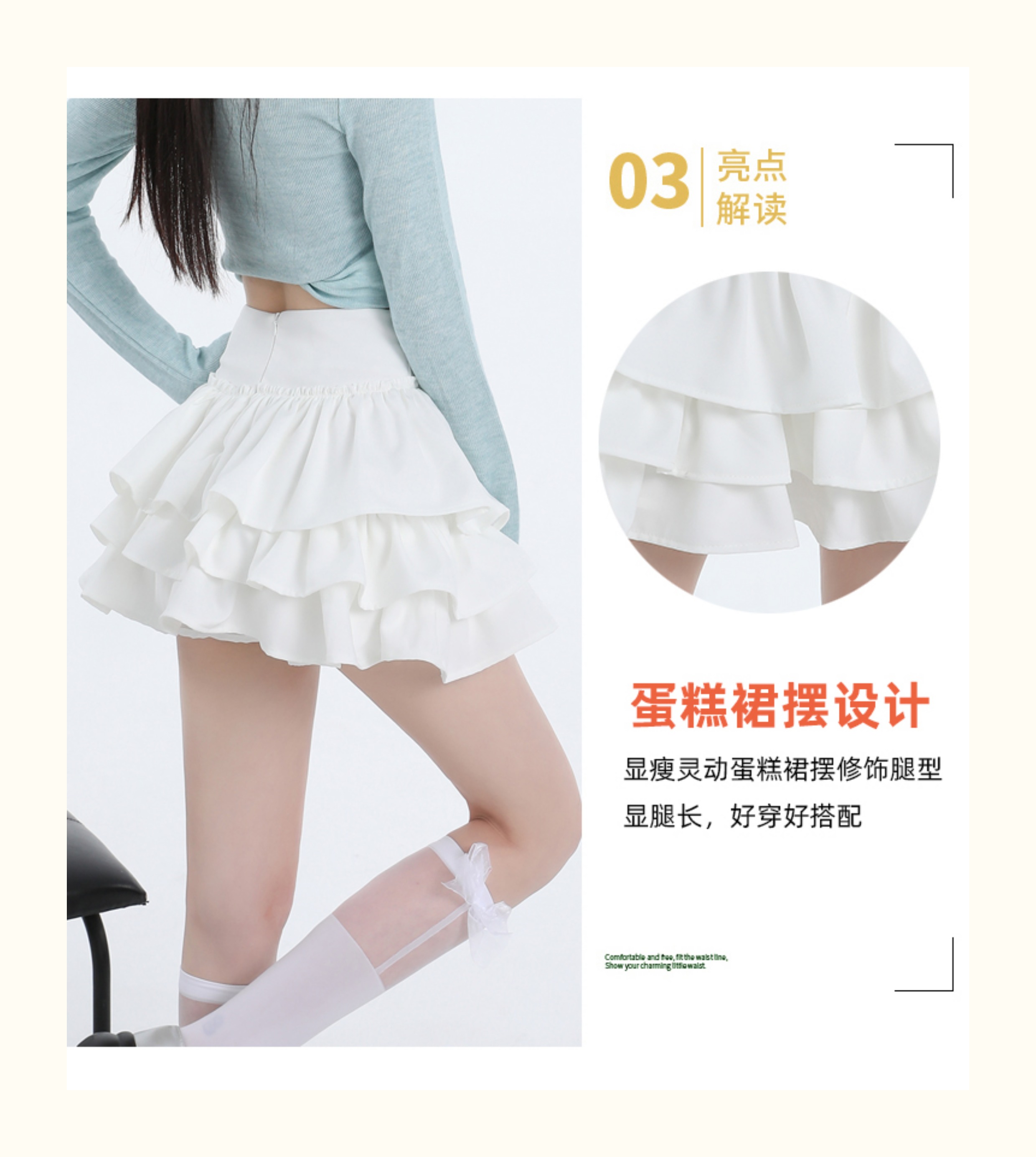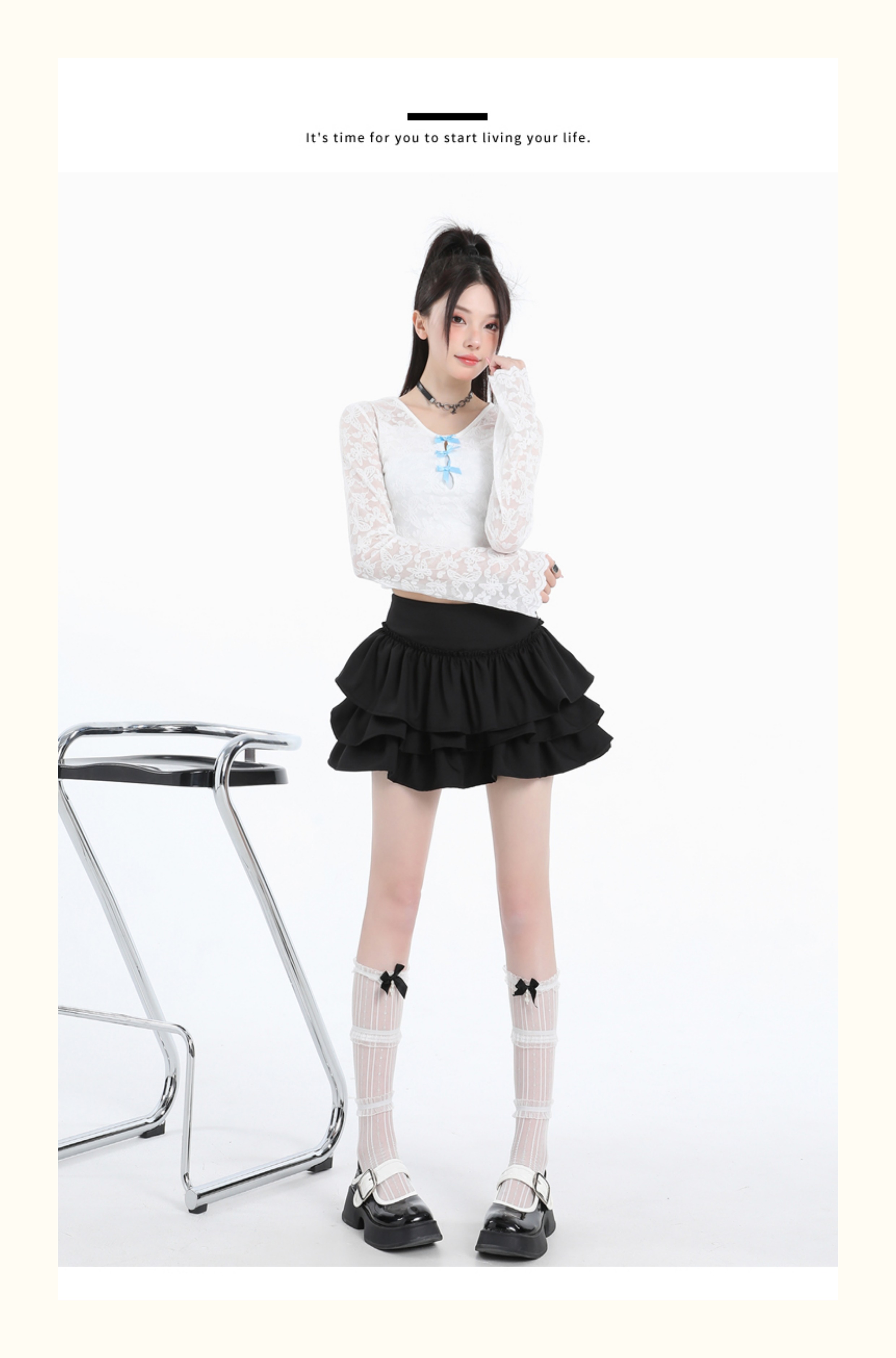 Ballet-Style Black Cake Skirt, Women's Spring and Summer Design, High-Waisted, Slimming, Ruffled A-Line Puffy Short Skirt