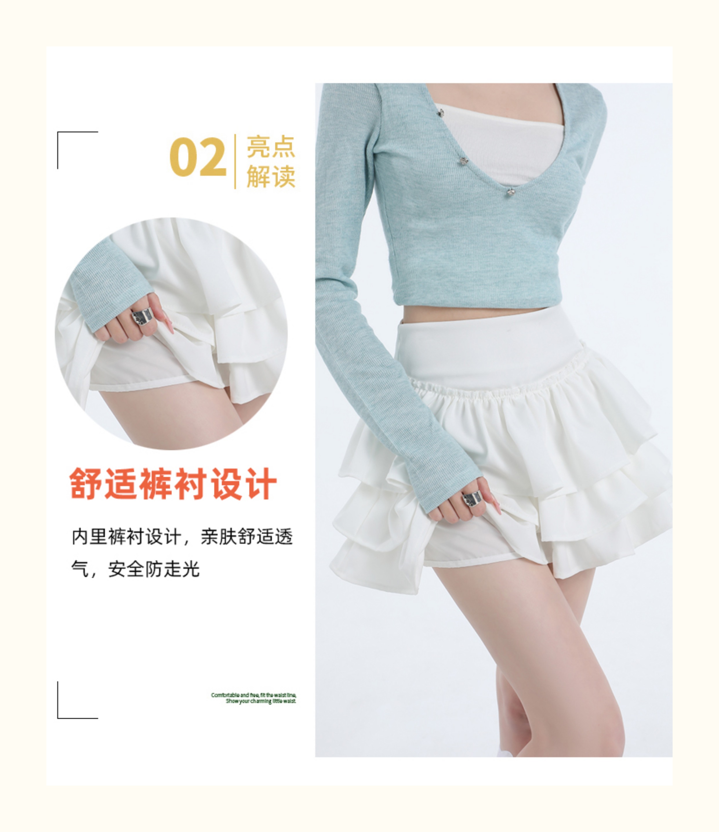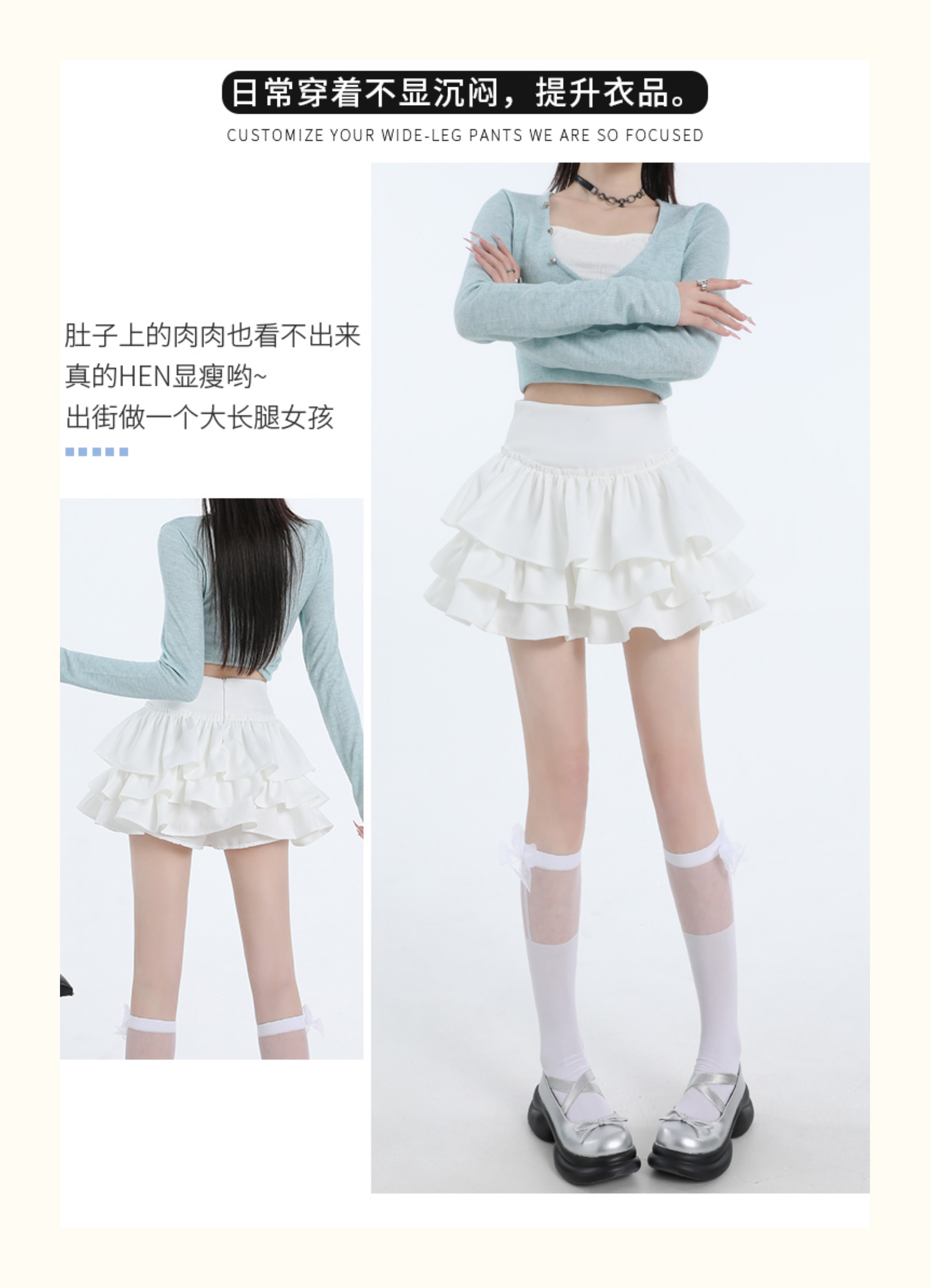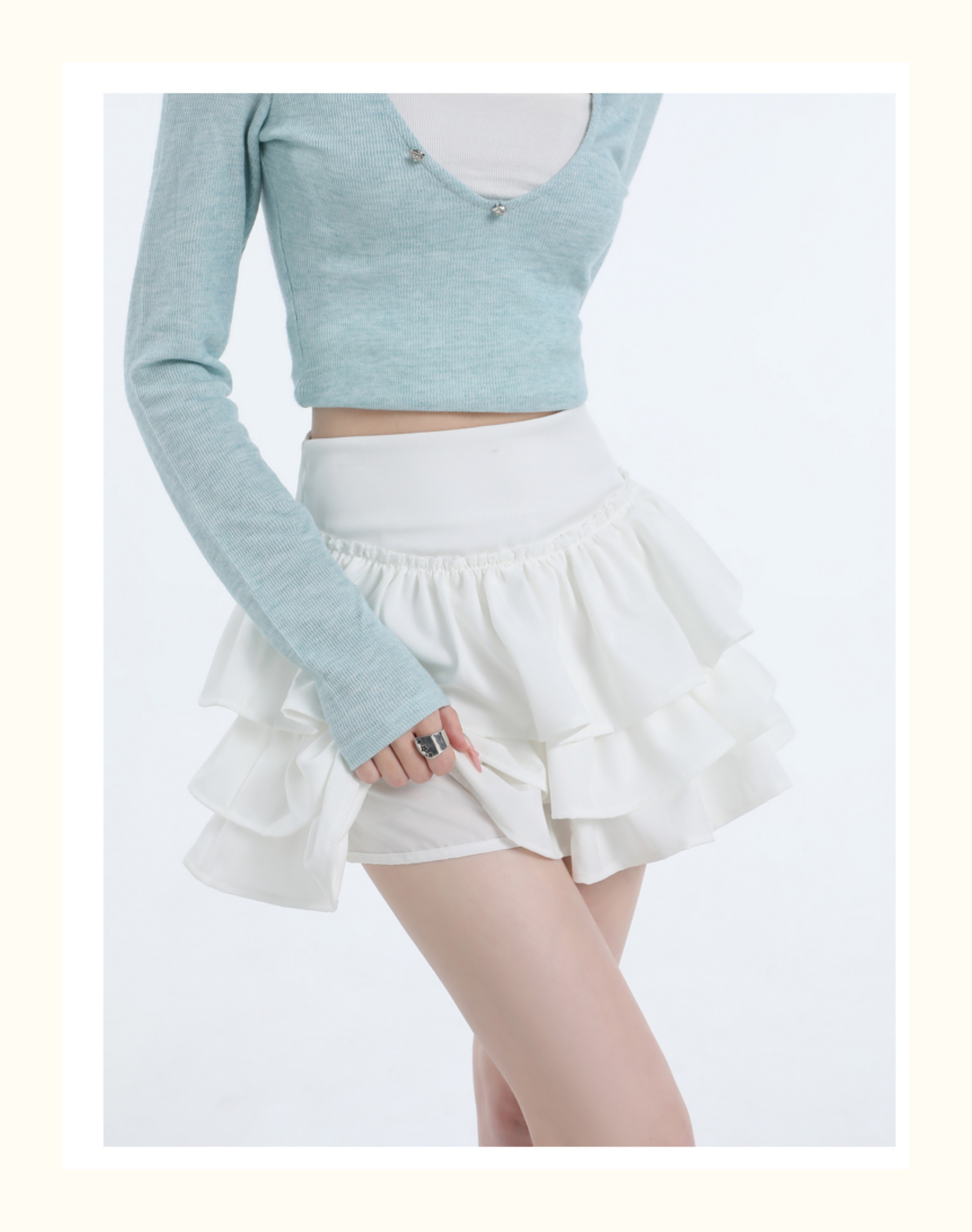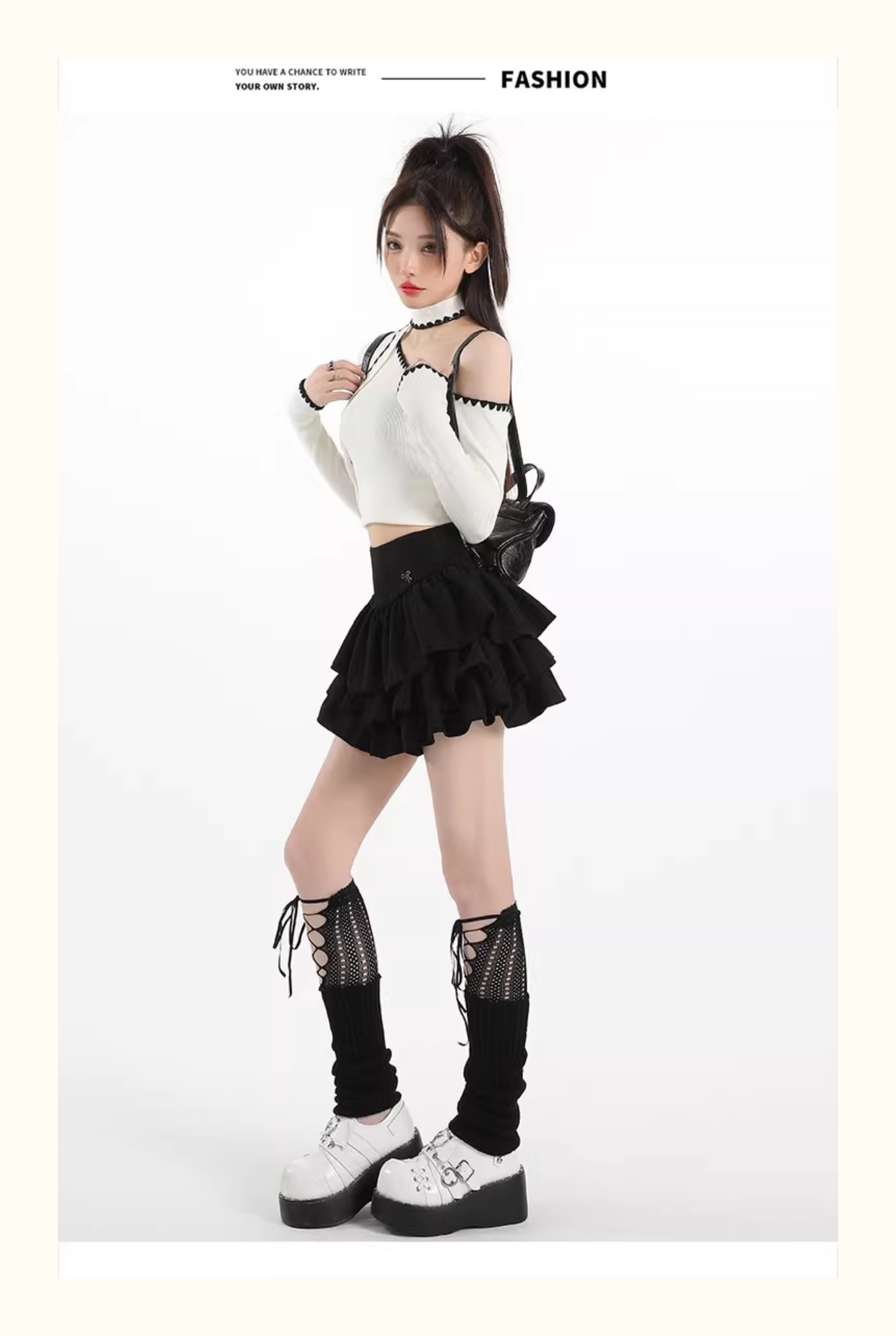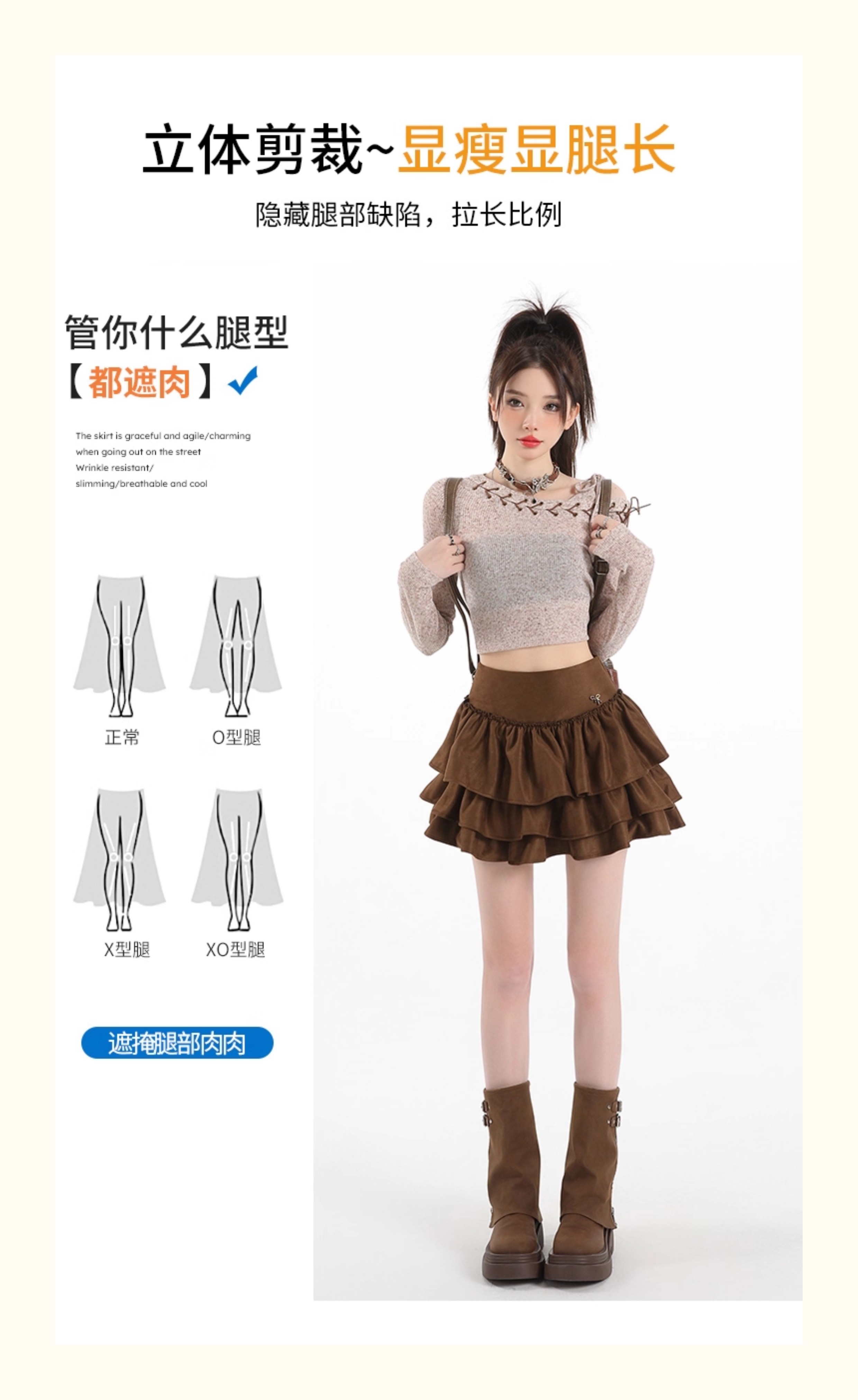 Ballet-Style Black Cake Skirt, Women's Spring and Summer Design, High-Waisted, Slimming, Ruffled A-Line Puffy Short Skirt