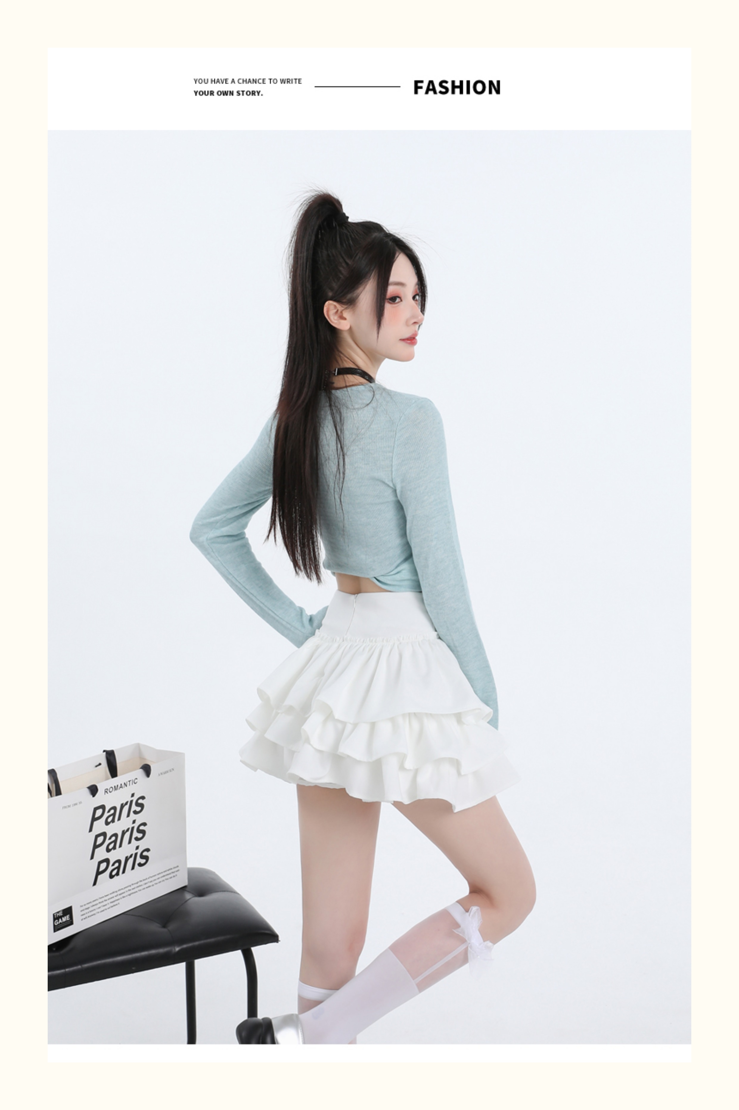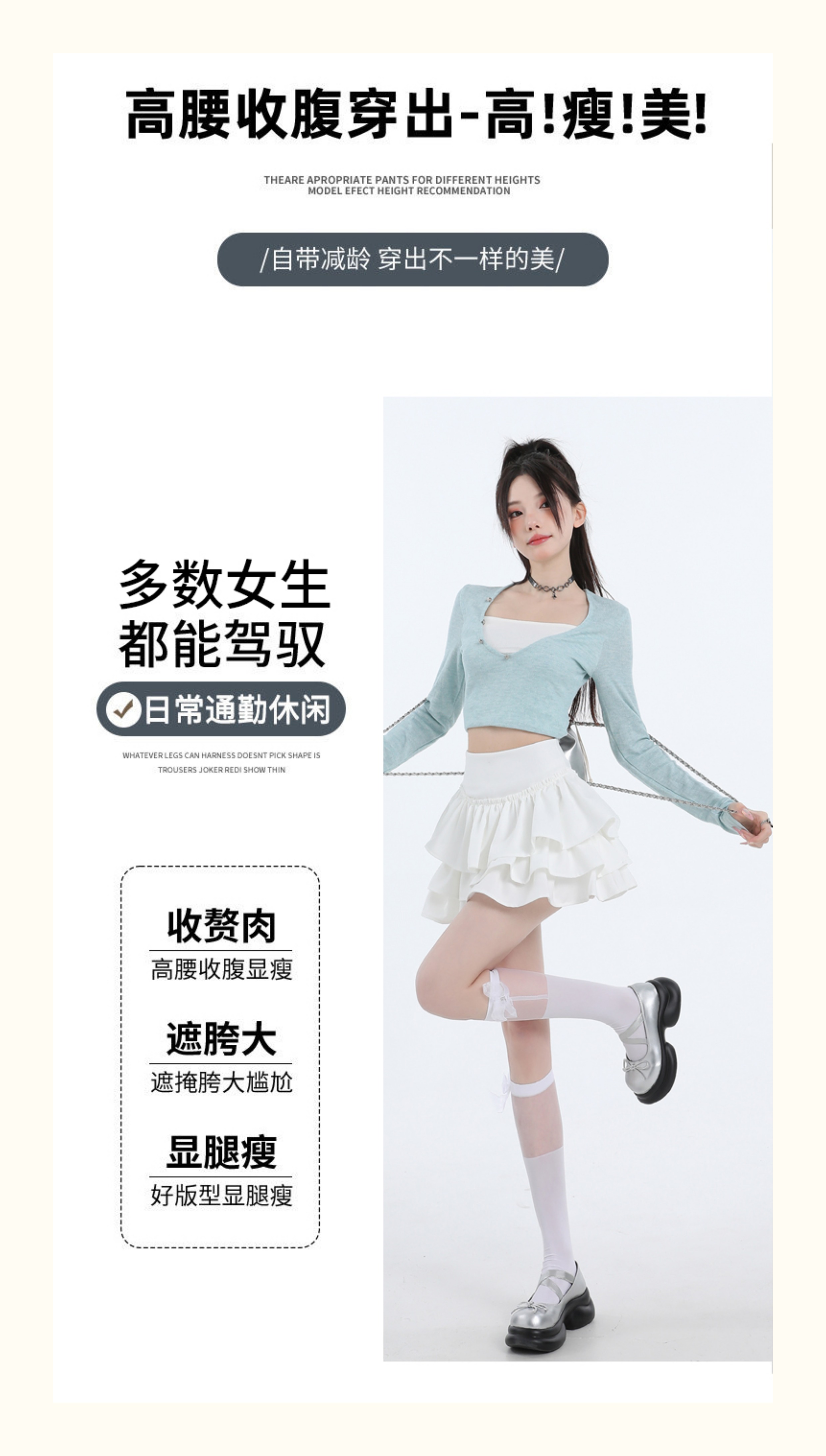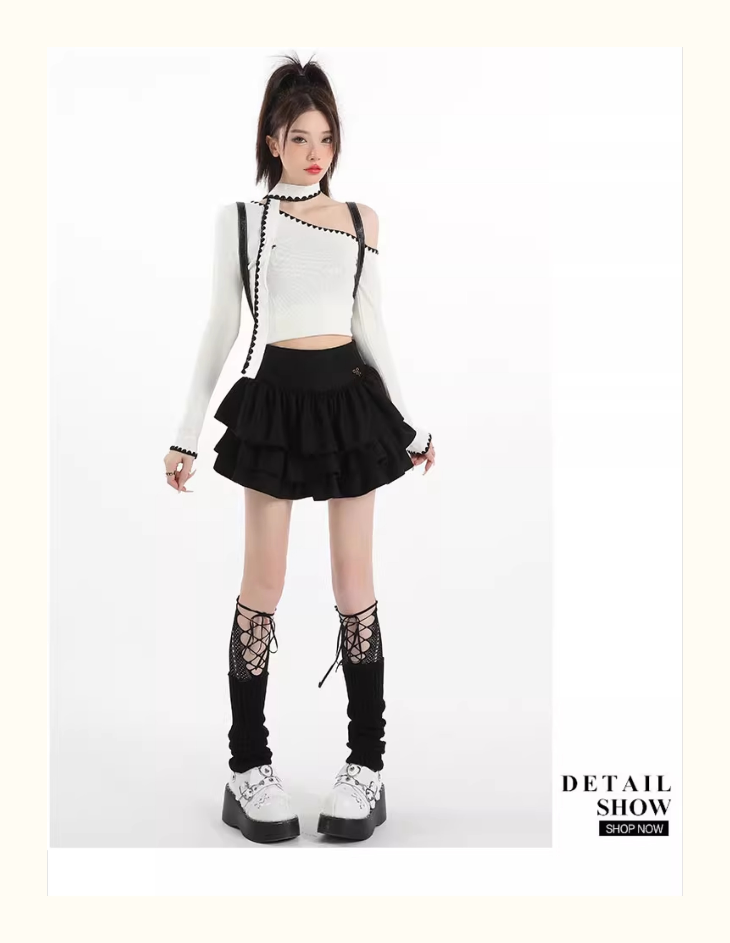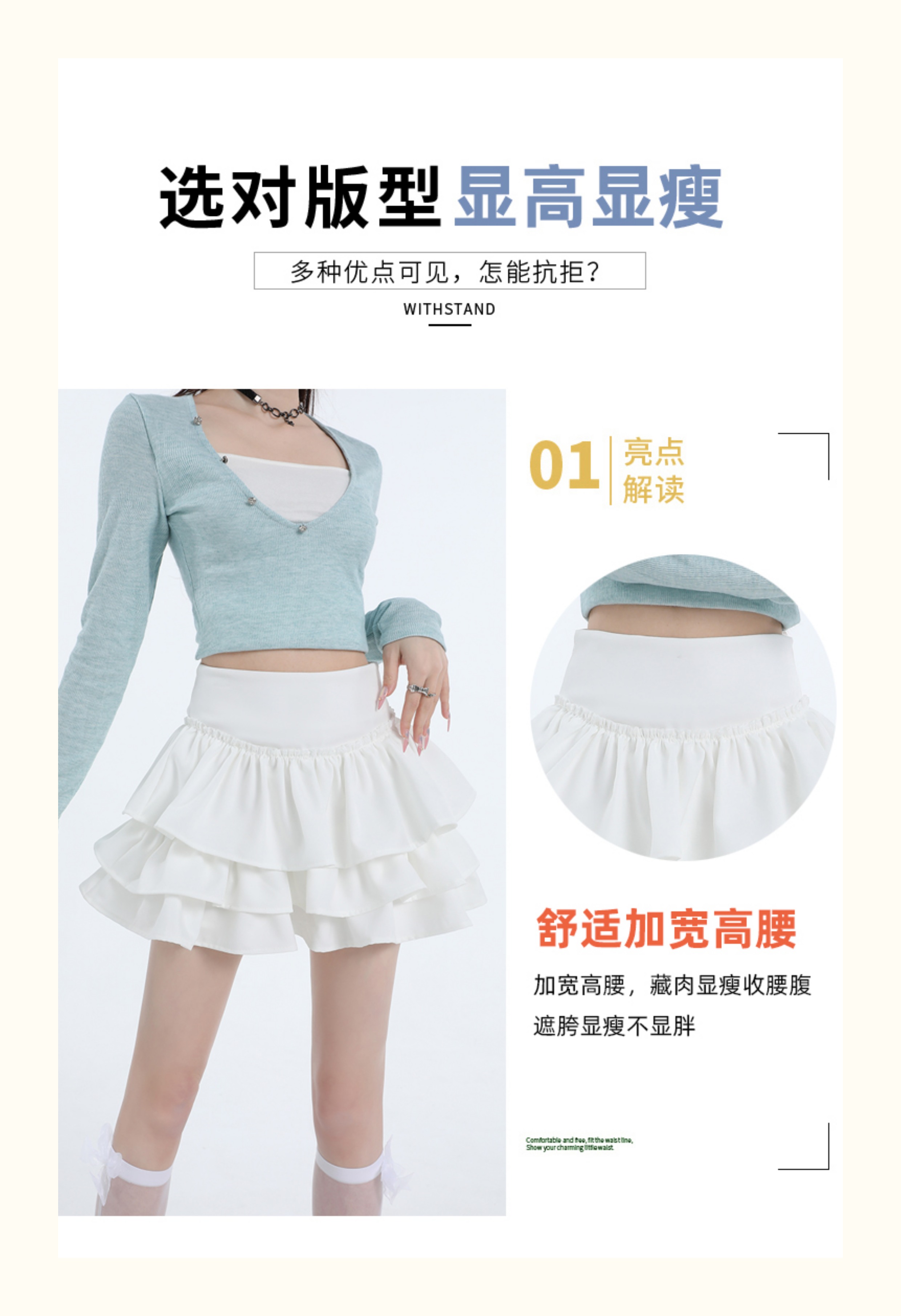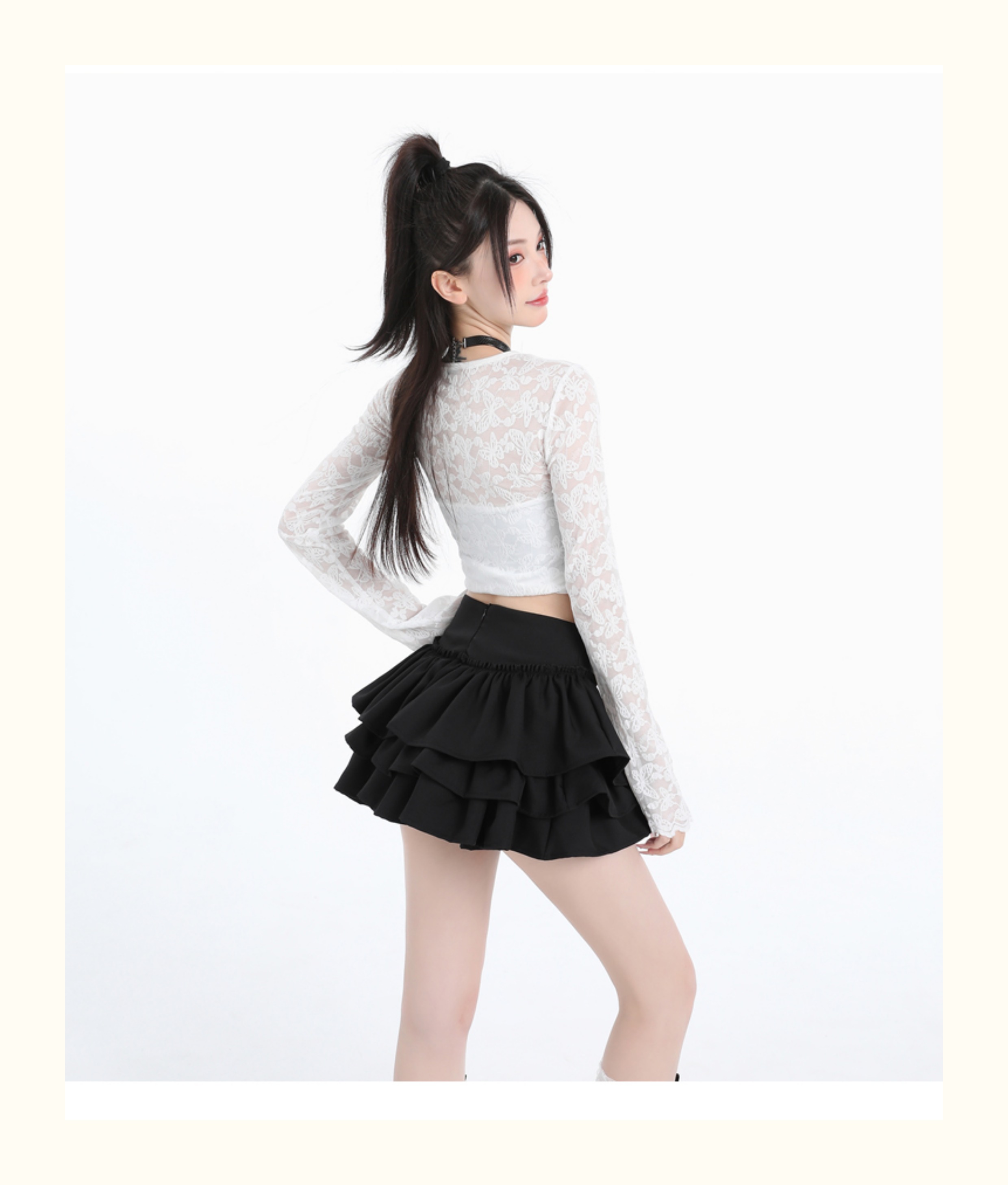 Ballet-Style Black Cake Skirt, Women's Spring and Summer Design, High-Waisted, Slimming, Ruffled A-Line Puffy Short Skirt